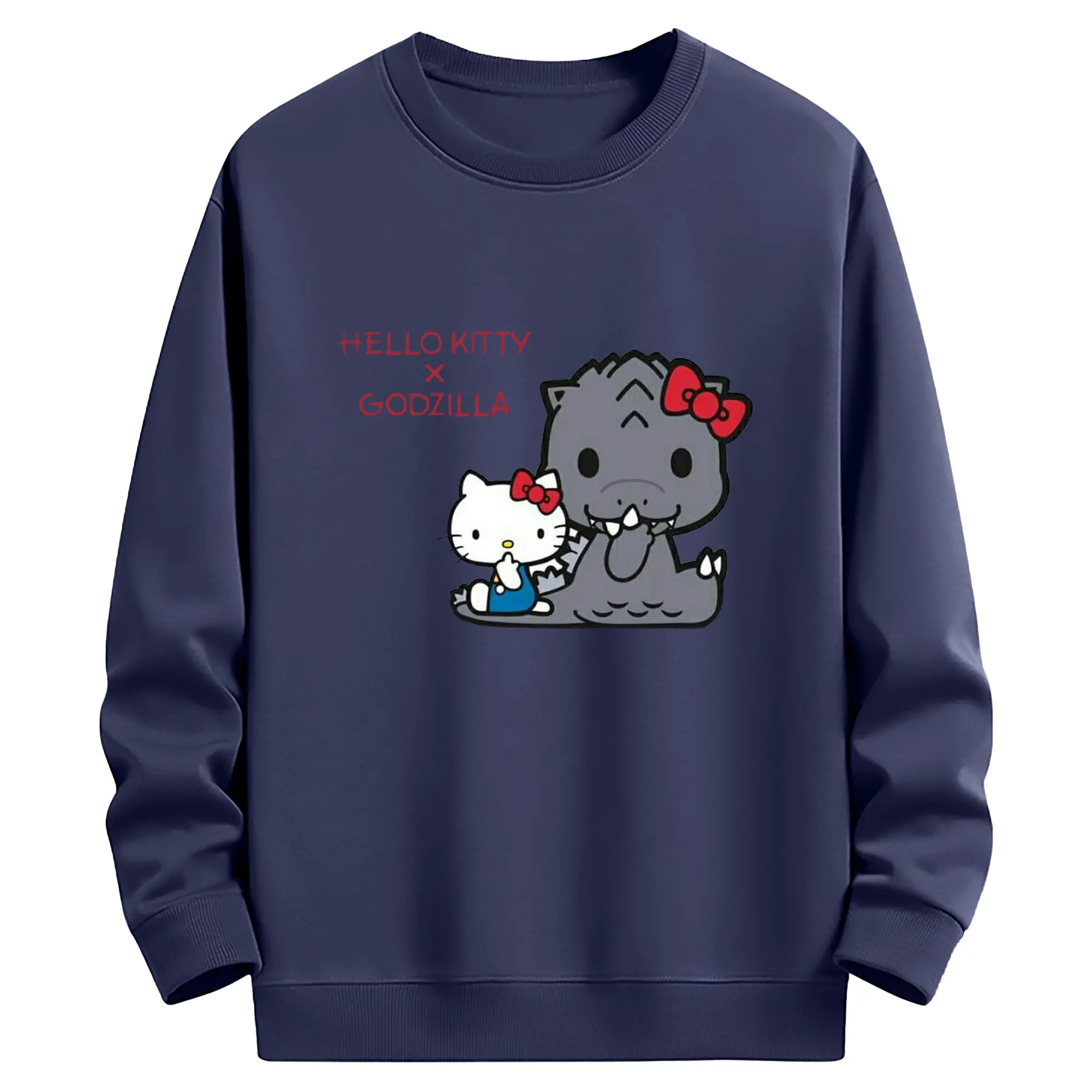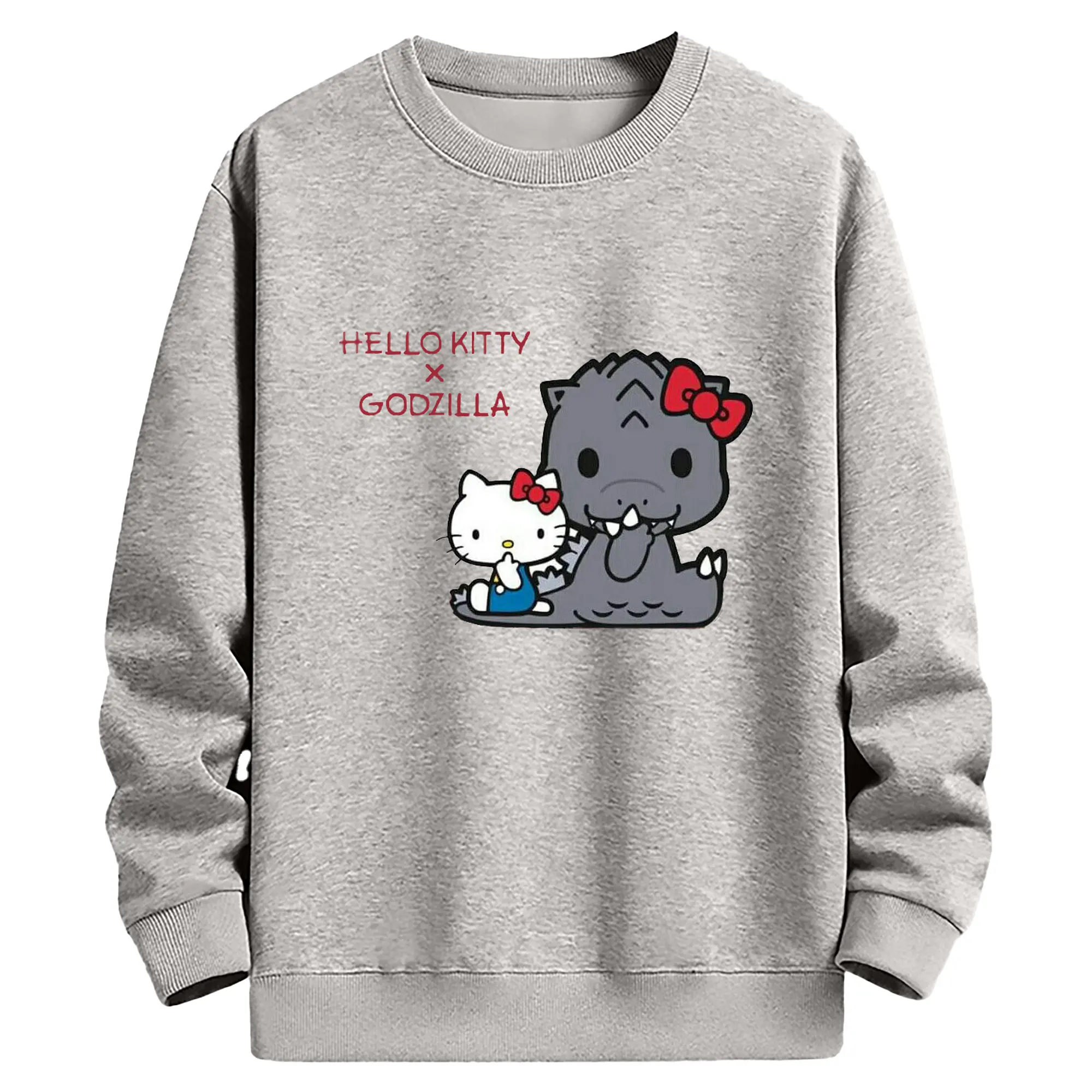 ゴジラ コラボ ハローキティ×ゴジラ特別限定 - 高品質 クルーネック スウェット ・ コットン59% ポリエステル41% ・ ユニセックス 長袖 トレーナー ・ カジュアル デイリー スポーツ 散歩用
