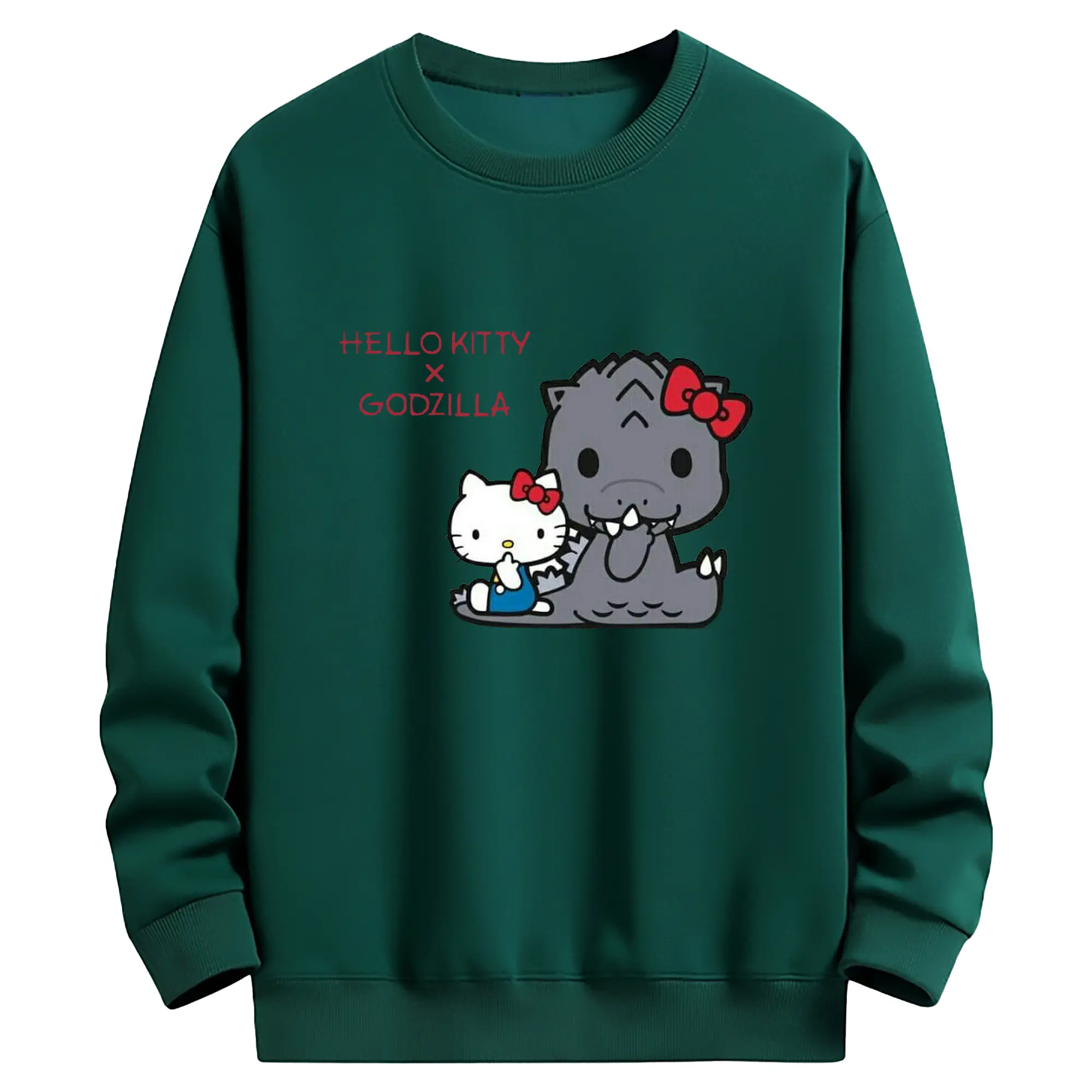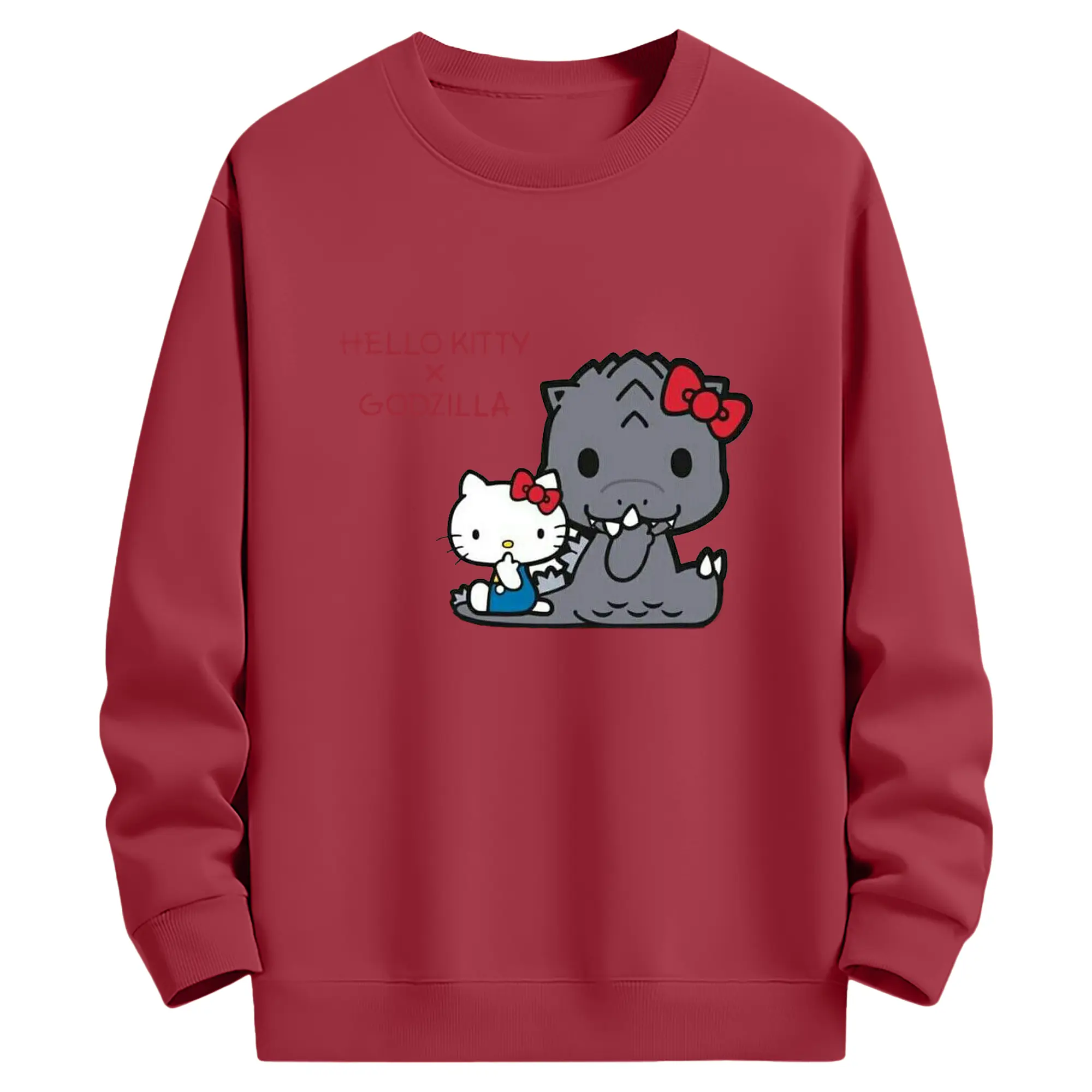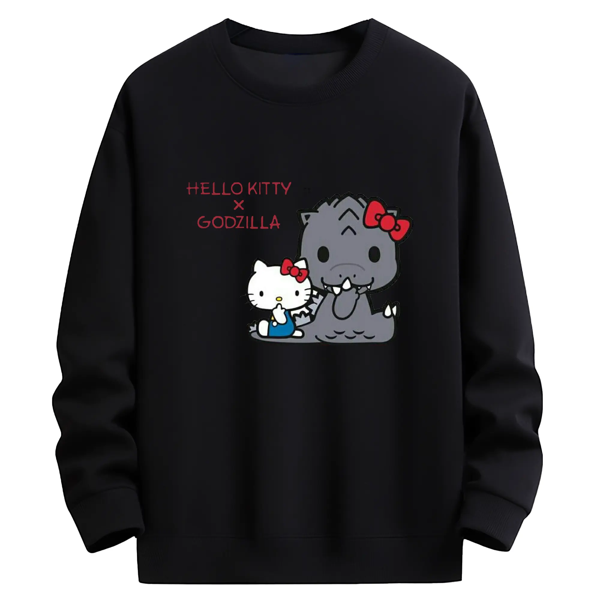 ゴジラ コラボ ハローキティ×ゴジラ特別限定 - 高品質 クルーネック スウェット ・ コットン59% ポリエステル41% ・ ユニセックス 長袖 トレーナー ・ カジュアル デイリー スポーツ 散歩用