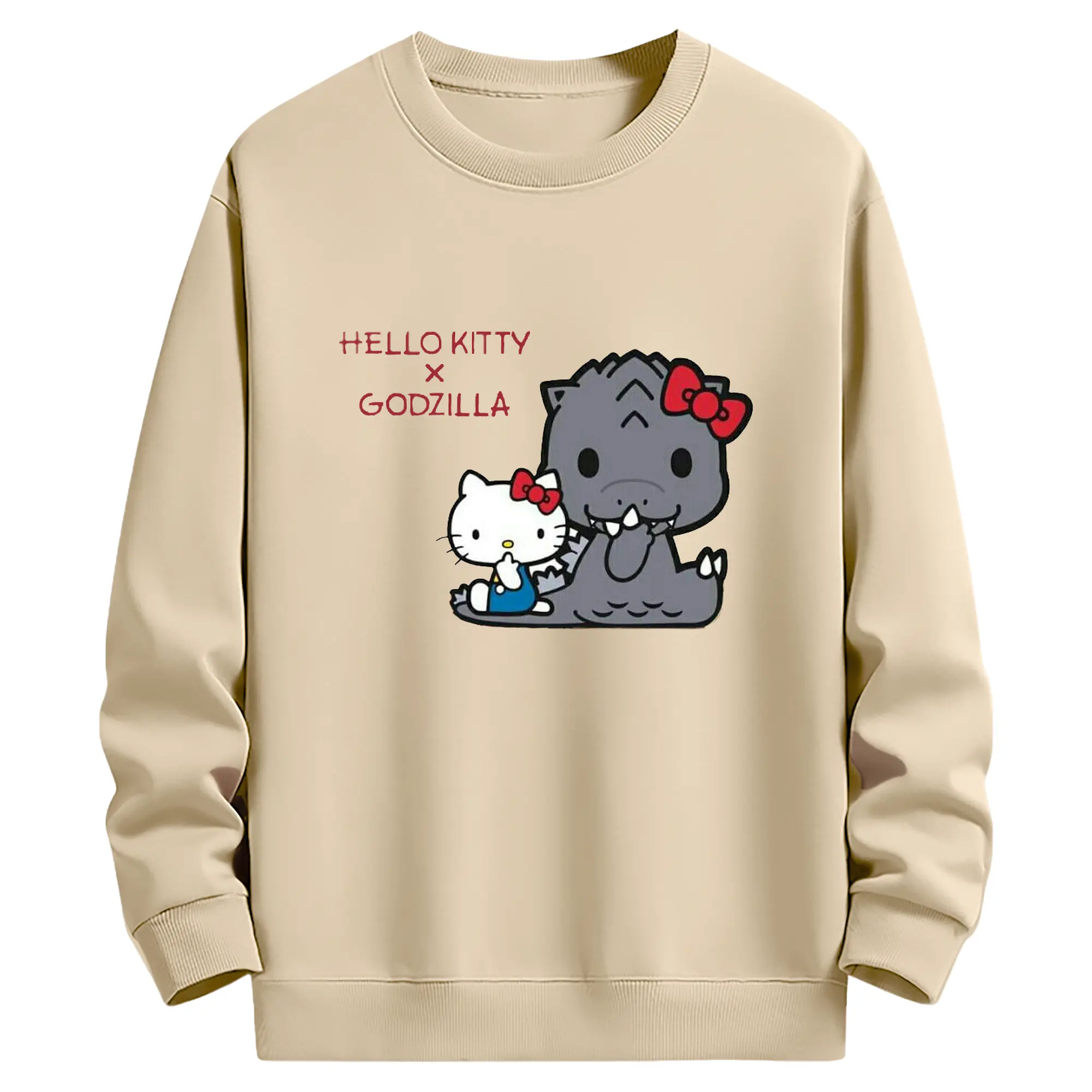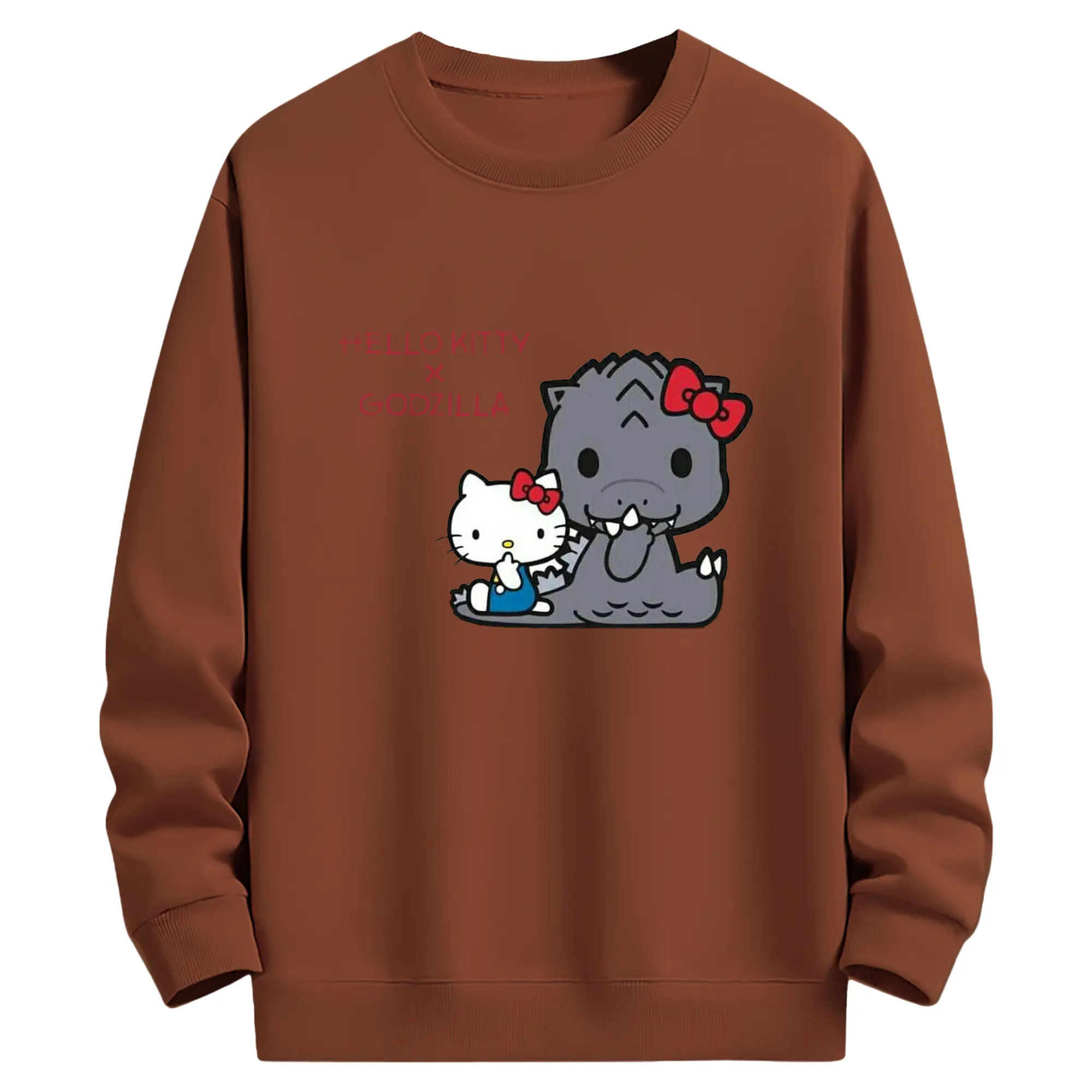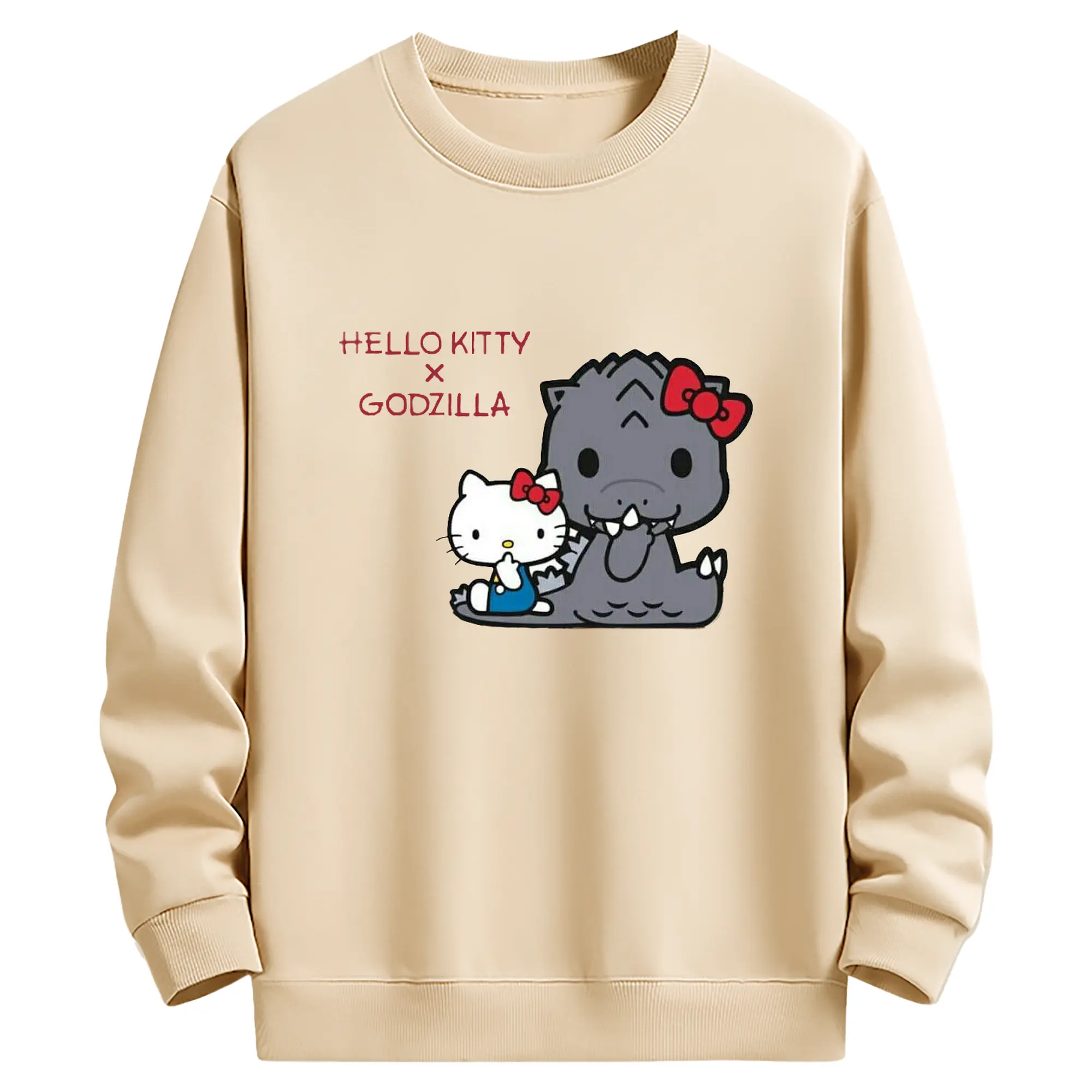 ゴジラ コラボ ハローキティ×ゴジラ特別限定 - 高品質 クルーネック スウェット ・ コットン59% ポリエステル41% ・ ユニセックス 長袖 トレーナー ・ カジュアル デイリー スポーツ 散歩用