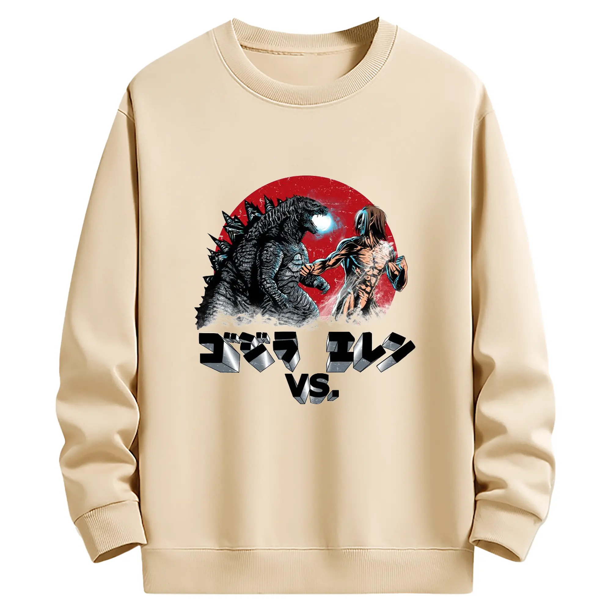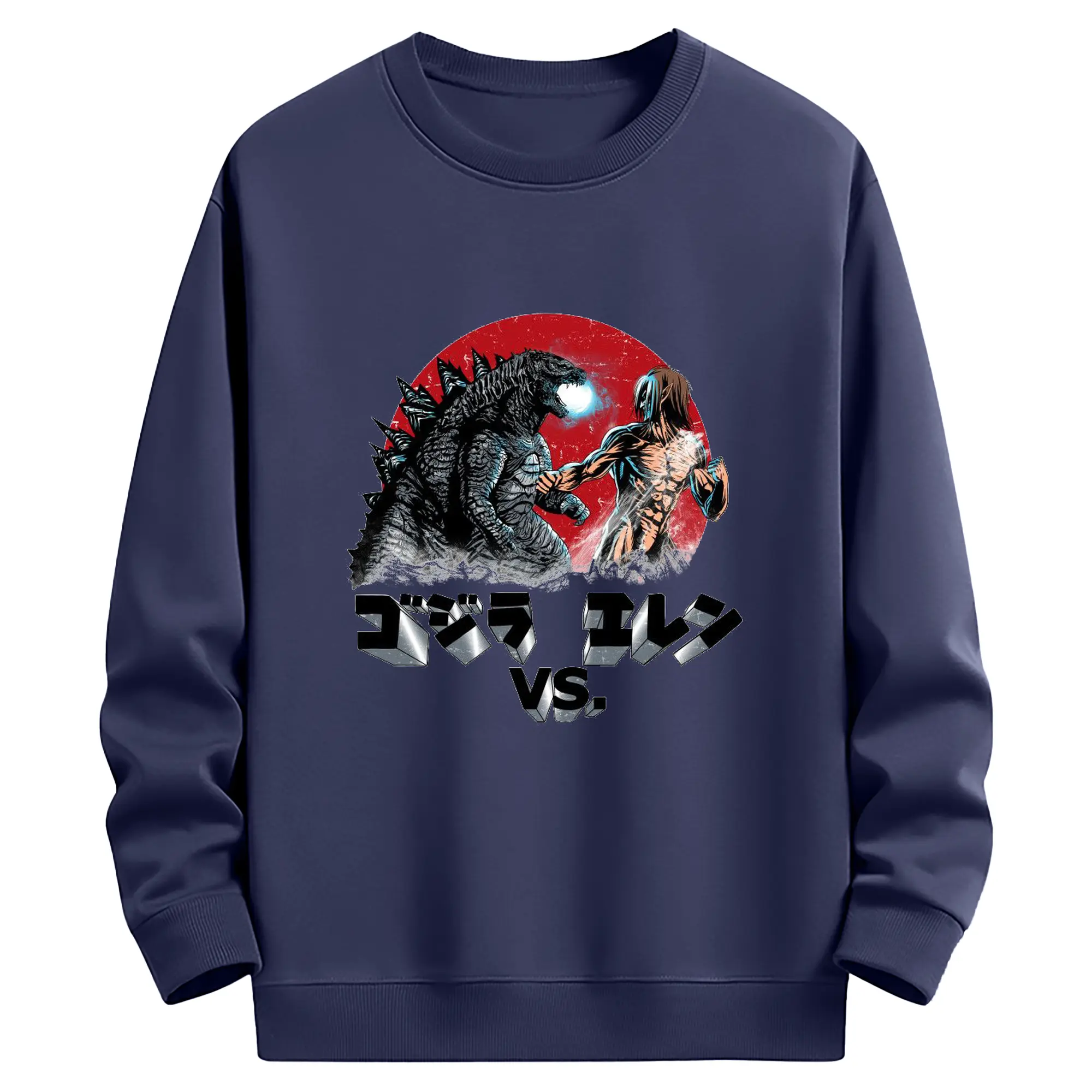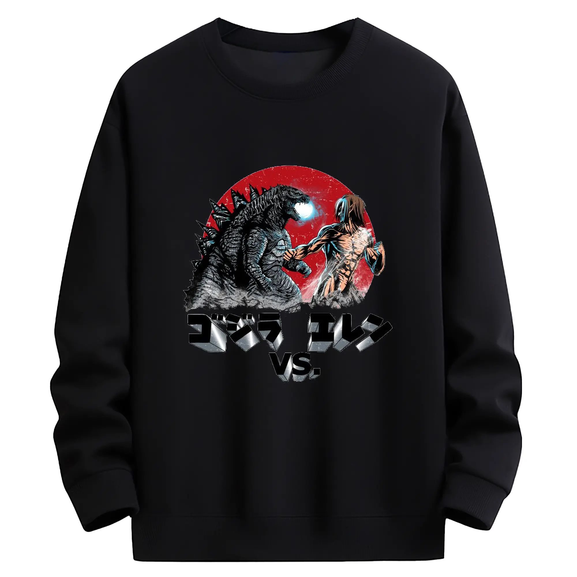 ゴジラ コラボ 進撃の巨人とゴジラ - 高品質 クルーネック スウェット ・ コットン59% ポリエステル41% ・ ユニセックス 長袖 トレーナー ・ カジュアル デイリー スポーツ 散歩用