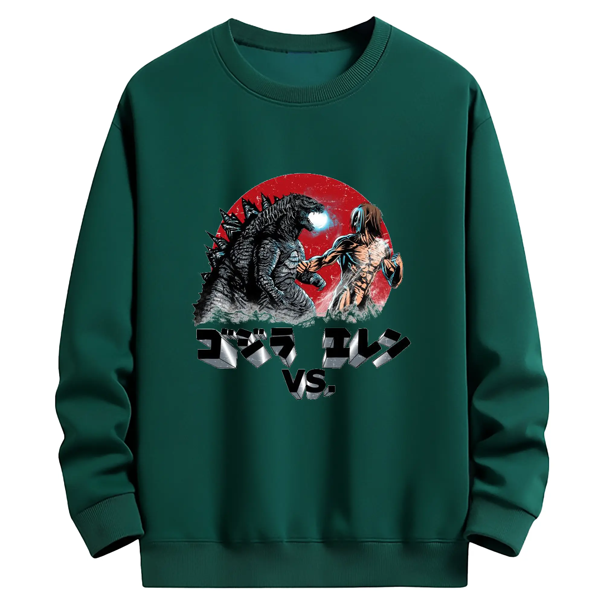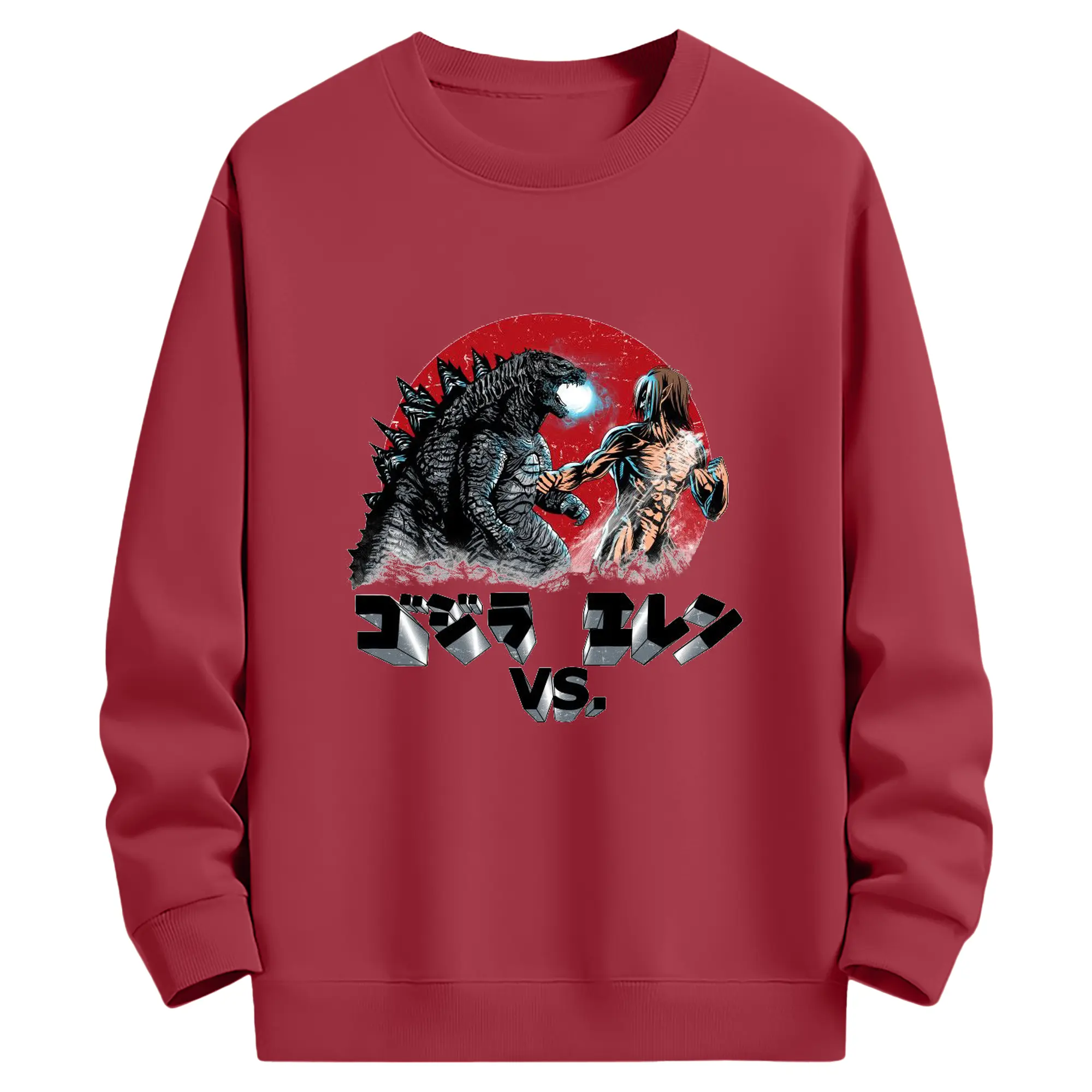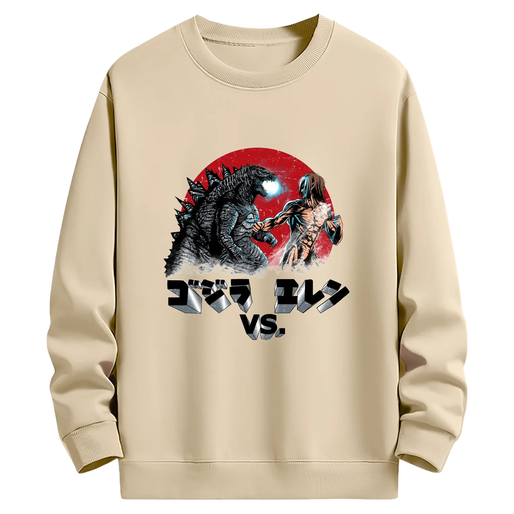 ゴジラ コラボ 進撃の巨人とゴジラ - 高品質 クルーネック スウェット ・ コットン59% ポリエステル41% ・ ユニセックス 長袖 トレーナー ・ カジュアル デイリー スポーツ 散歩用