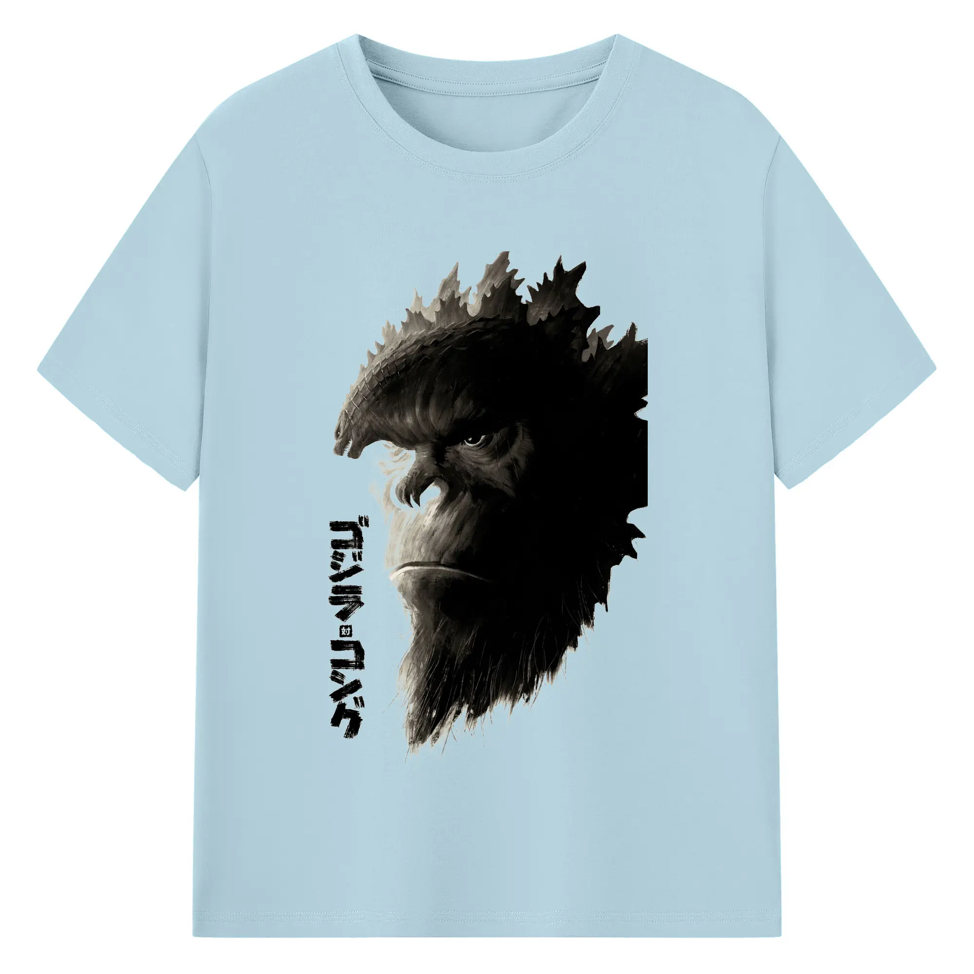 ゴジラ × コング モンスター - 綿100% 半袖Tシャツ ・ フロントプリント ・ 快適 通気性 ・ 日常使い 散歩 スポーツ用