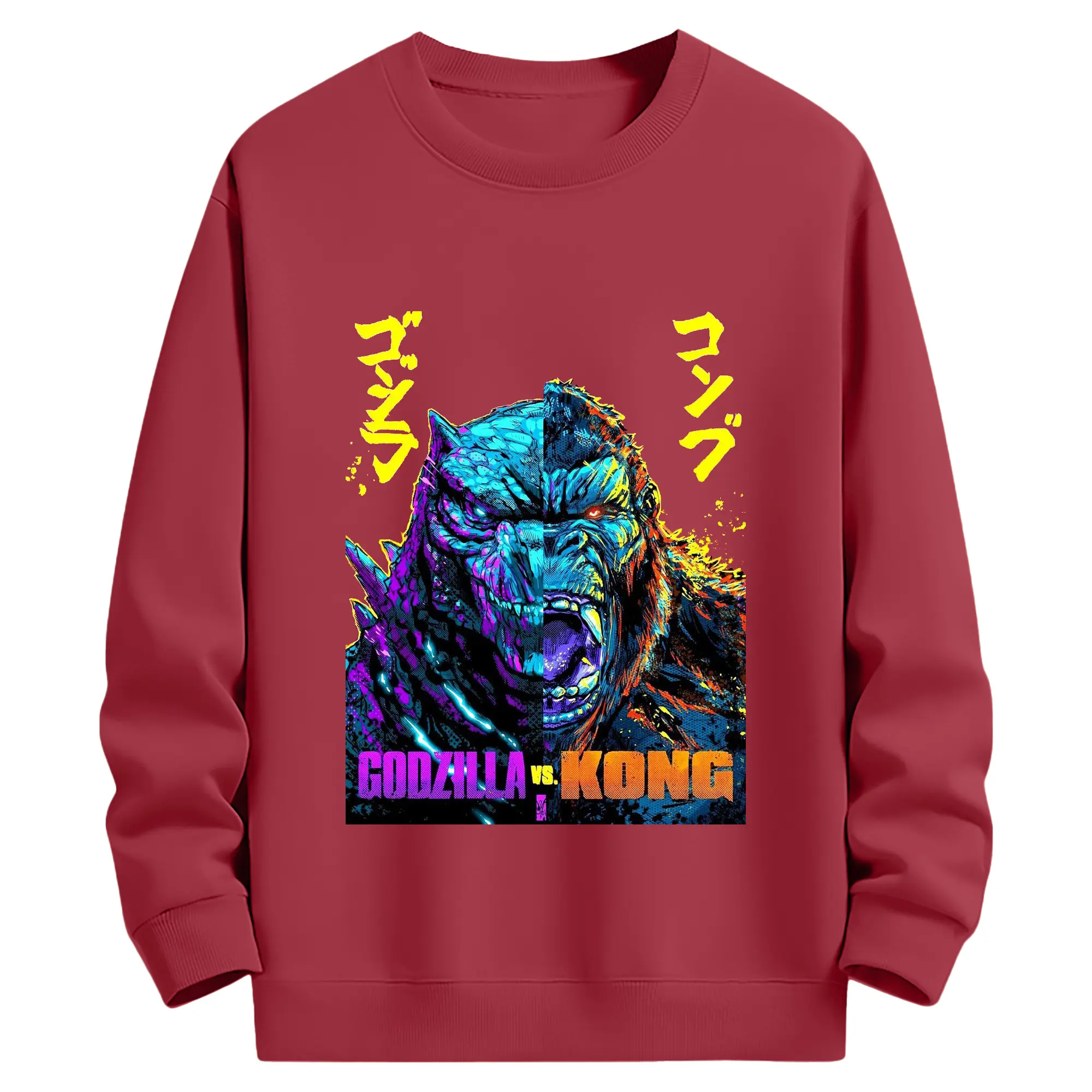 ゴジラ × コング モンスターヴァース - 高品質 クルーネック スウェット ・ コットン59% ポリエステル41% ・ ユニセックス 長袖 トレーナー ・ カジュアル デイリー スポーツ 散歩用