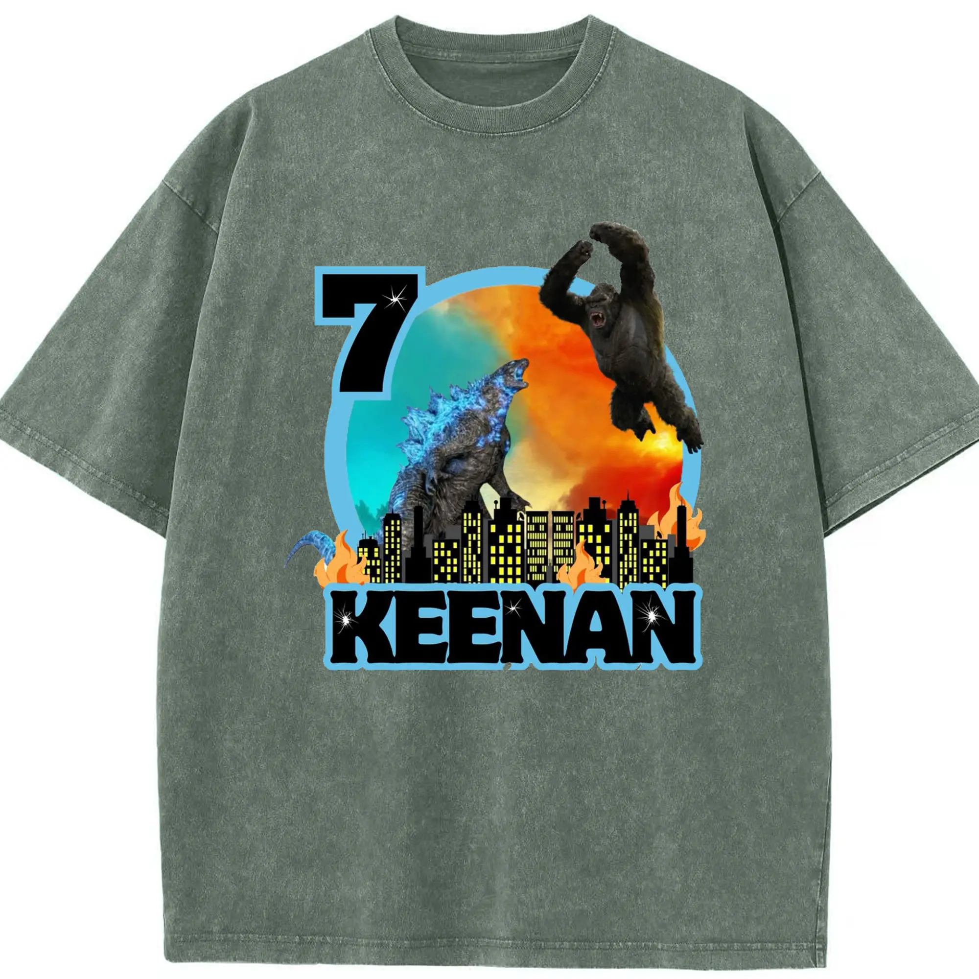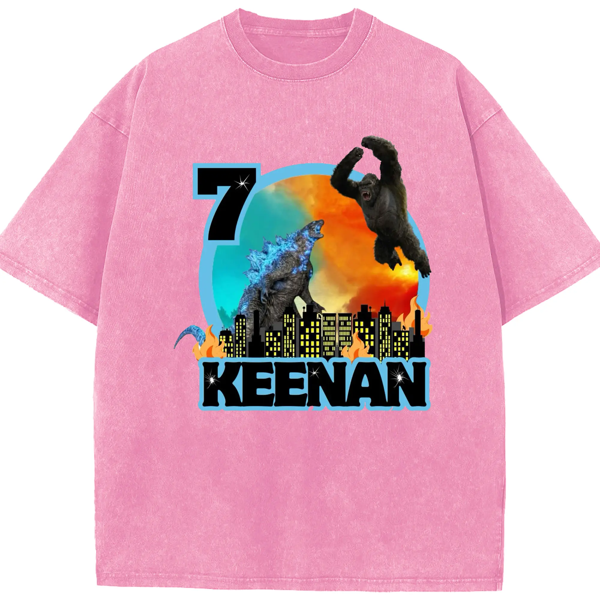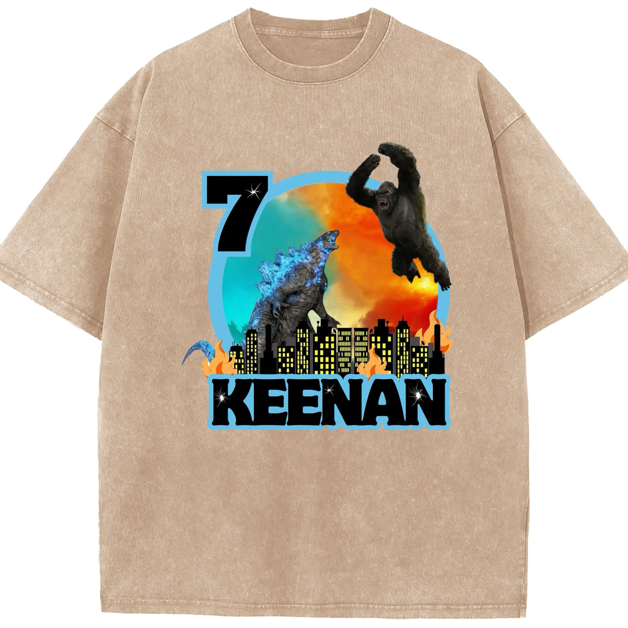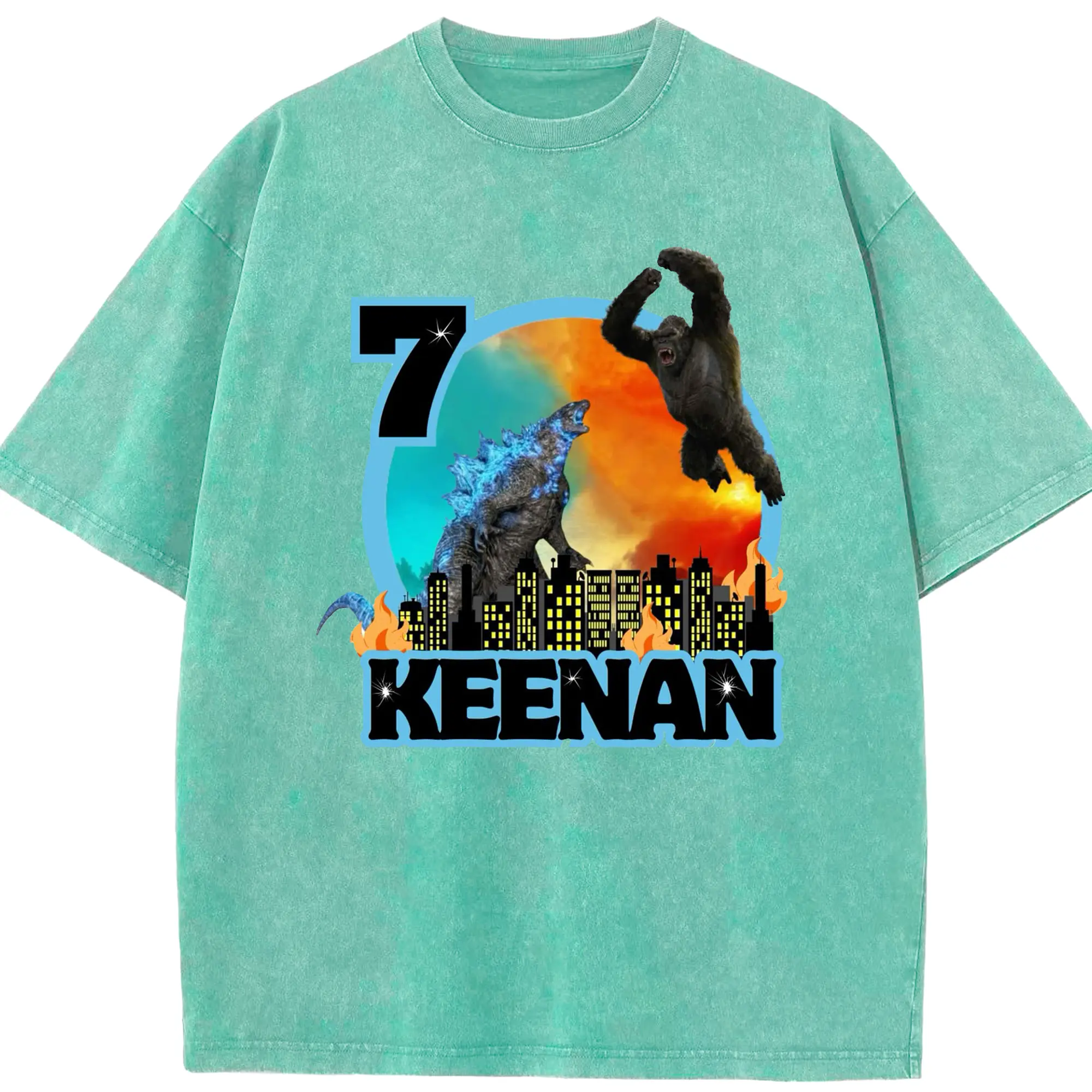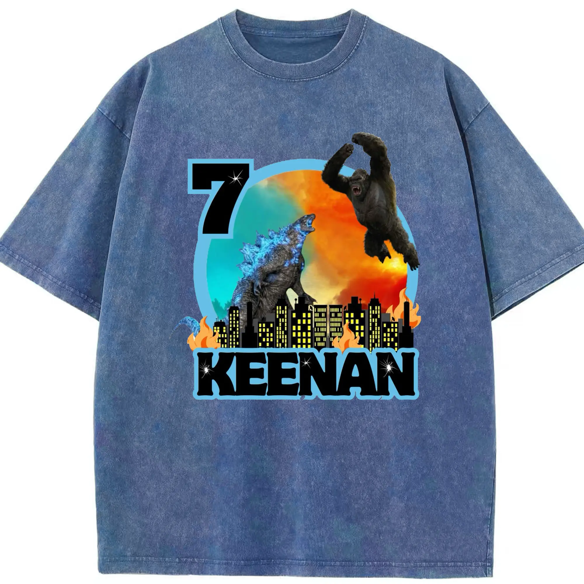 ゴジラ × コング モンスターヴァース 都市破壊 - 綿100% ヴィンテージ風 半袖Tシャツ ・ フロントプリント ・ 柔らか肌触り ・ 通気性 快適 ・ スポーツ カジュアル 外出用