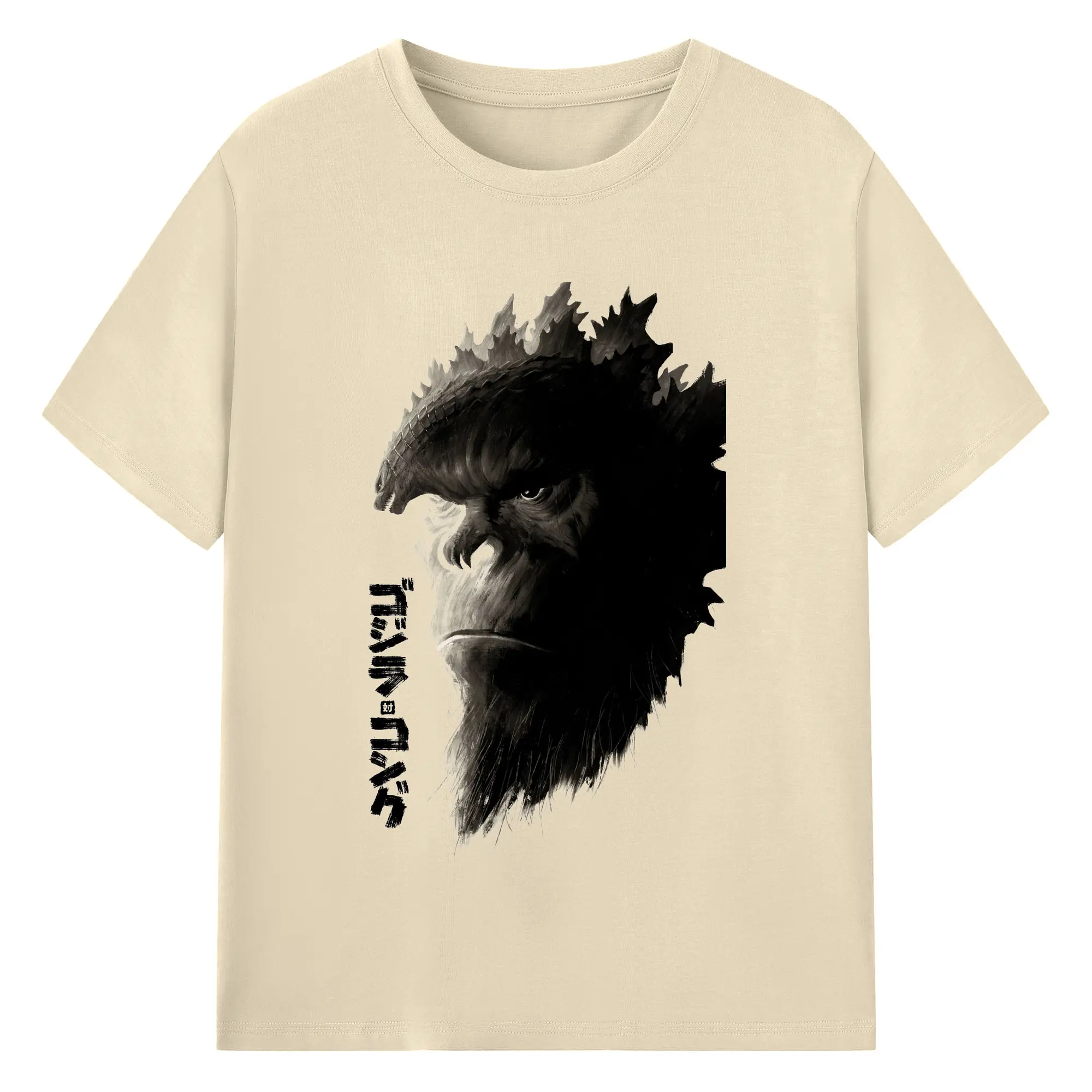 ゴジラ × コング モンスター - 綿100% ヴィンテージ風 半袖Tシャツ ・ フロントプリント ・ 柔らか肌触り ・ 通気性 快適 ・ スポーツ カジュアル 外出用
