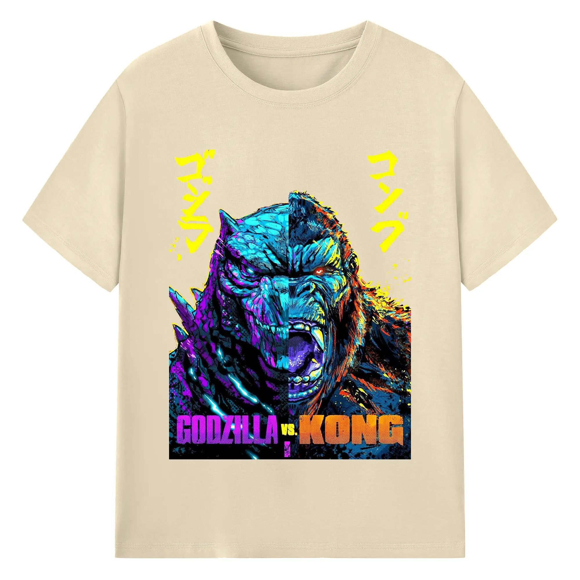 ゴジラ × コング モンスターヴァース - 綿100% ヴィンテージ風 半袖Tシャツ ・ フロントプリント ・ 柔らか肌触り ・ 通気性 快適 ・ スポーツ カジュアル 外出用