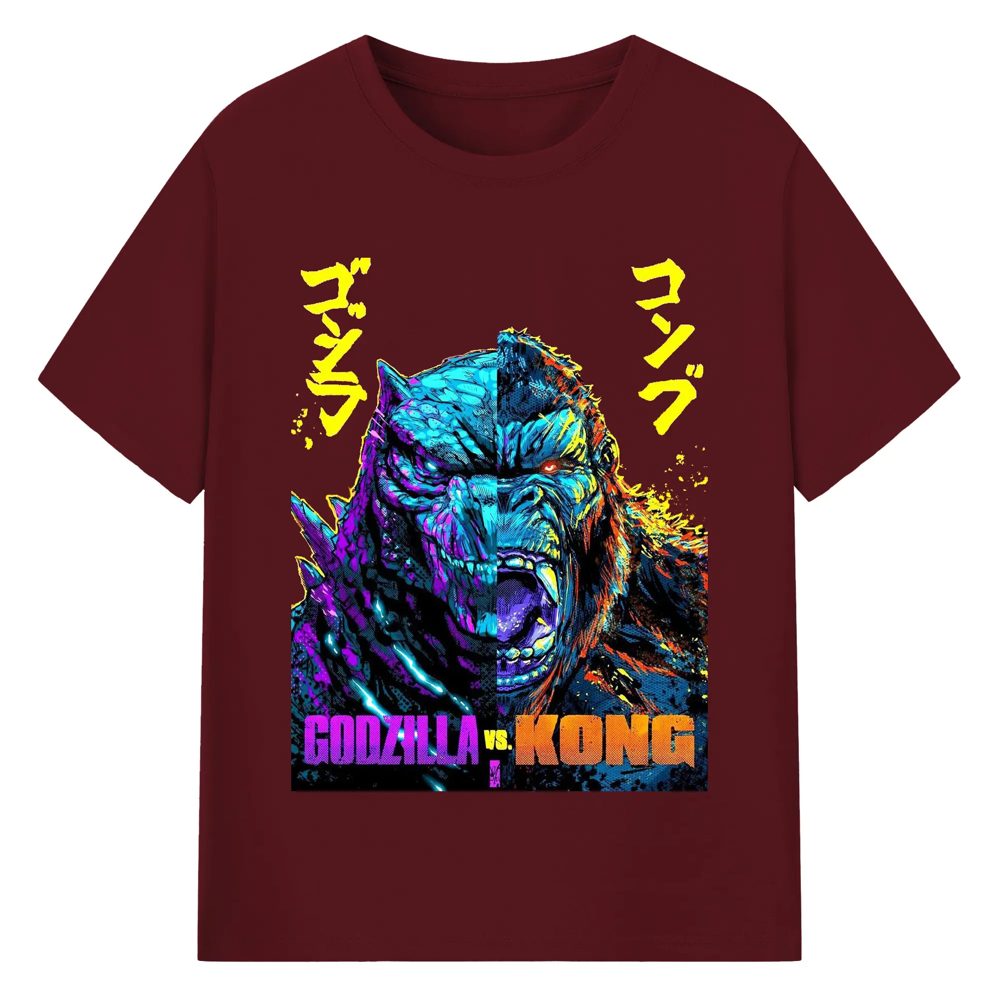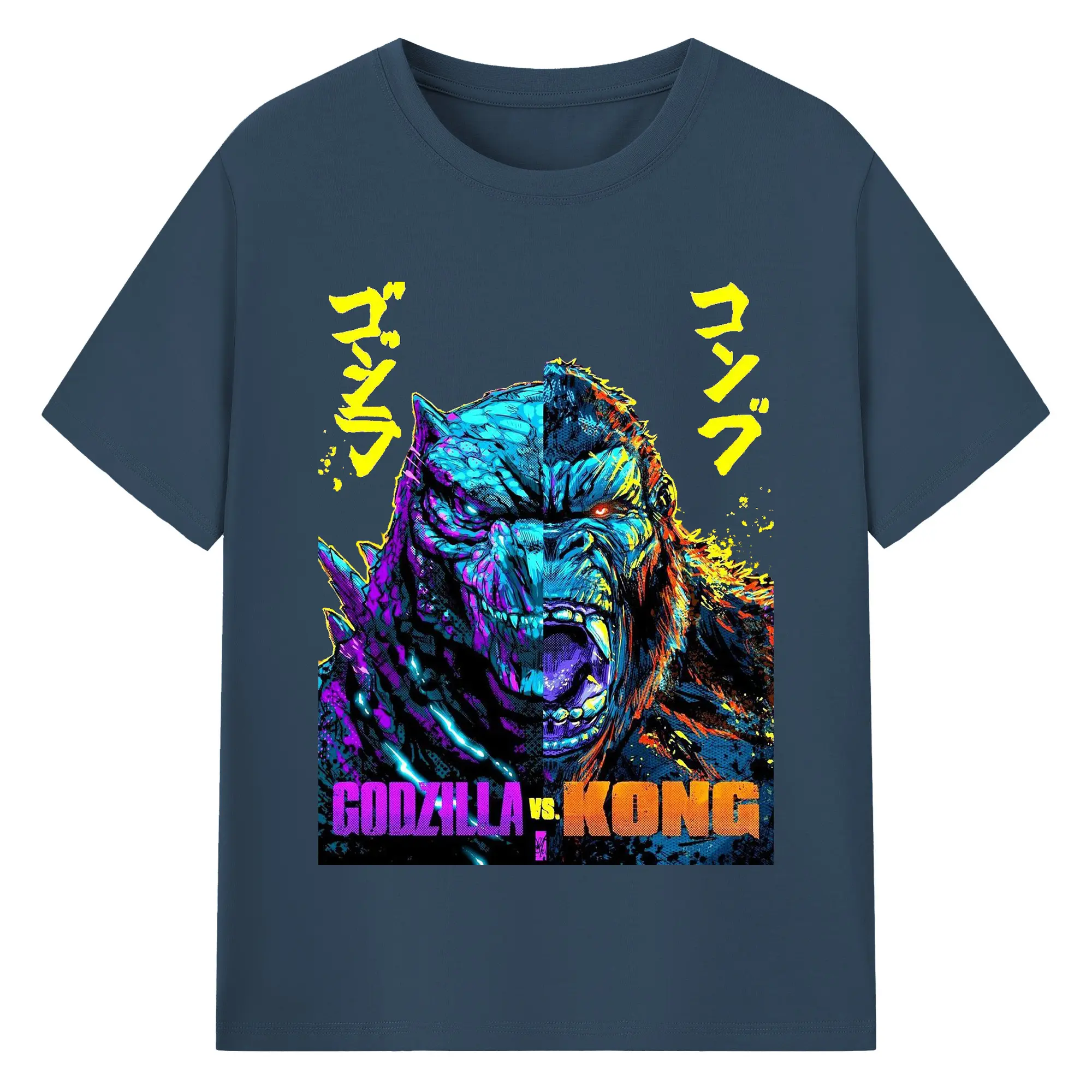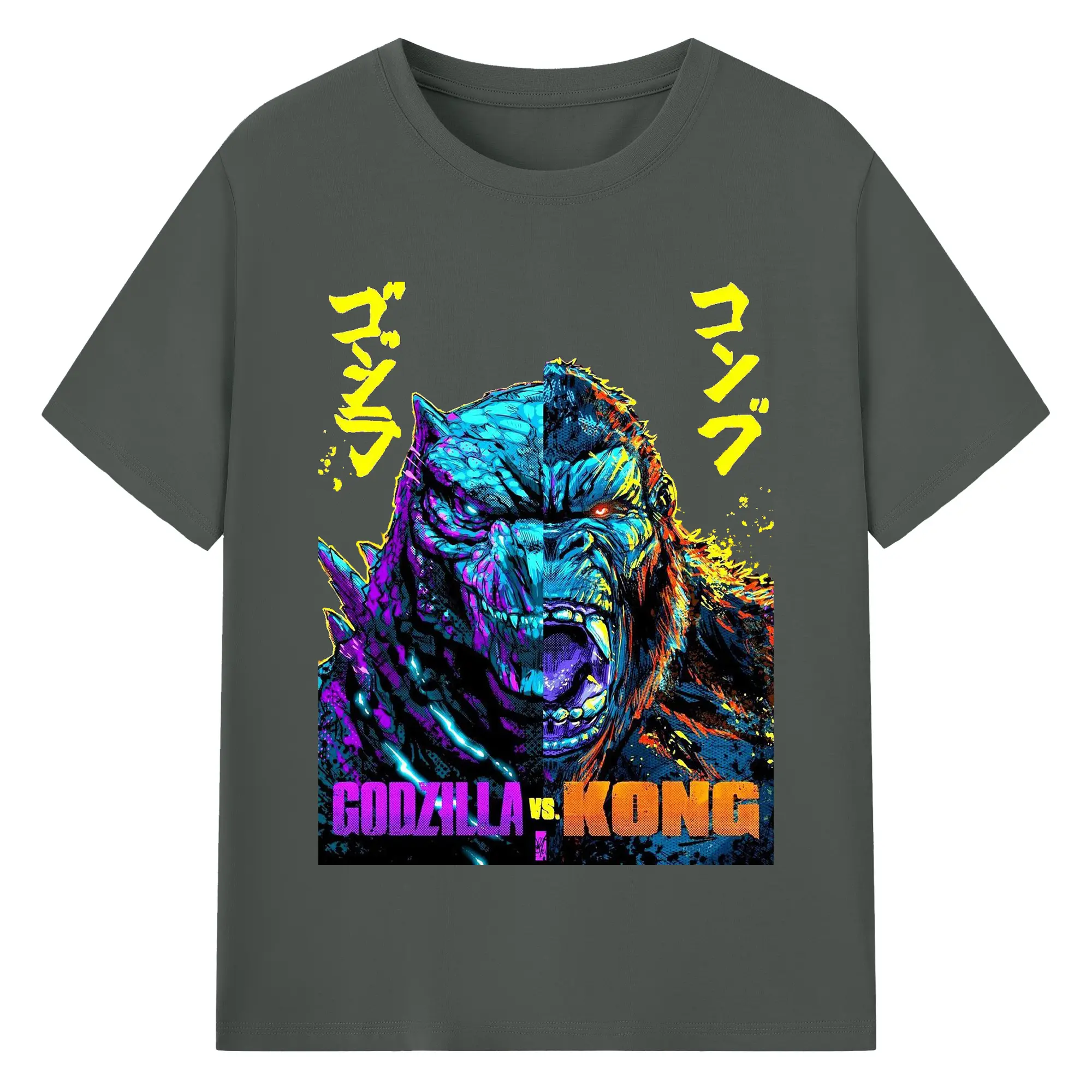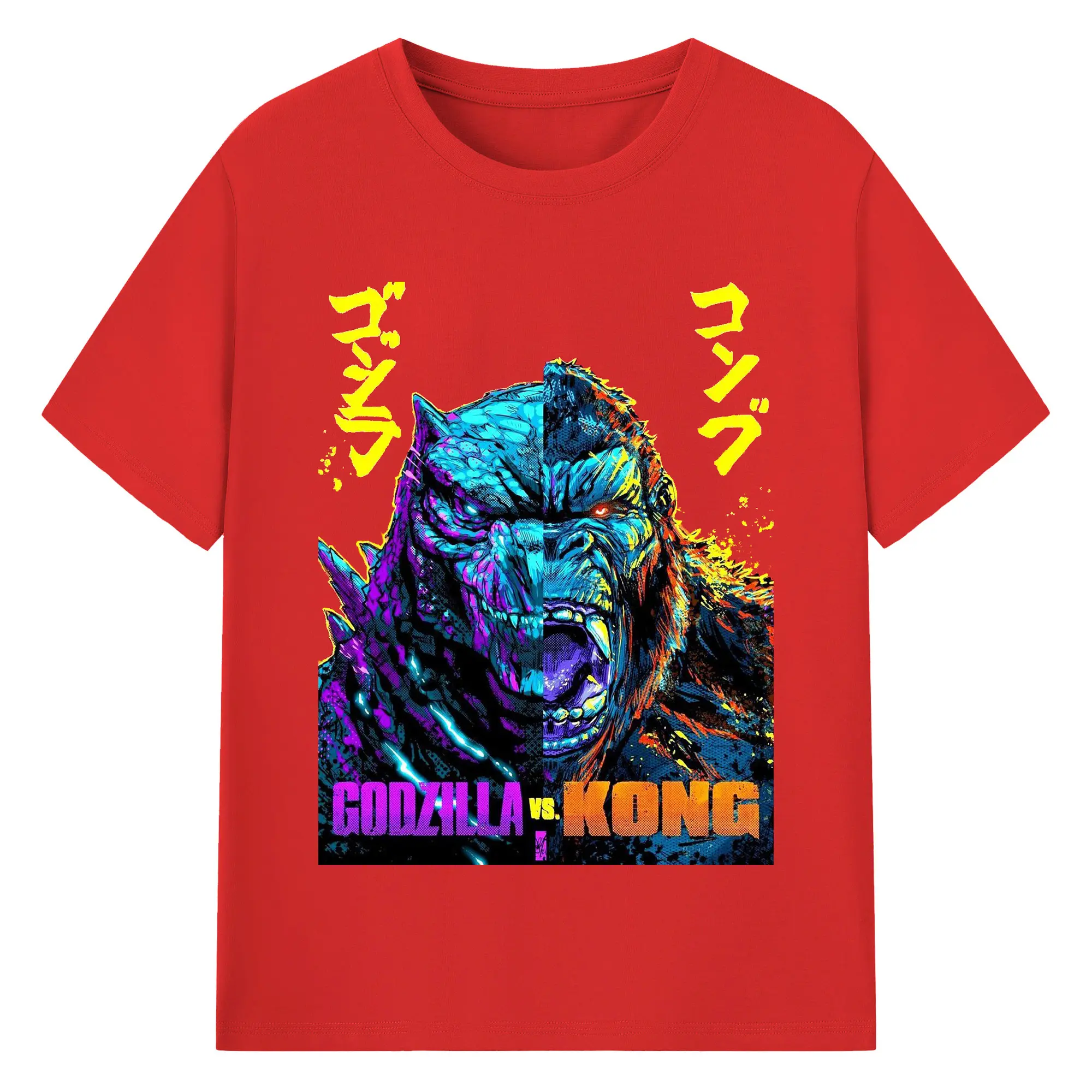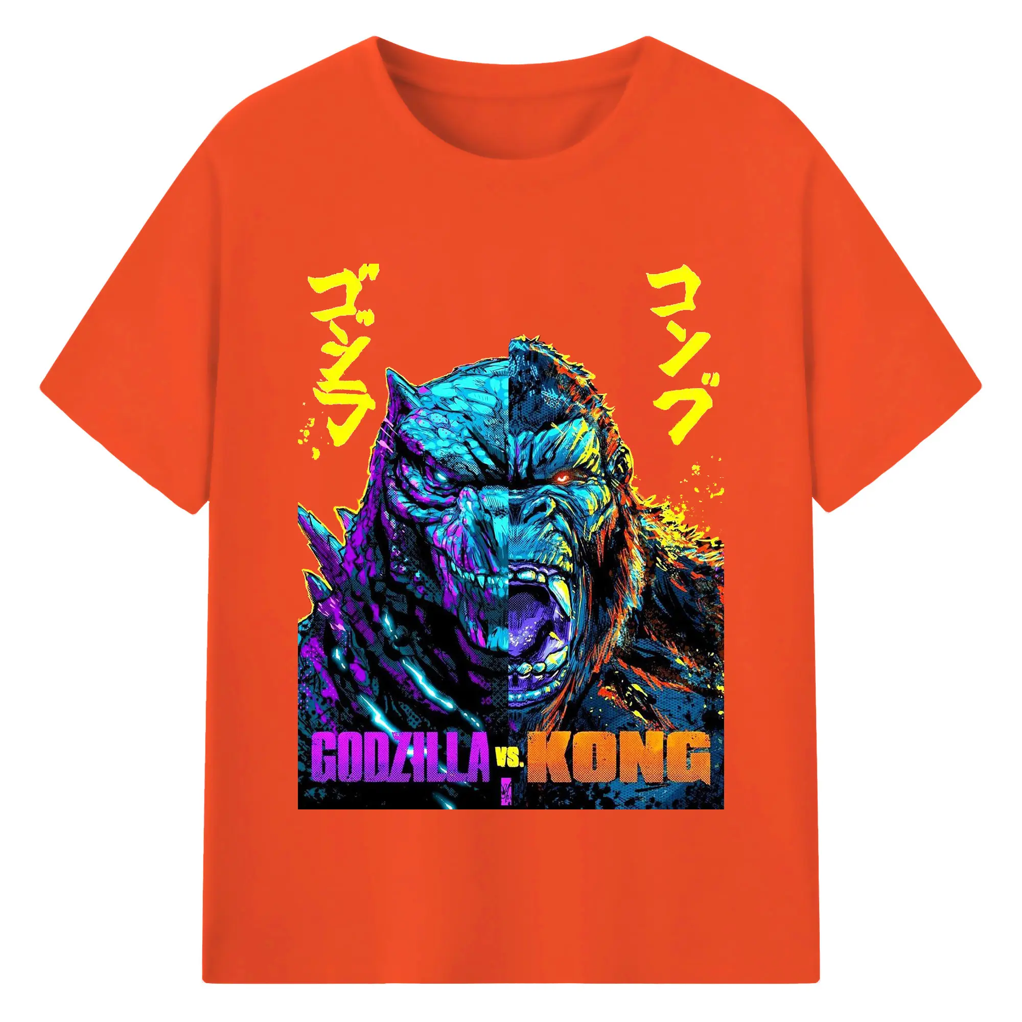 ゴジラ × コング モンスターヴァース - 綿100% 半袖Tシャツ ・ フロントプリント ・ 快適 通気性 ・ 日常使い 散歩 スポーツ用