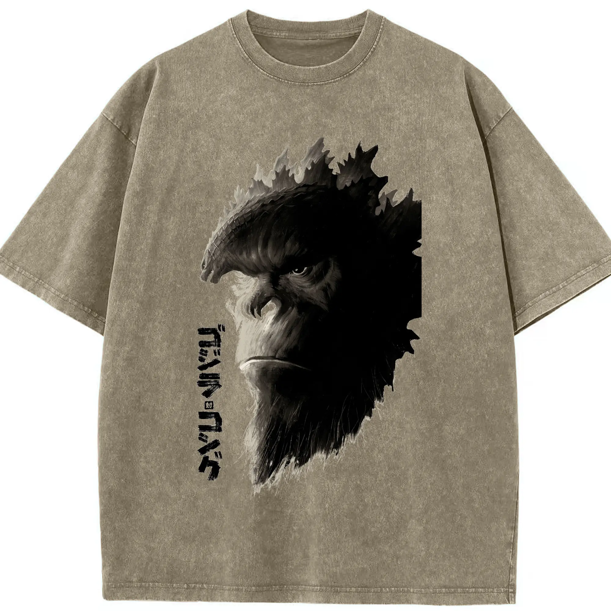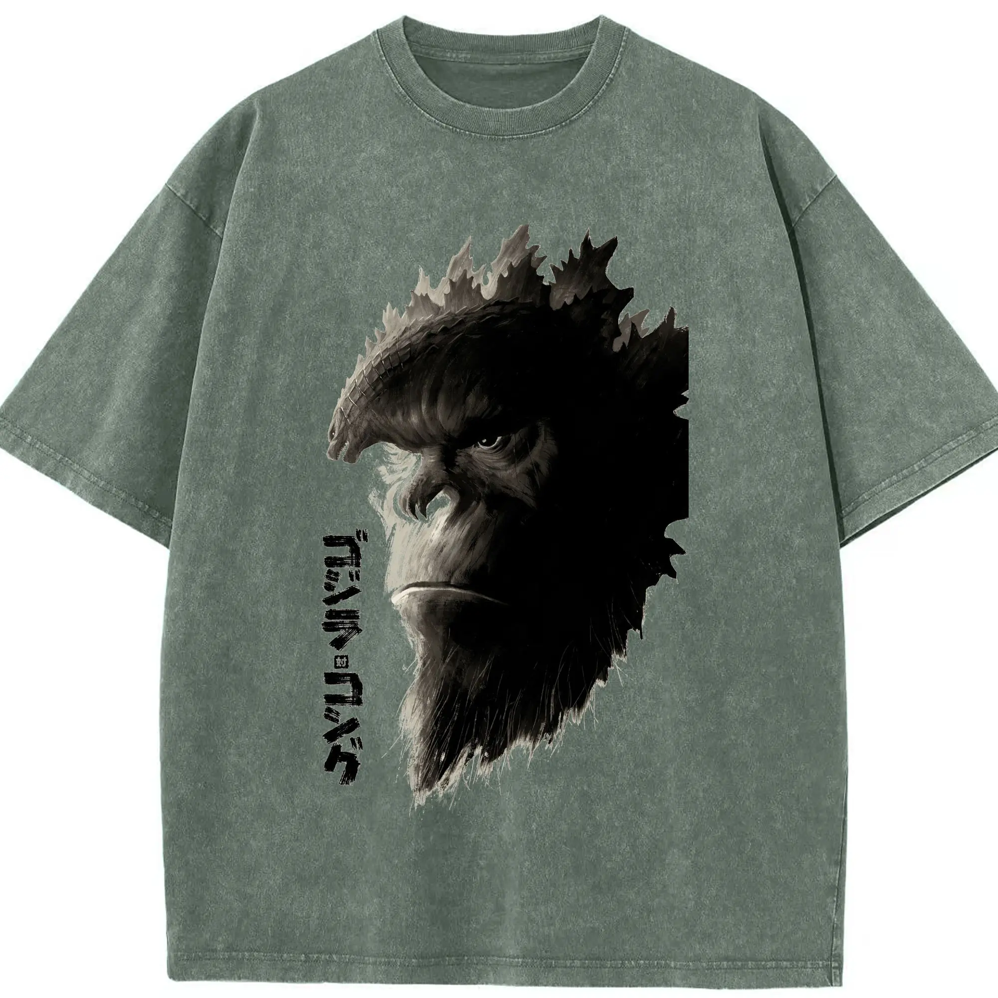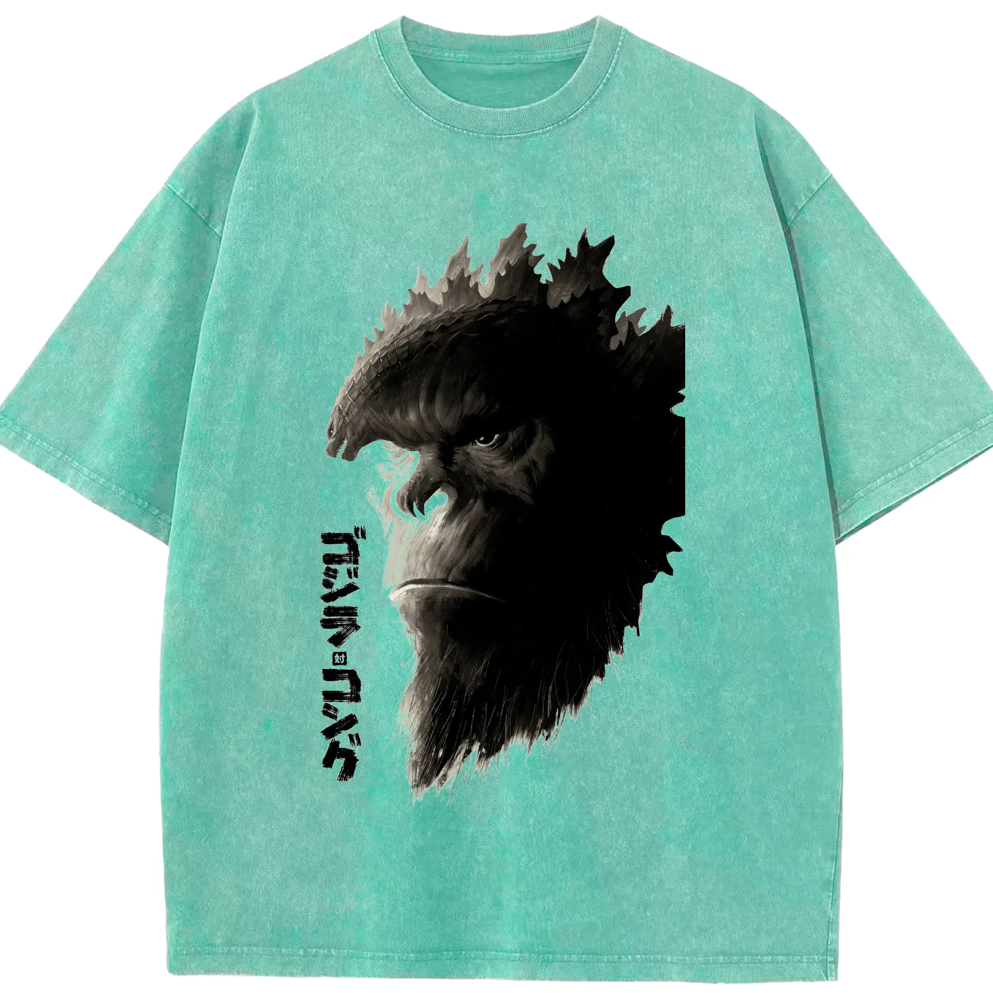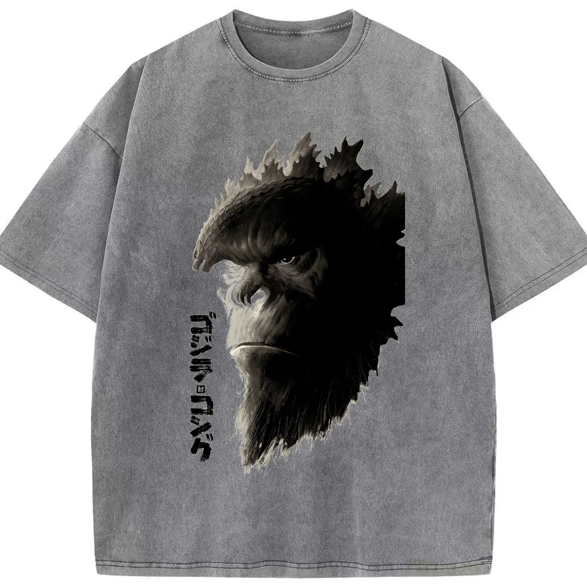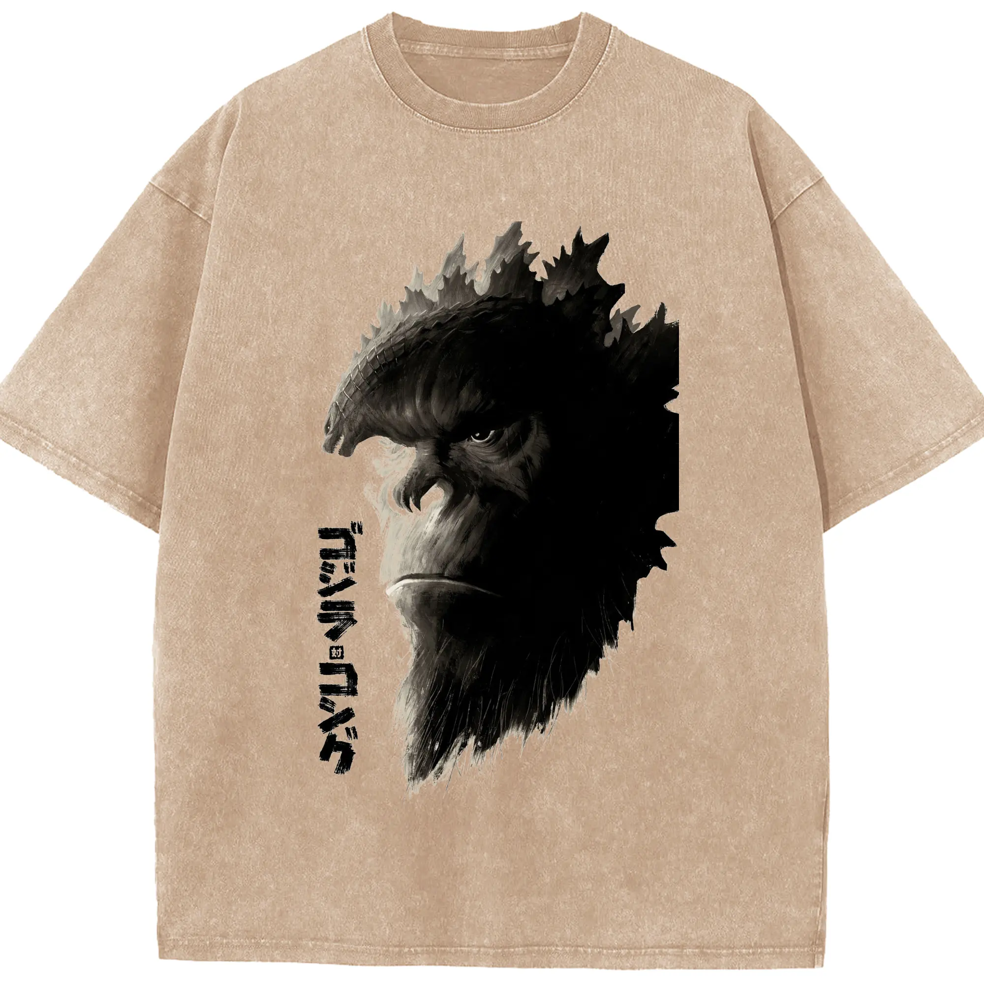 ゴジラ × コング モンスター - 綿100% ヴィンテージ風 半袖Tシャツ ・ フロントプリント ・ 柔らか肌触り ・ 通気性 快適 ・ スポーツ カジュアル 外出用