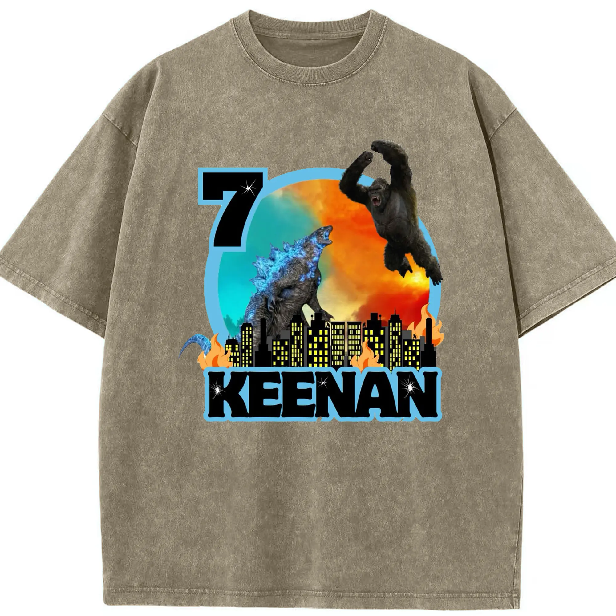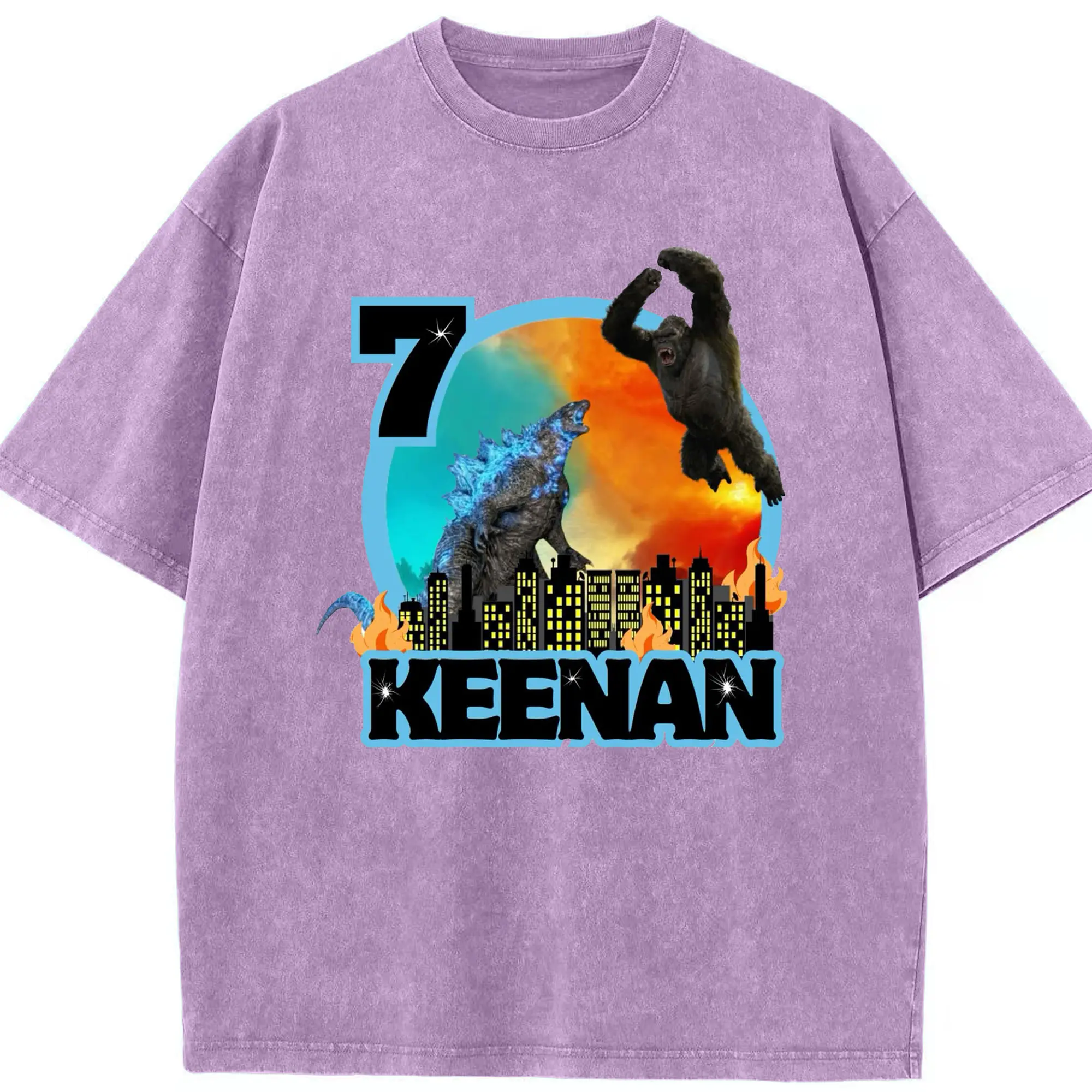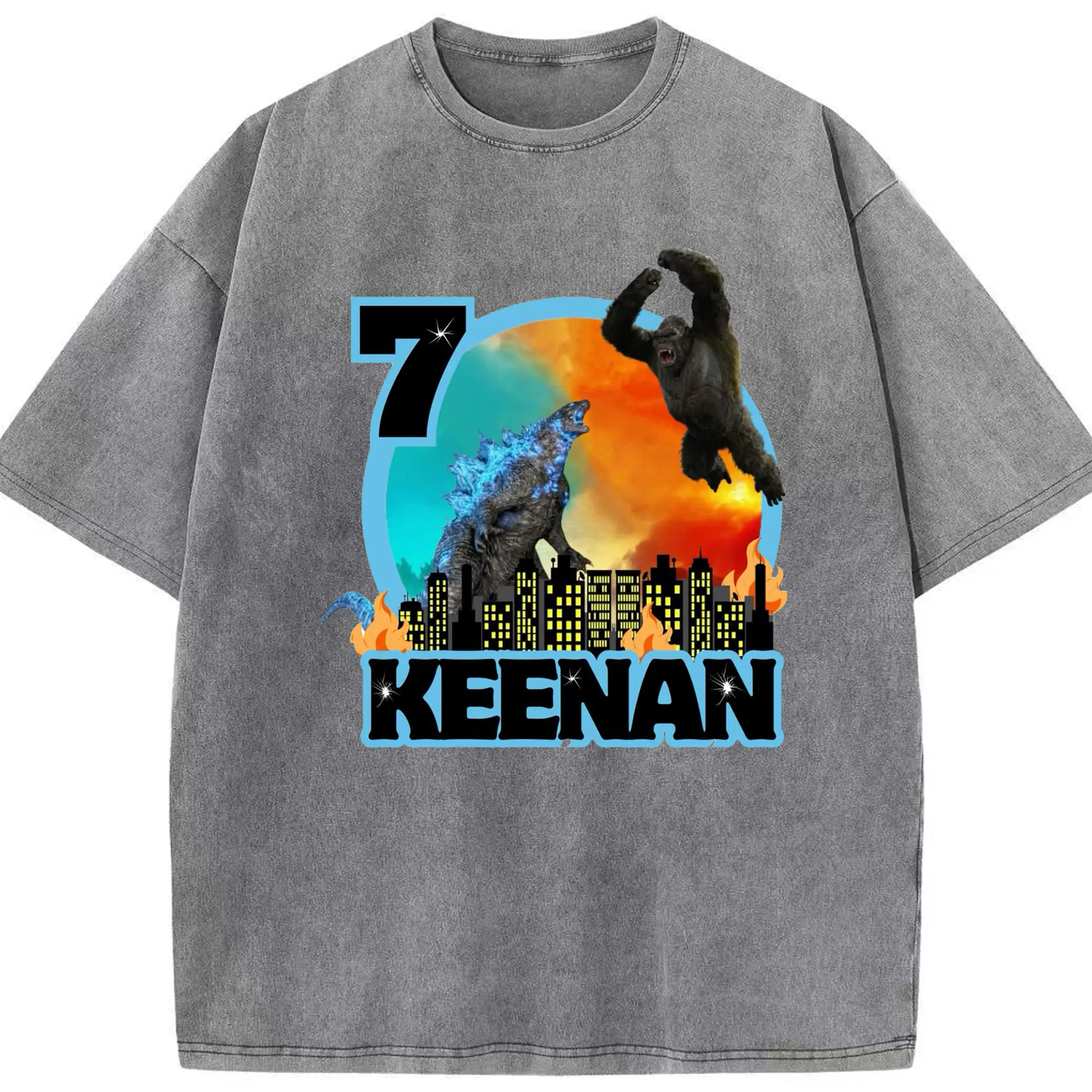 ゴジラ × コング モンスターヴァース 都市破壊 - 綿100% ヴィンテージ風 半袖Tシャツ ・ フロントプリント ・ 柔らか肌触り ・ 通気性 快適 ・ スポーツ カジュアル 外出用