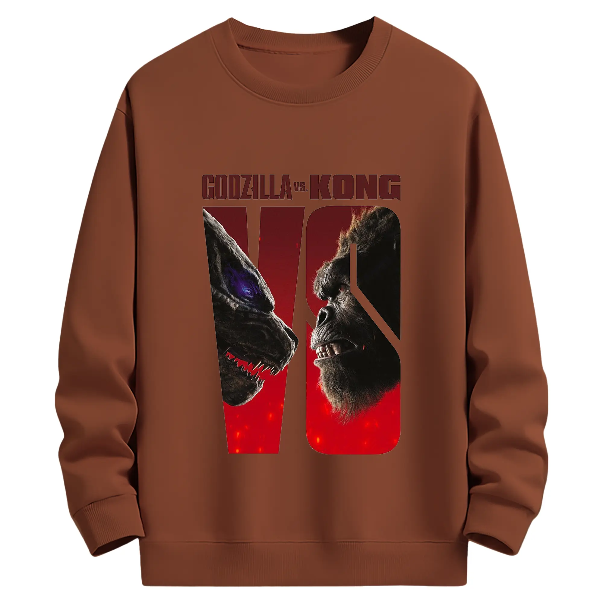 ゴジラ × コング 怪獣映画 怪獣バトル - 高品質 クルーネック スウェット ・ コットン59% ポリエステル41% ・ ユニセックス 長袖 トレーナー ・ カジュアル デイリー スポーツ 散歩用
