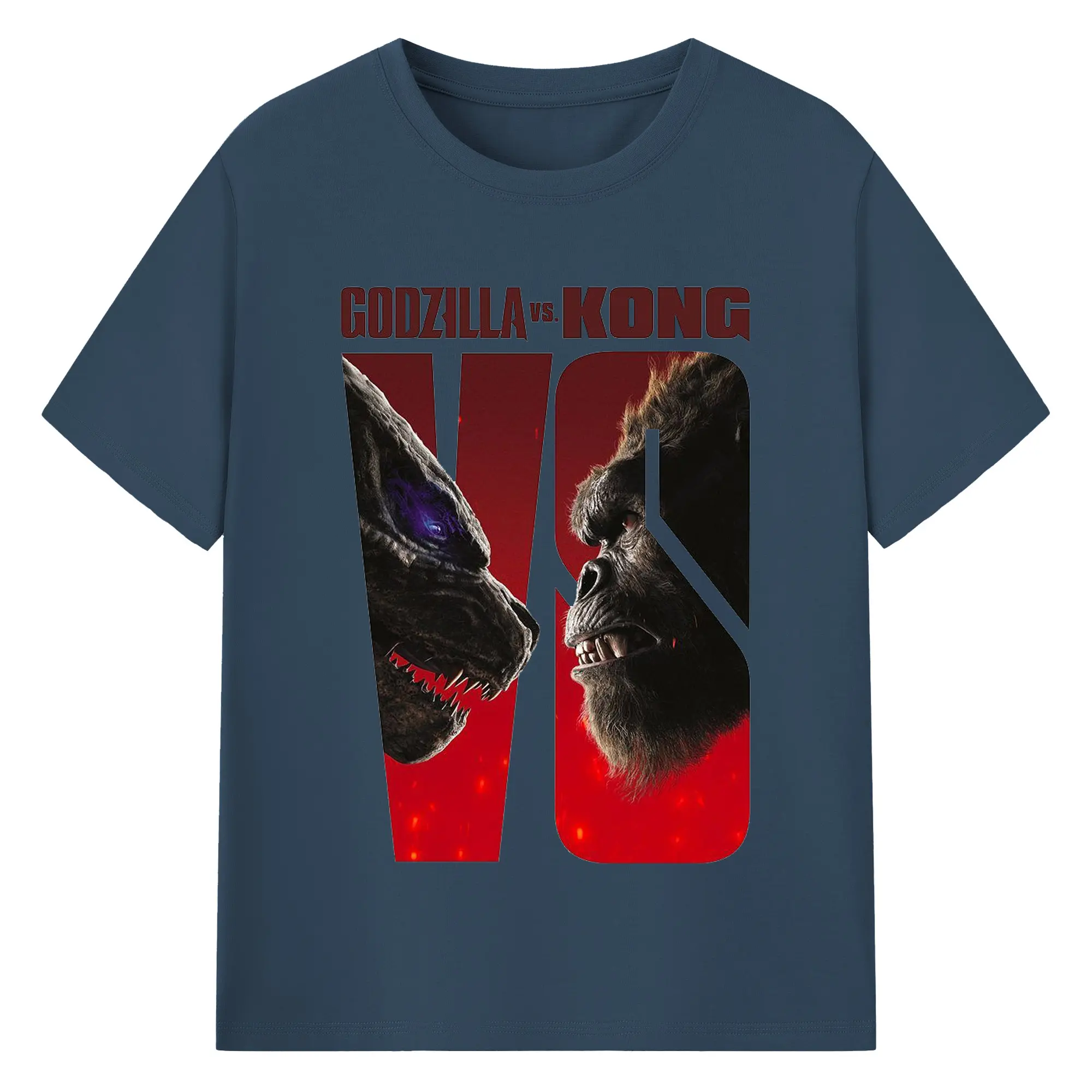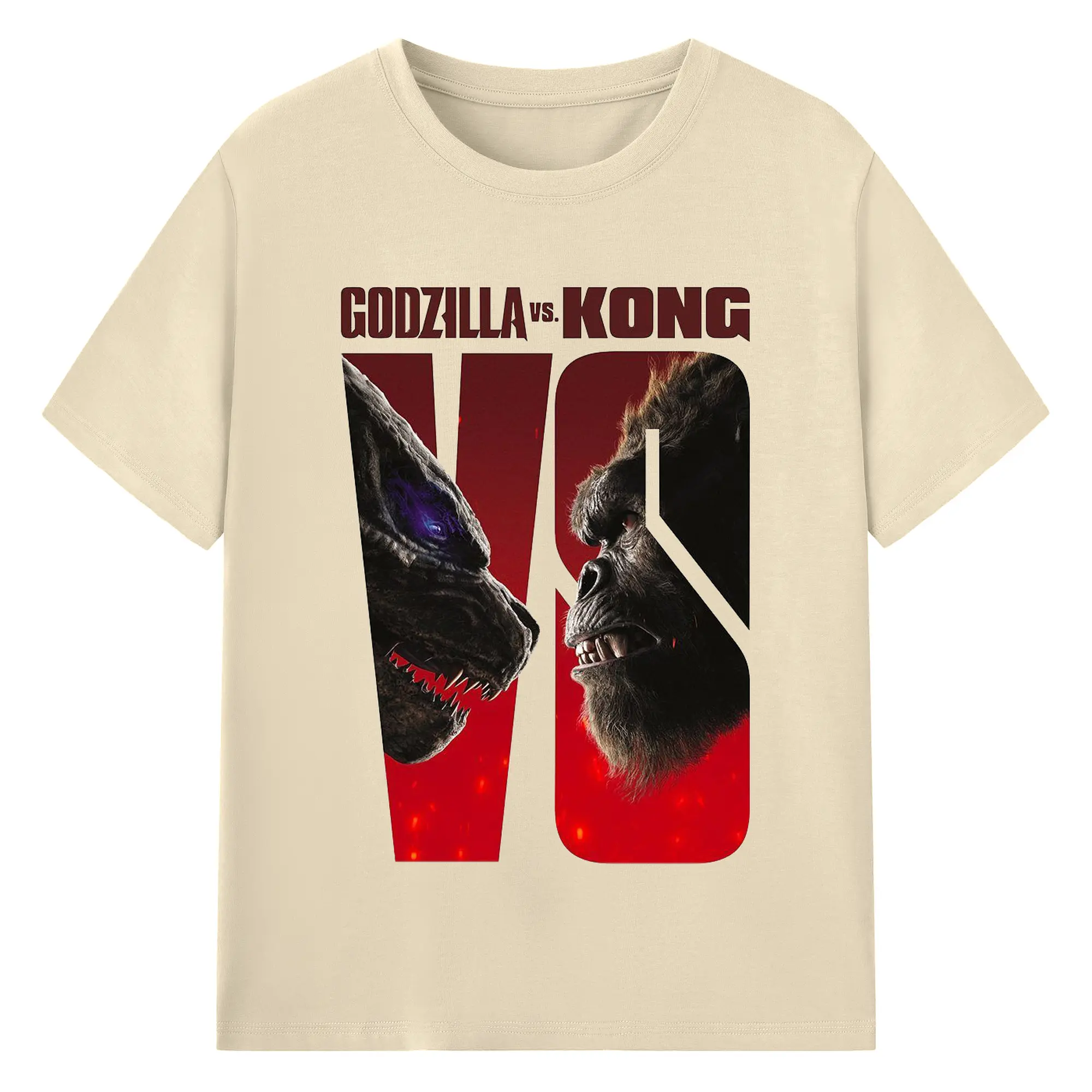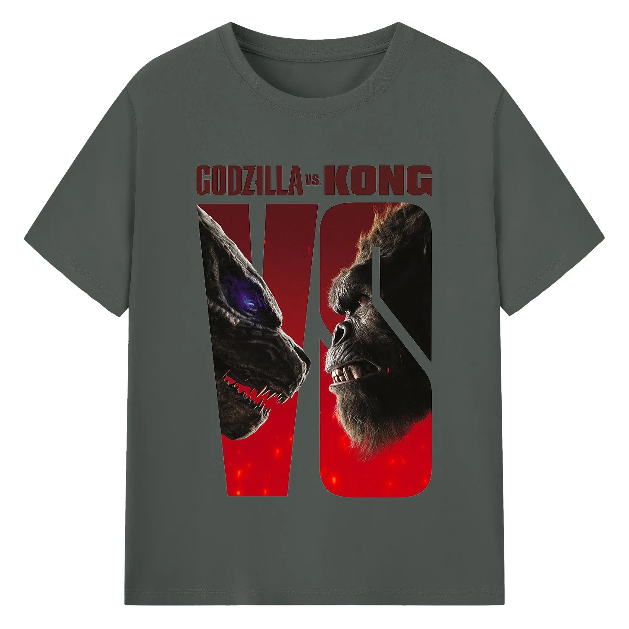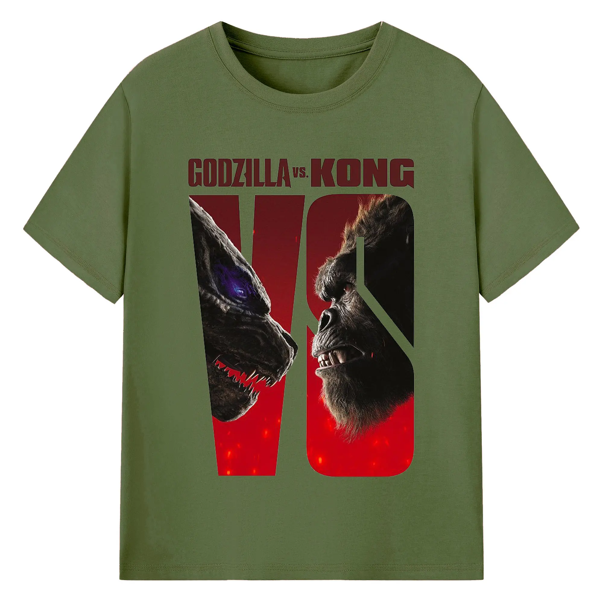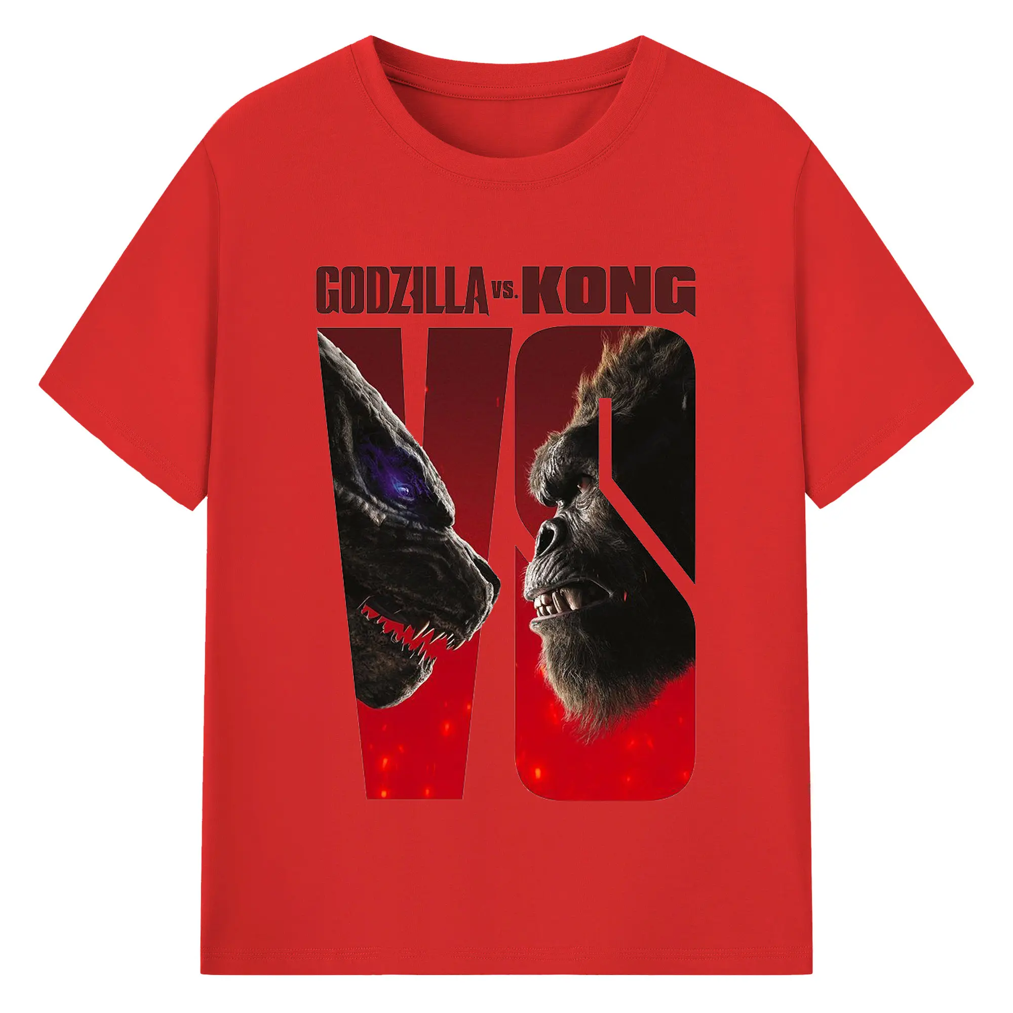 ゴジラ × コング 怪獣映画 怪獣バトル - 綿100% 半袖Tシャツ ・ フロントプリント ・ 快適 通気性 ・ 日常使い 散歩 スポーツ用