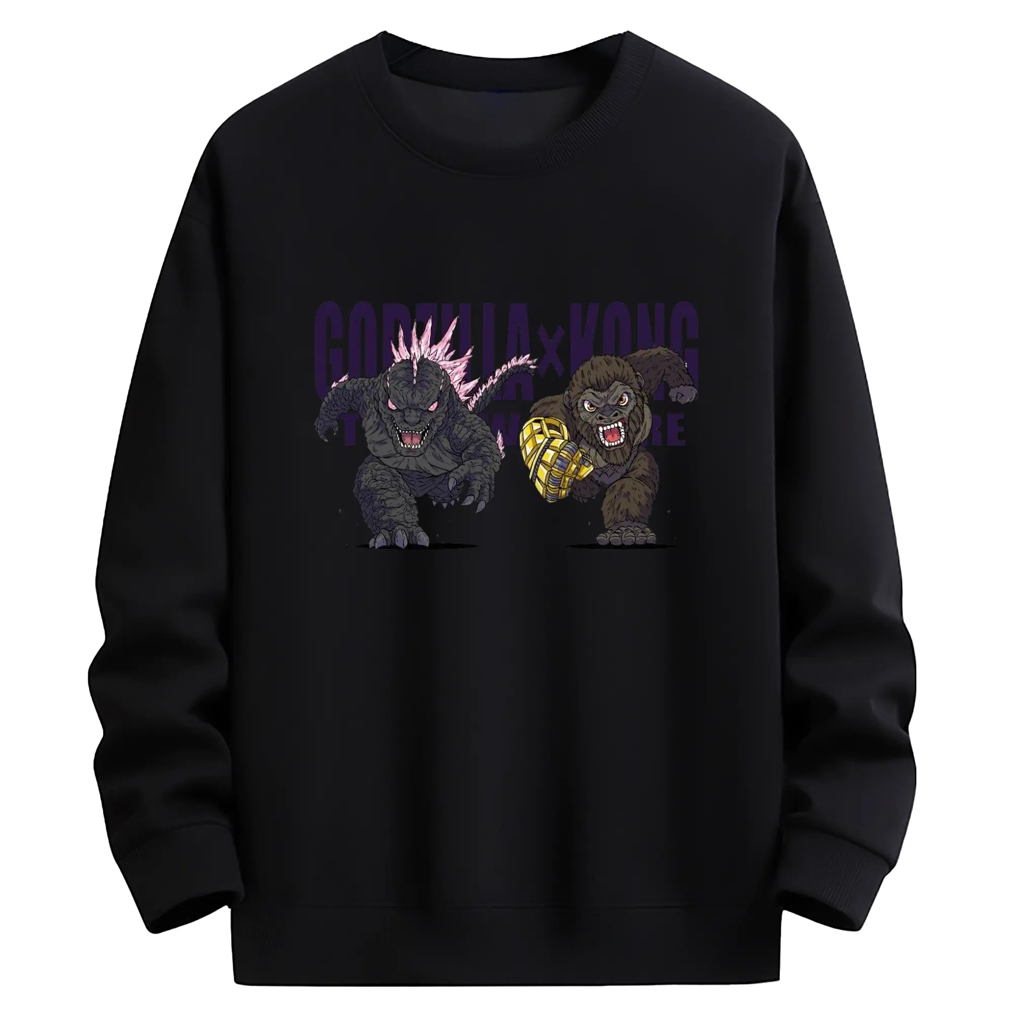 ゴジラ × コング 怪獣バトル - 高品質 クルーネック スウェット ・ コットン59% ポリエステル41% ・ ユニセックス 長袖 トレーナー ・ カジュアル デイリー スポーツ 散歩用