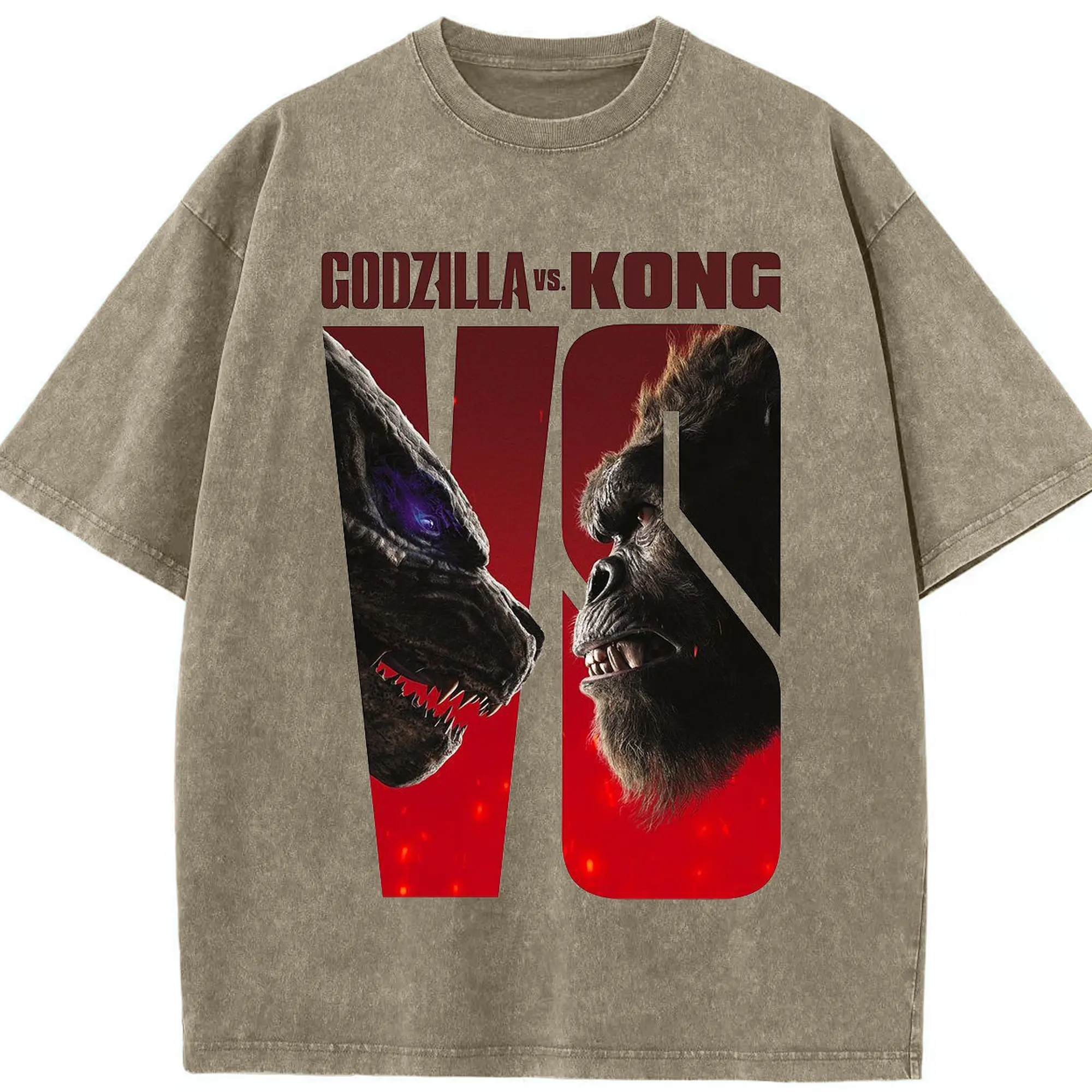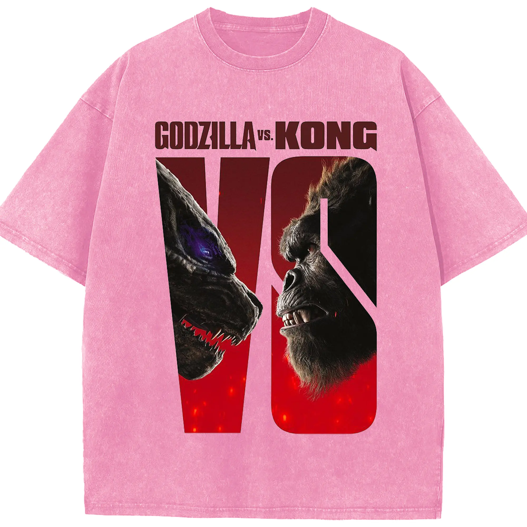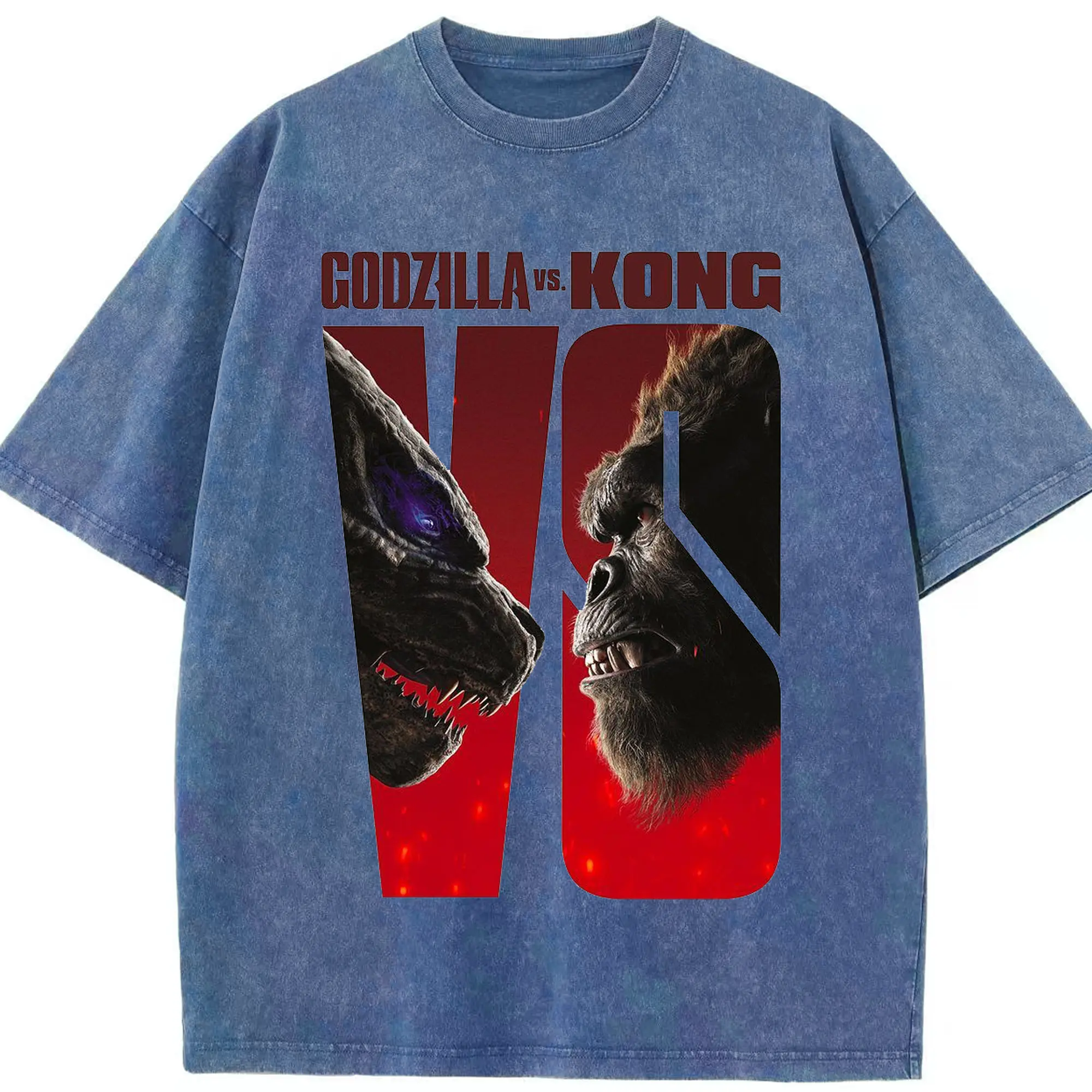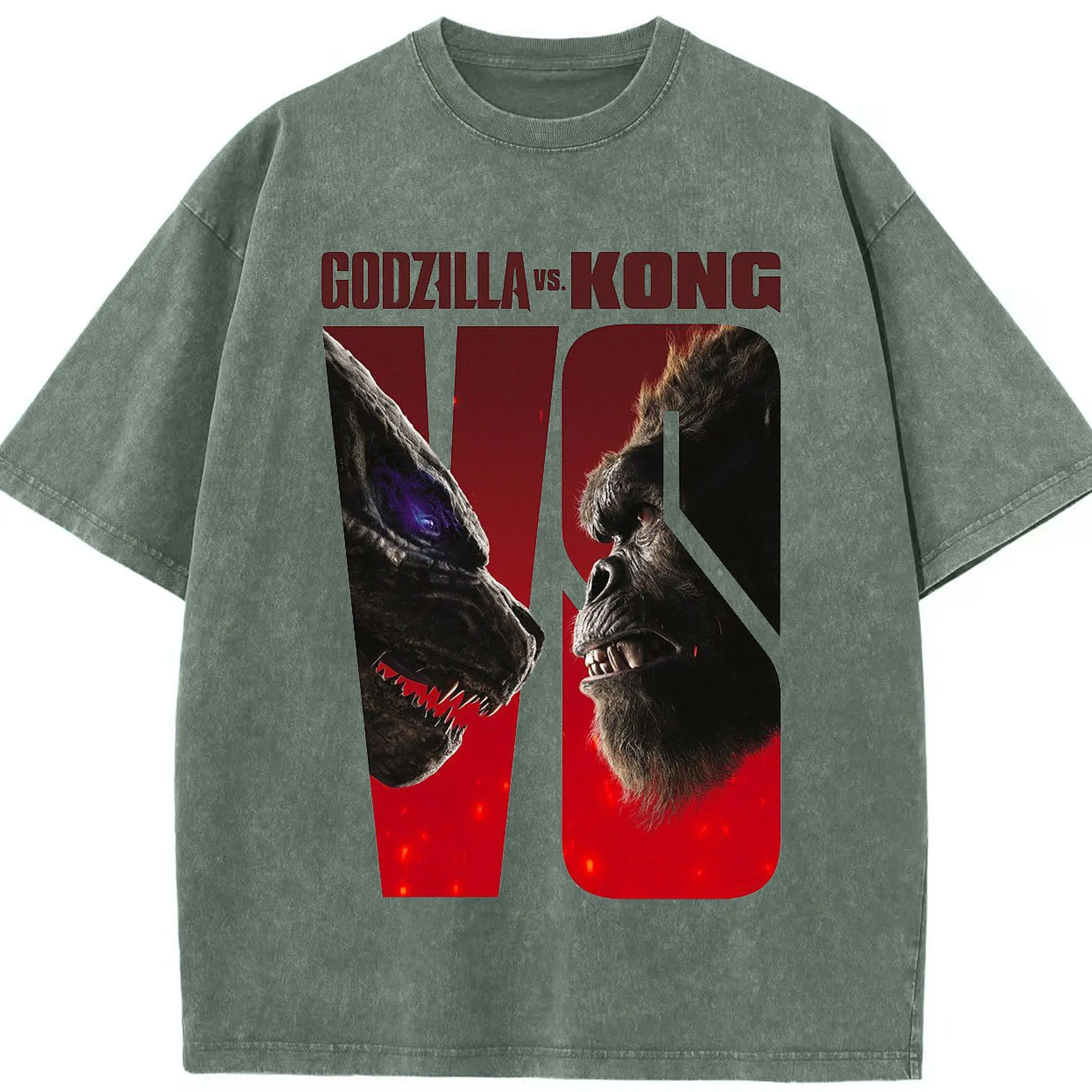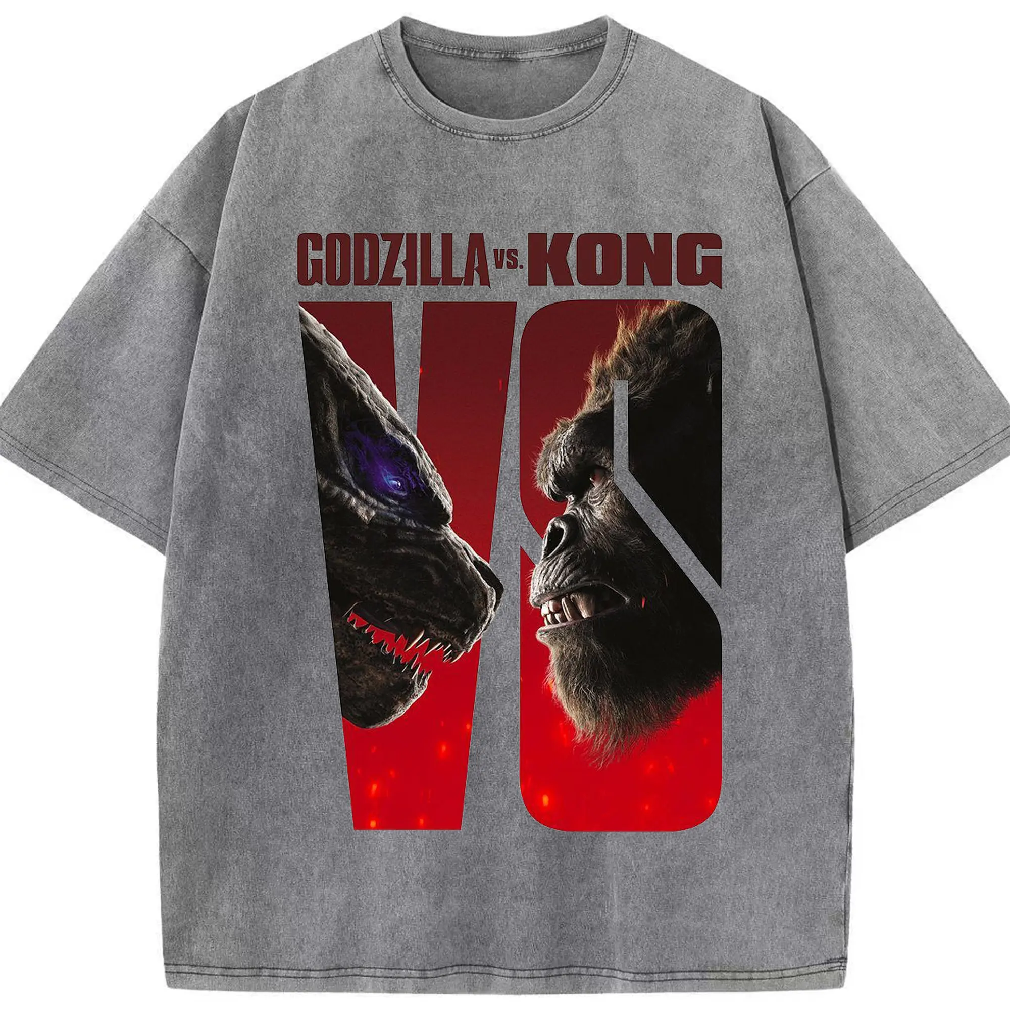 ゴジラ × コング 怪獣映画 怪獣バトル - 綿100% ヴィンテージ風 半袖Tシャツ ・ フロントプリント ・ 柔らか肌触り ・ 通気性 快適 ・ スポーツ カジュアル 外出用
