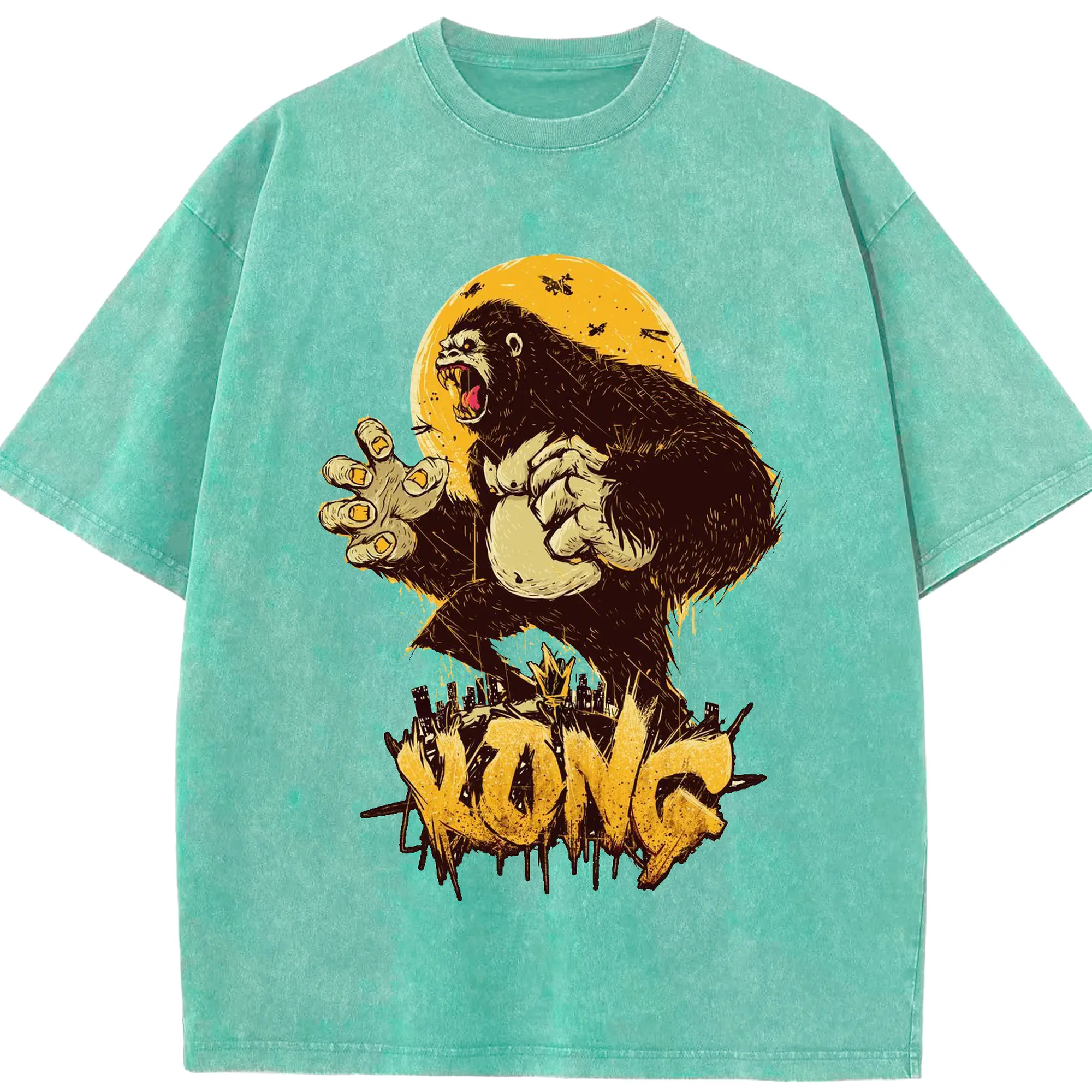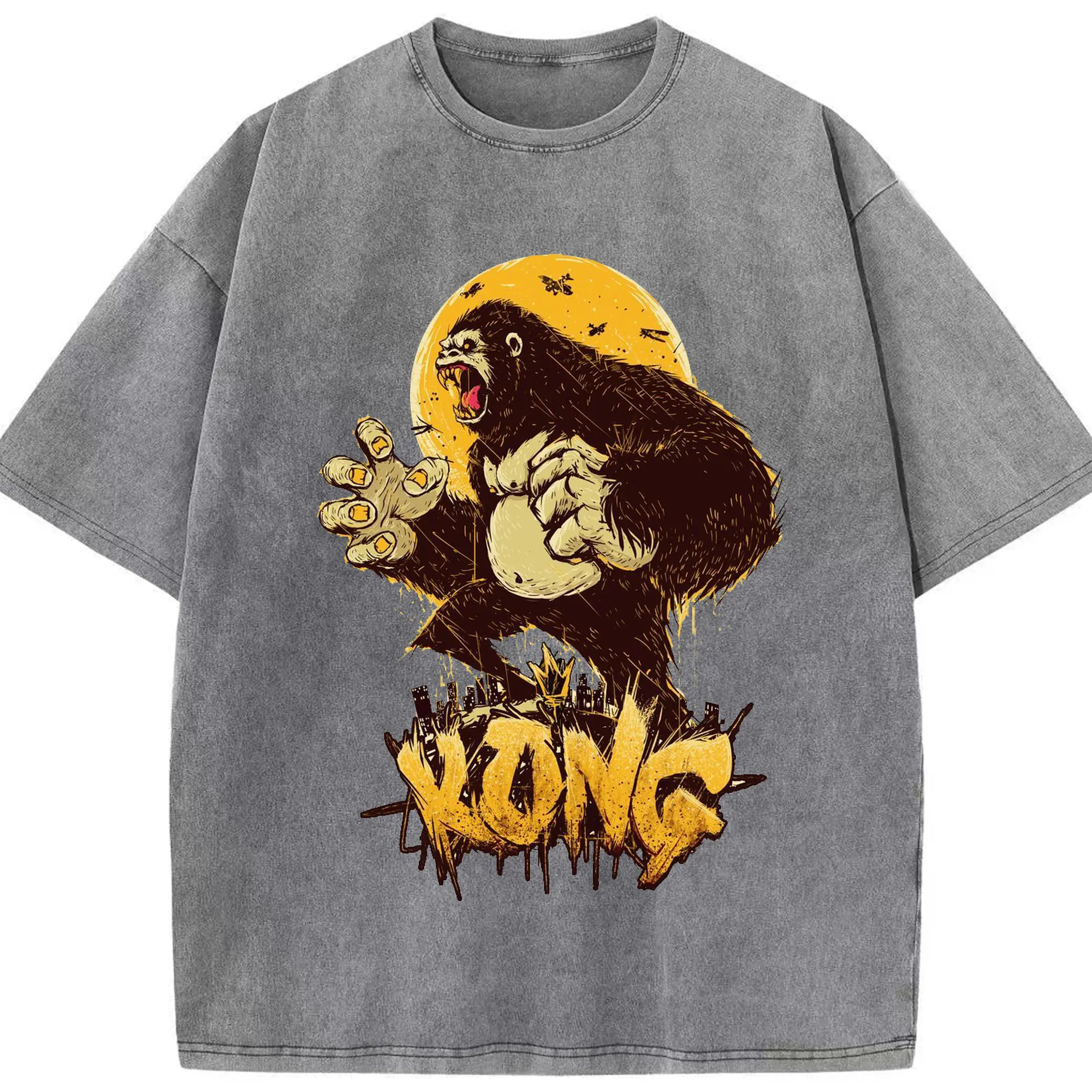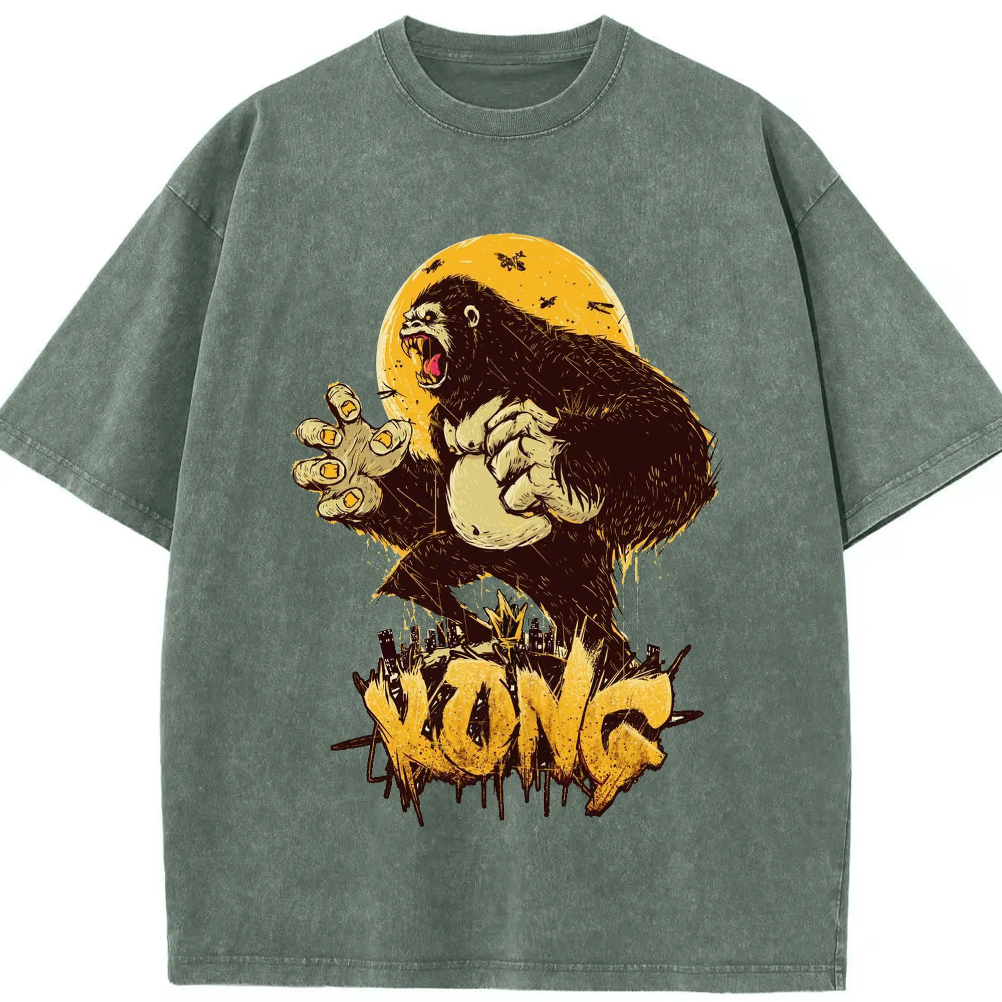 ゴジラ × コング 最強怪獣kong - 綿100% ヴィンテージ風 半袖Tシャツ ・ フロントプリント ・ 柔らか肌触り ・ 通気性 快適 ・ スポーツ カジュアル 外出用