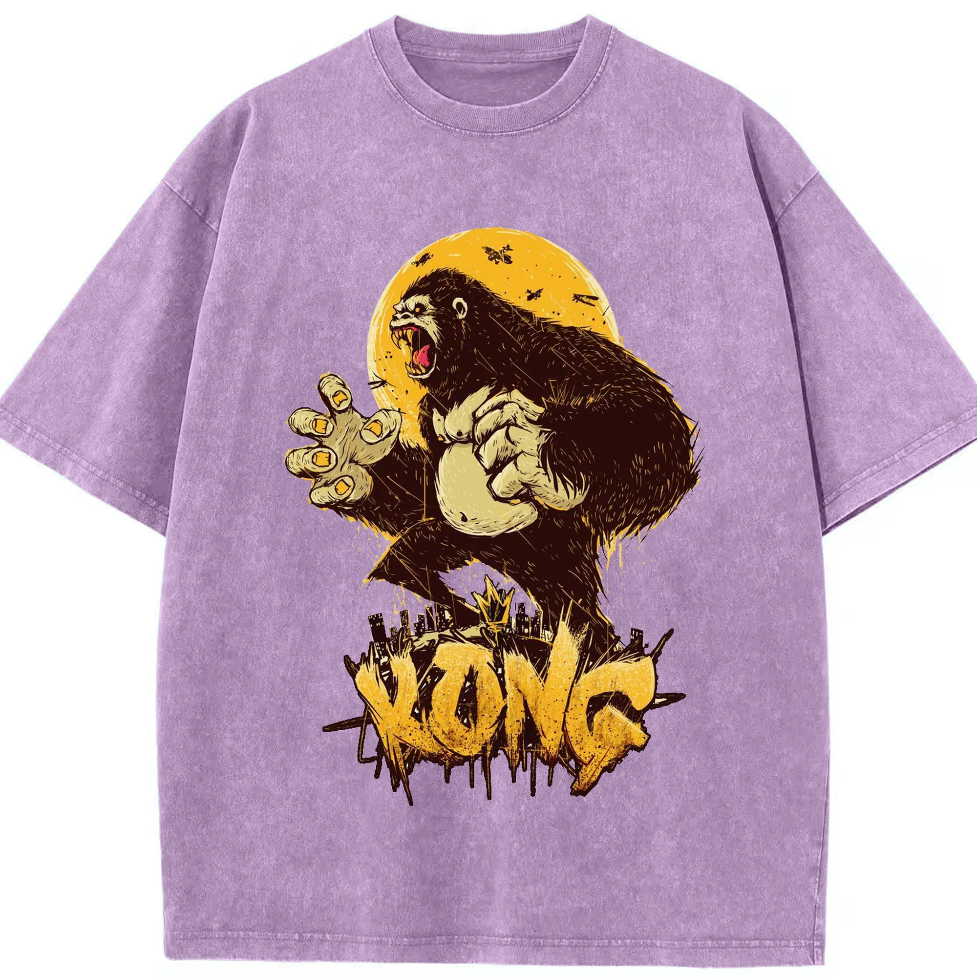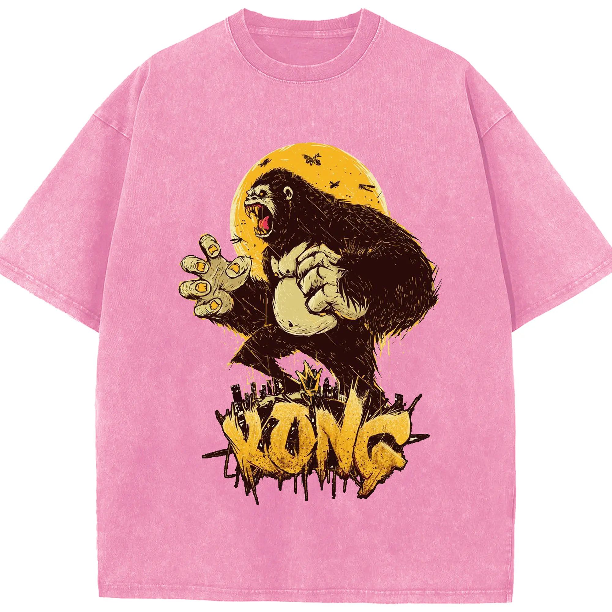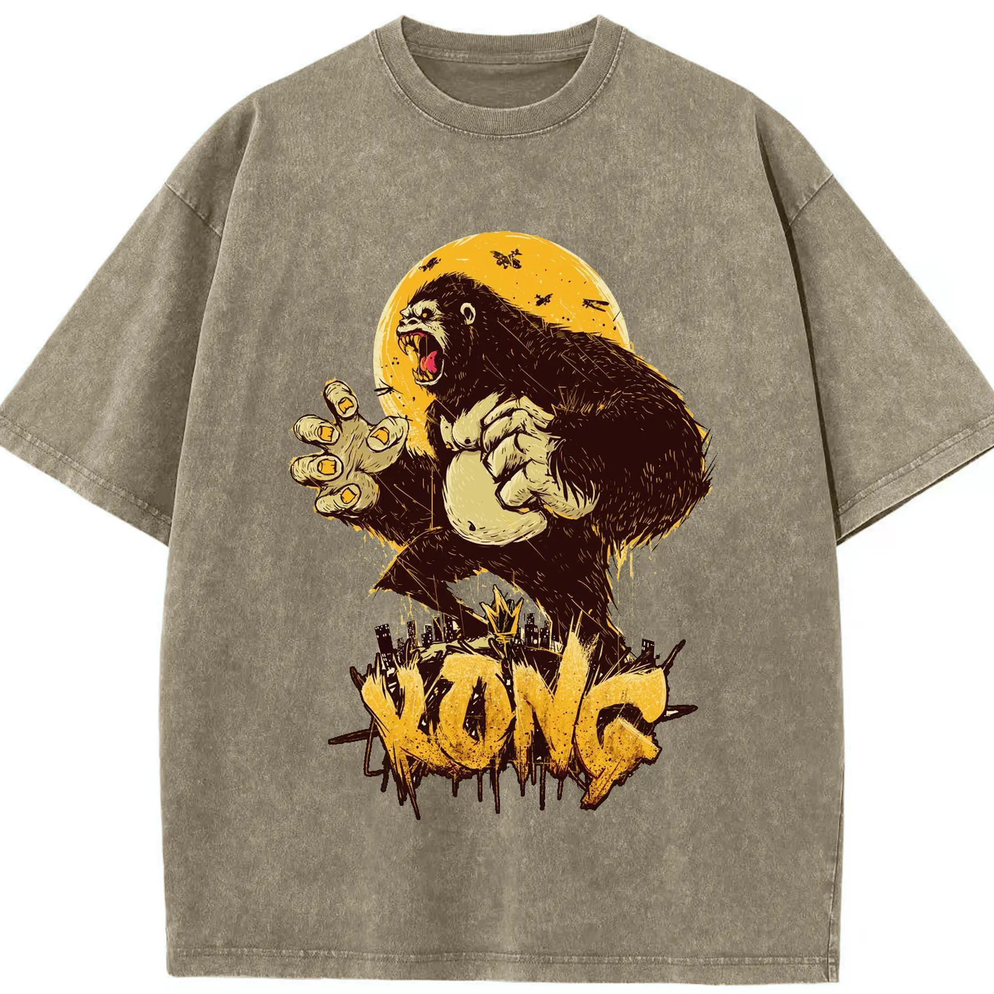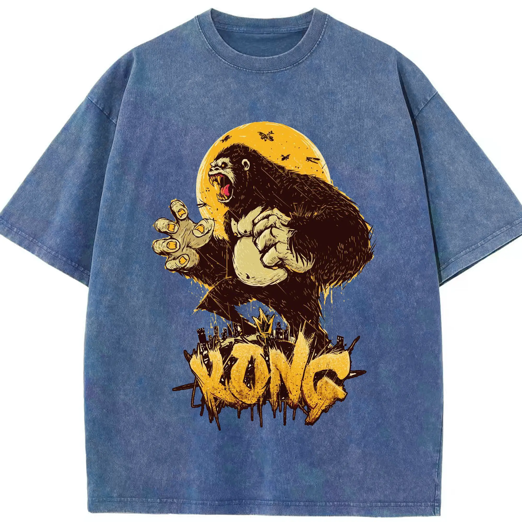 ゴジラ × コング 最強怪獣kong - 綿100% ヴィンテージ風 半袖Tシャツ ・ フロントプリント ・ 柔らか肌触り ・ 通気性 快適 ・ スポーツ カジュアル 外出用