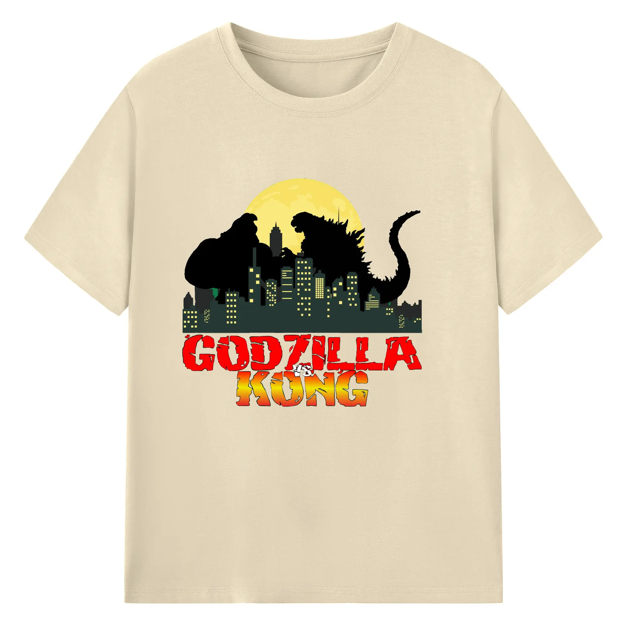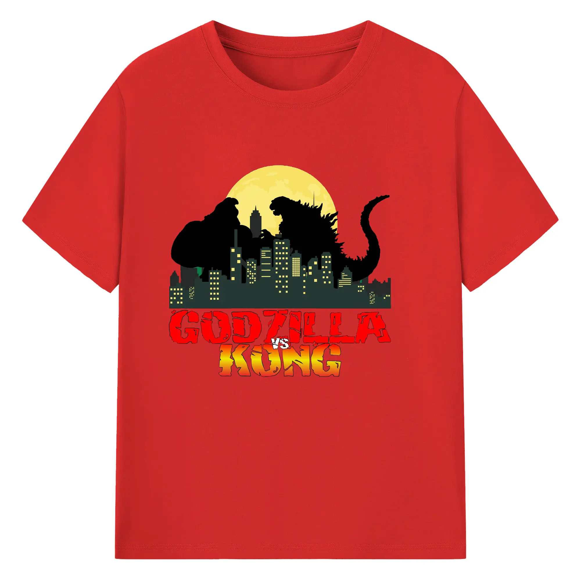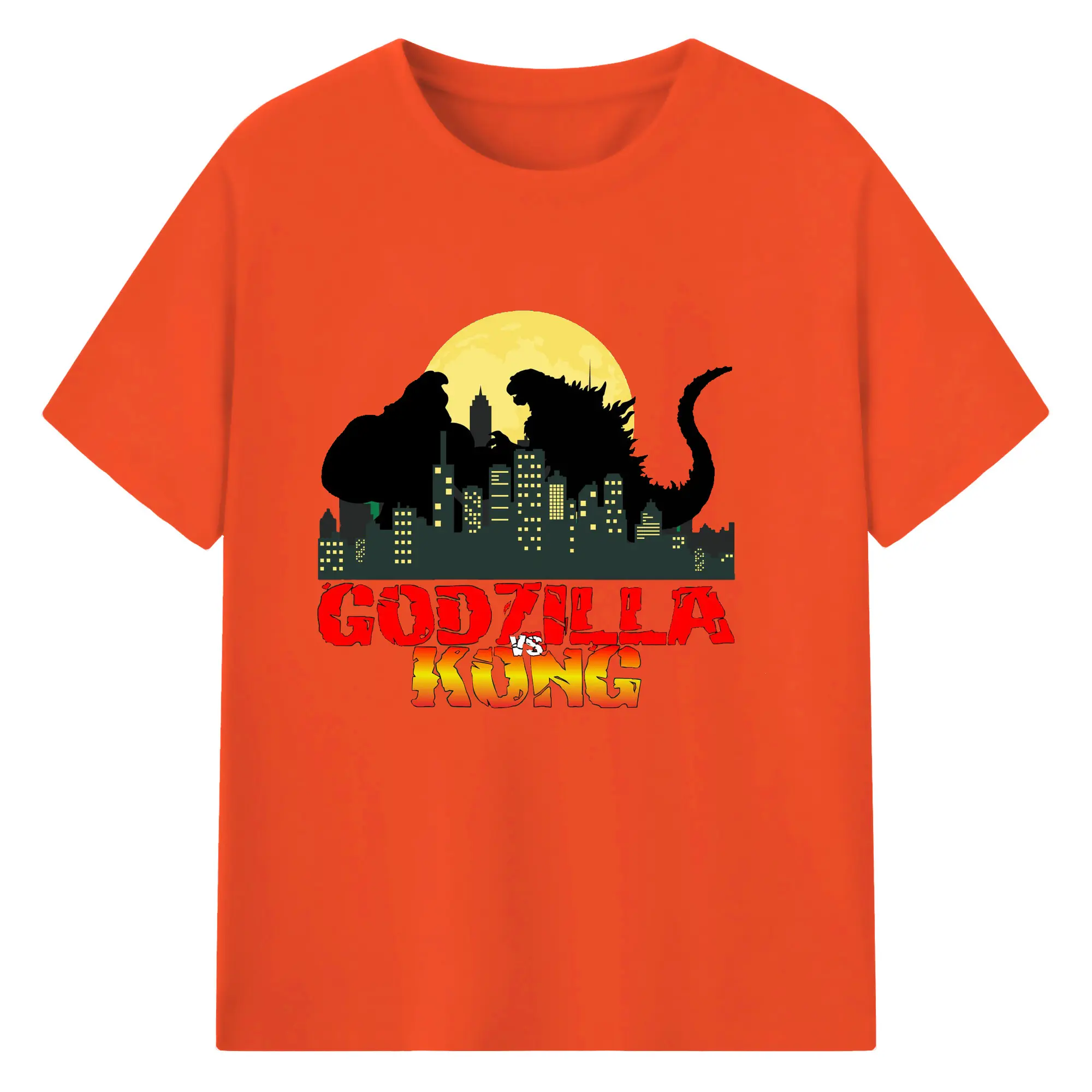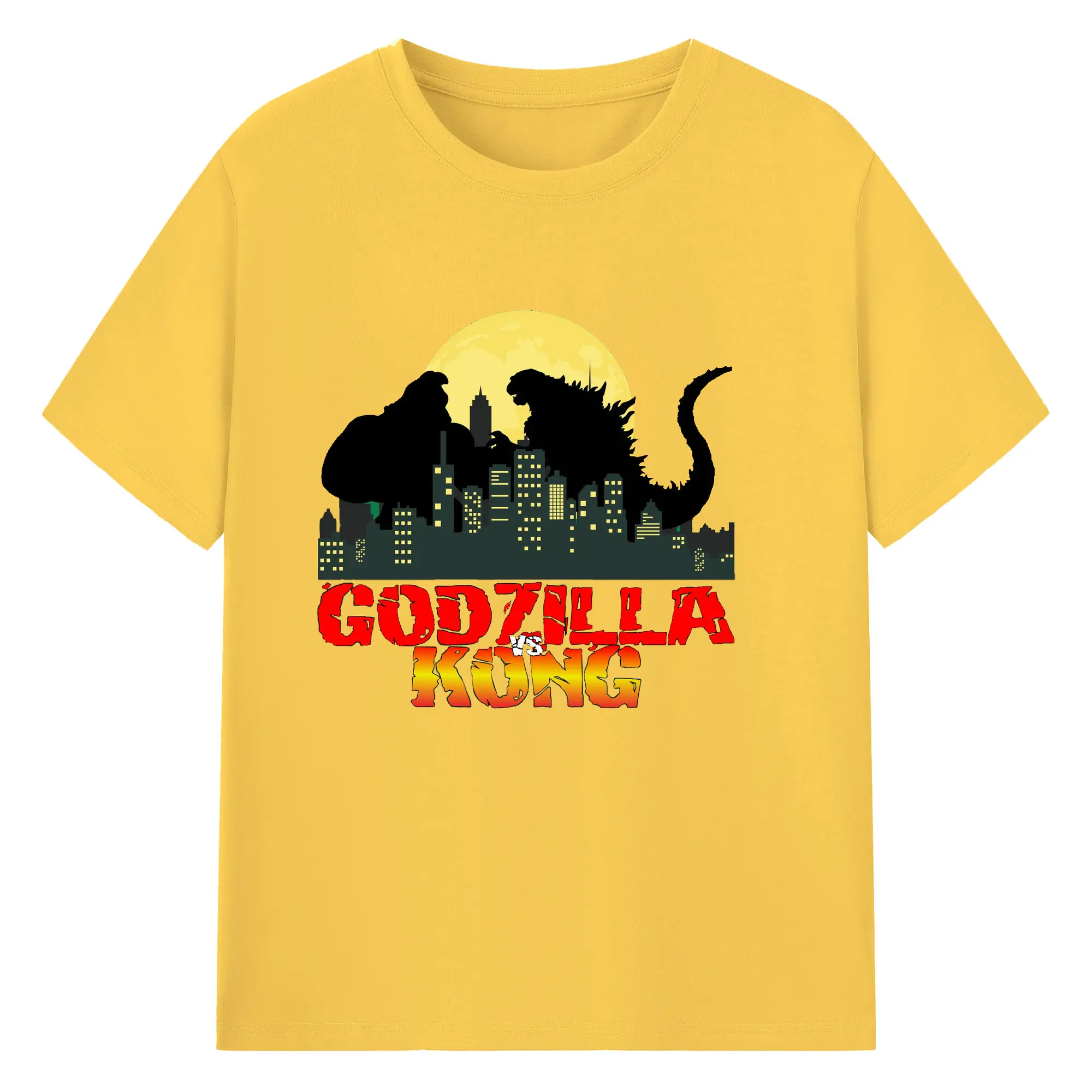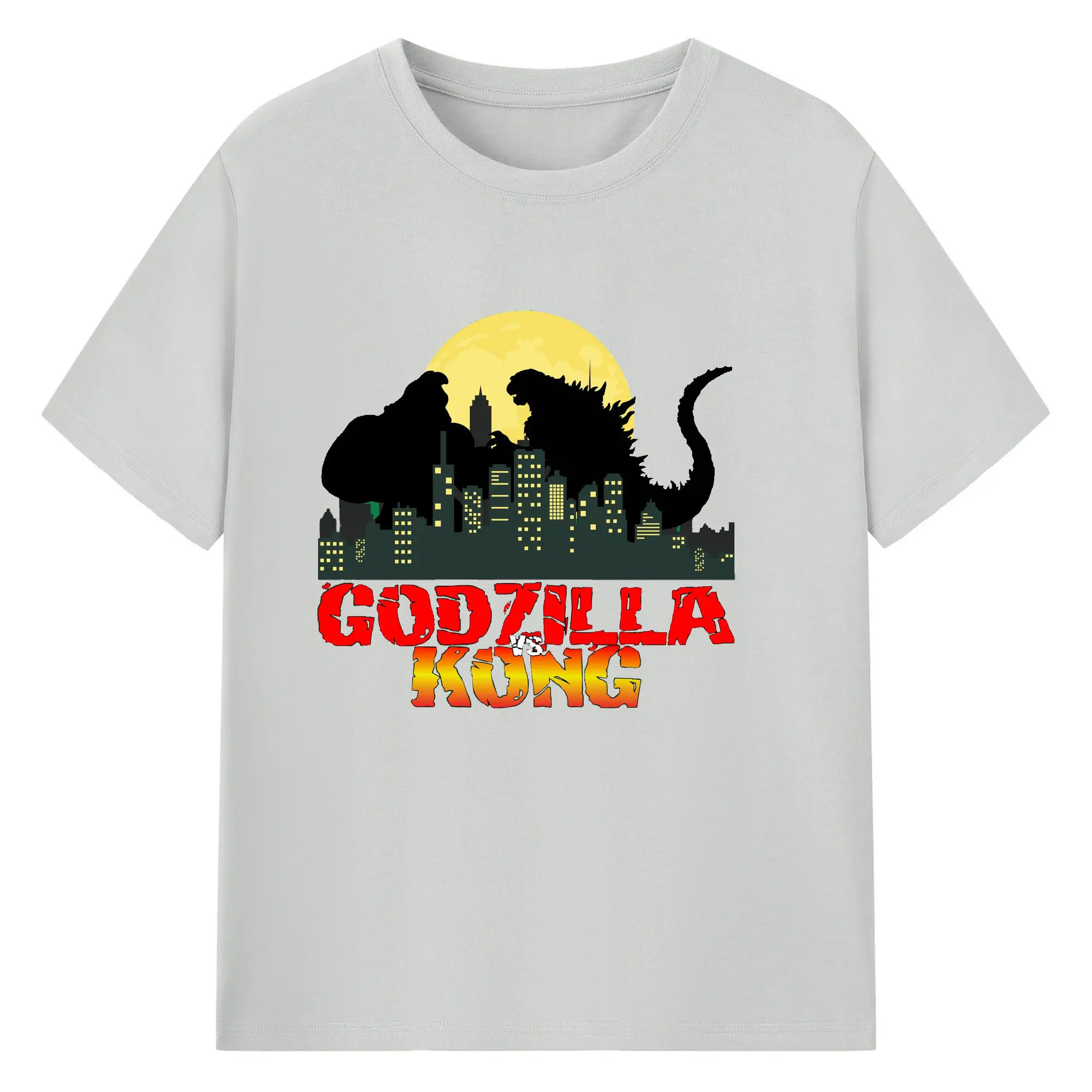 ゴジラ × コング 都市破壊 - 綿100% 半袖Tシャツ ・ フロントプリント ・ 快適 通気性 ・ 日常使い 散歩 スポーツ用