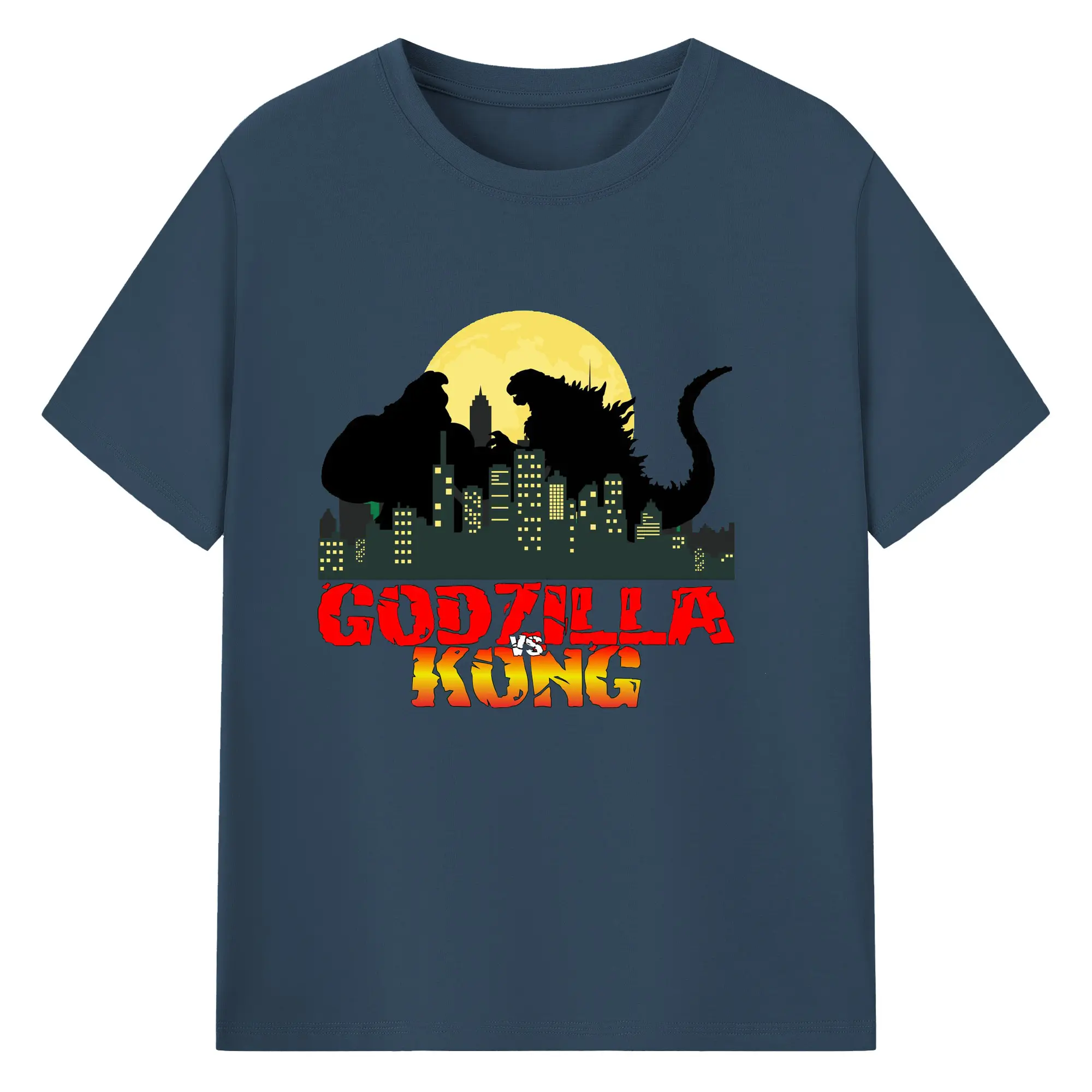 ゴジラ × コング 都市破壊 - 綿100% 半袖Tシャツ ・ フロントプリント ・ 快適 通気性 ・ 日常使い 散歩 スポーツ用