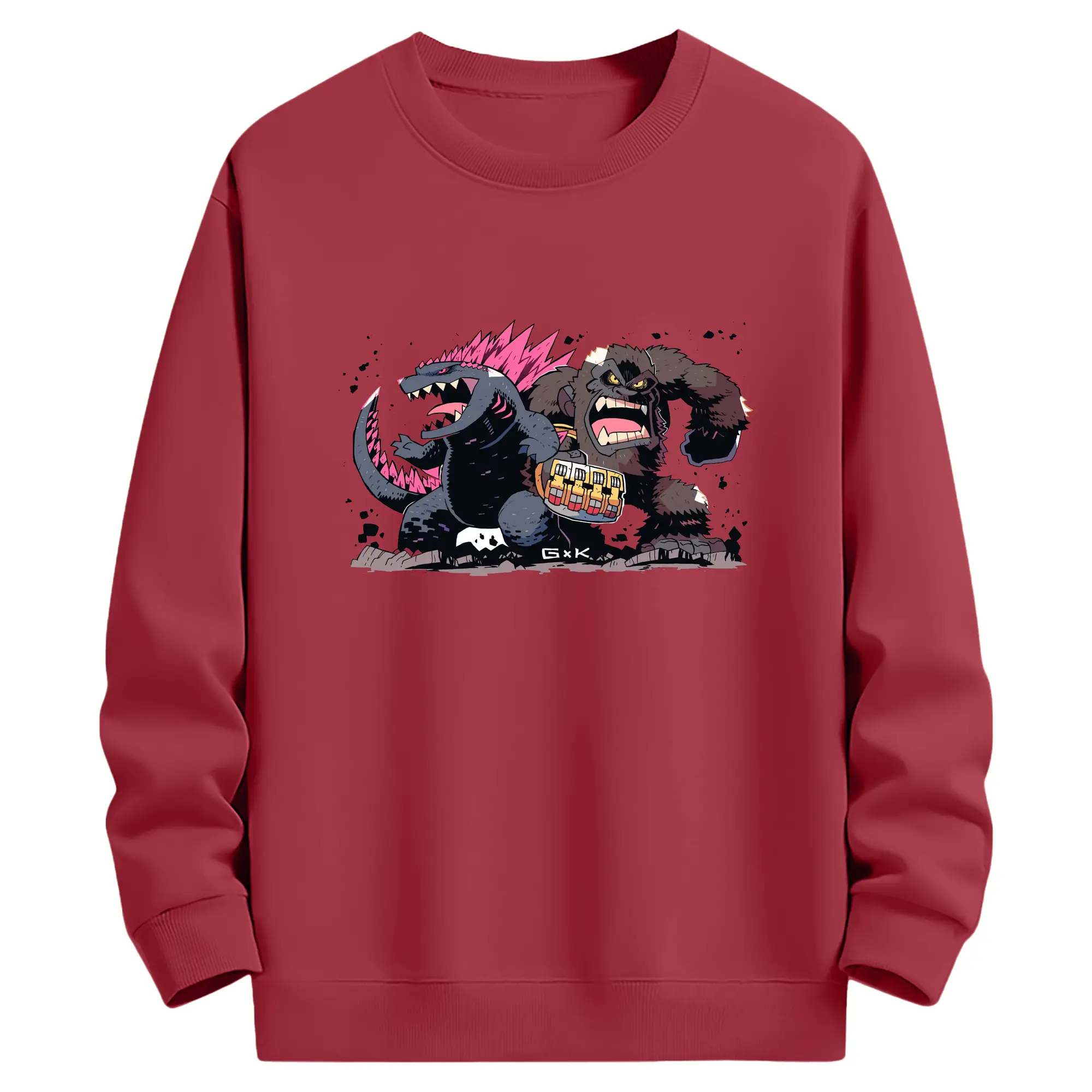 ゴジラ × コング 都市破壊 - 高品質 クルーネック スウェット ・ コットン59% ポリエステル41% ・ ユニセックス 長袖 トレーナー ・ カジュアル デイリー スポーツ 散歩用