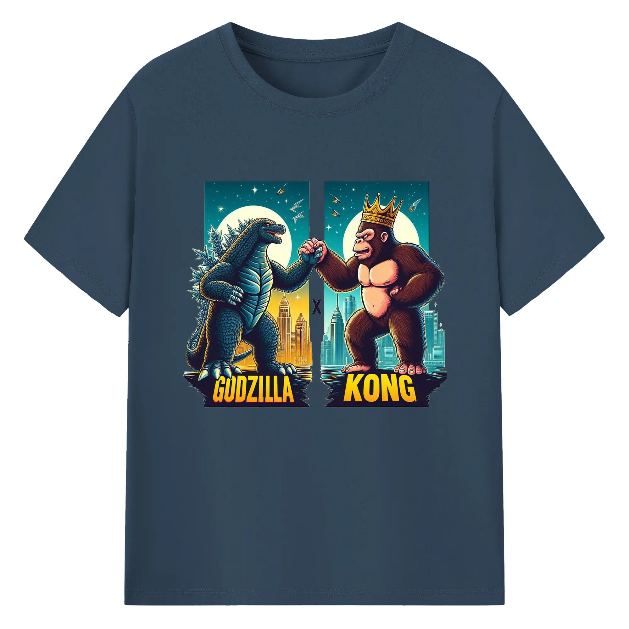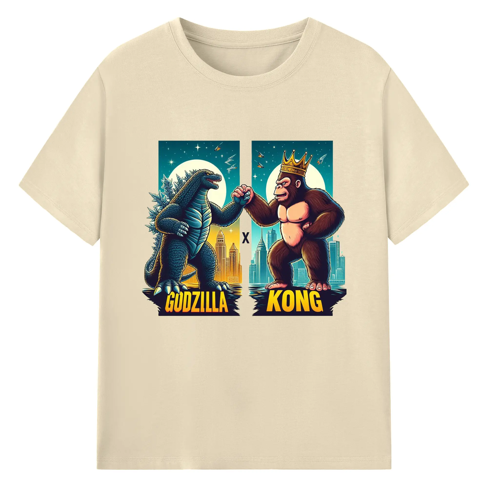 ゴジラ × コング - 綿100% ヴィンテージ風 半袖Tシャツ ・ フロントプリント ・ 柔らか肌触り ・ 通気性 快適 ・ スポーツ カジュアル 外出用