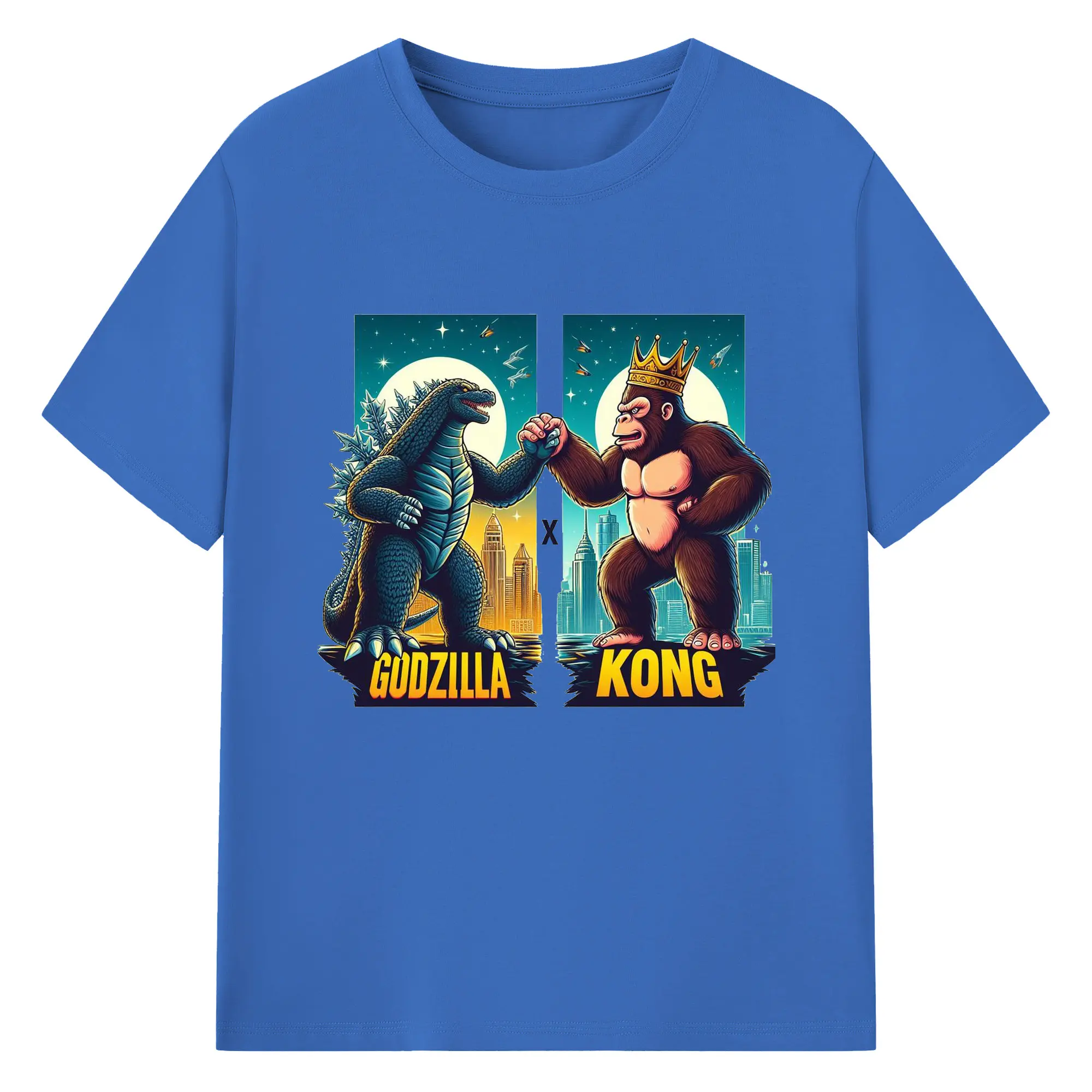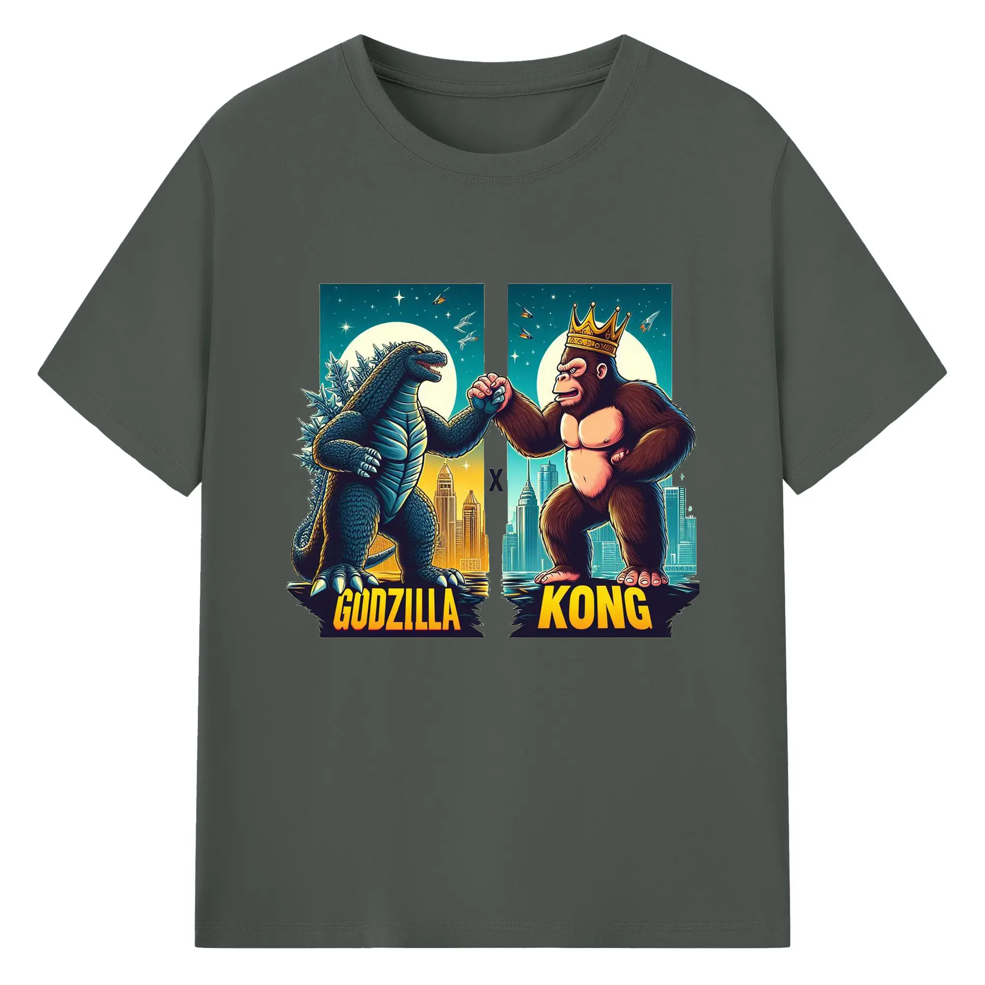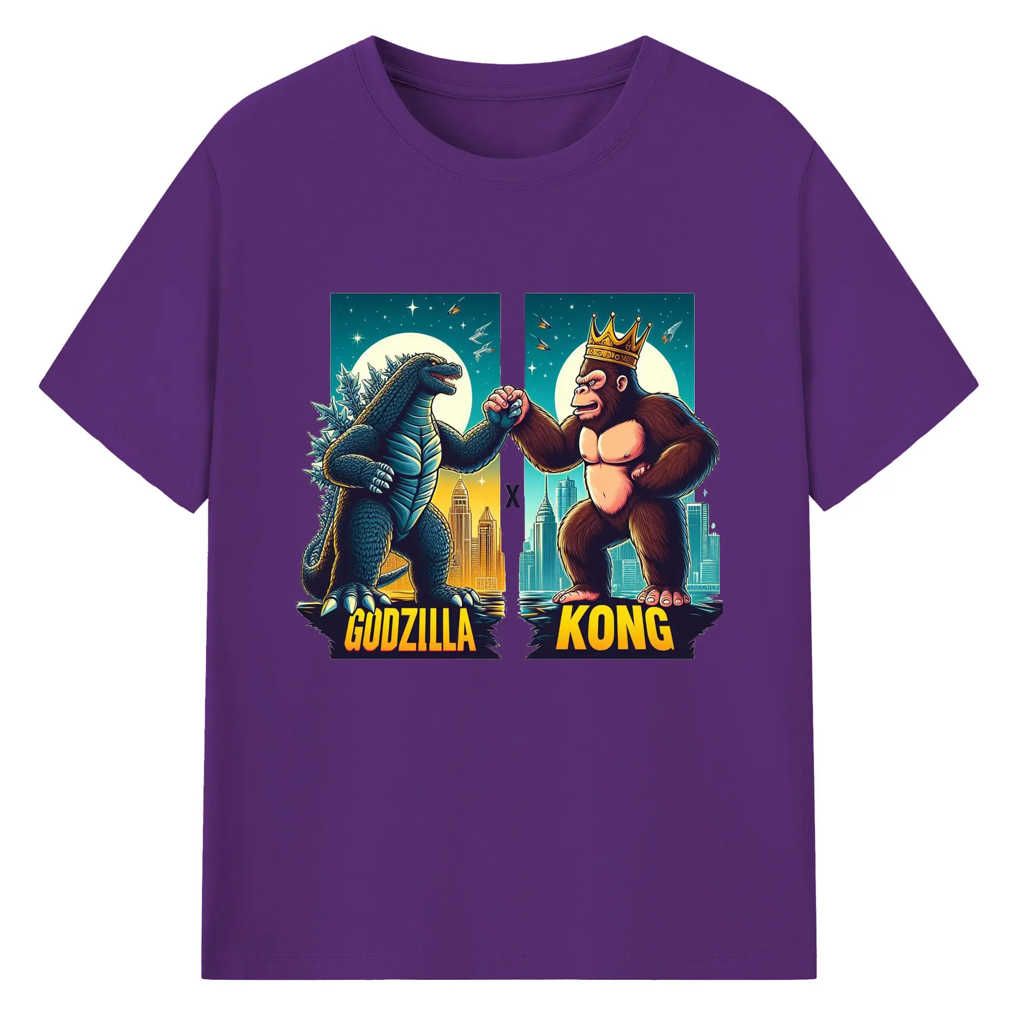 ゴジラ × コング - 綿100% 半袖Tシャツ ・ フロントプリント ・ 快適 通気性 ・ 日常使い 散歩 スポーツ用