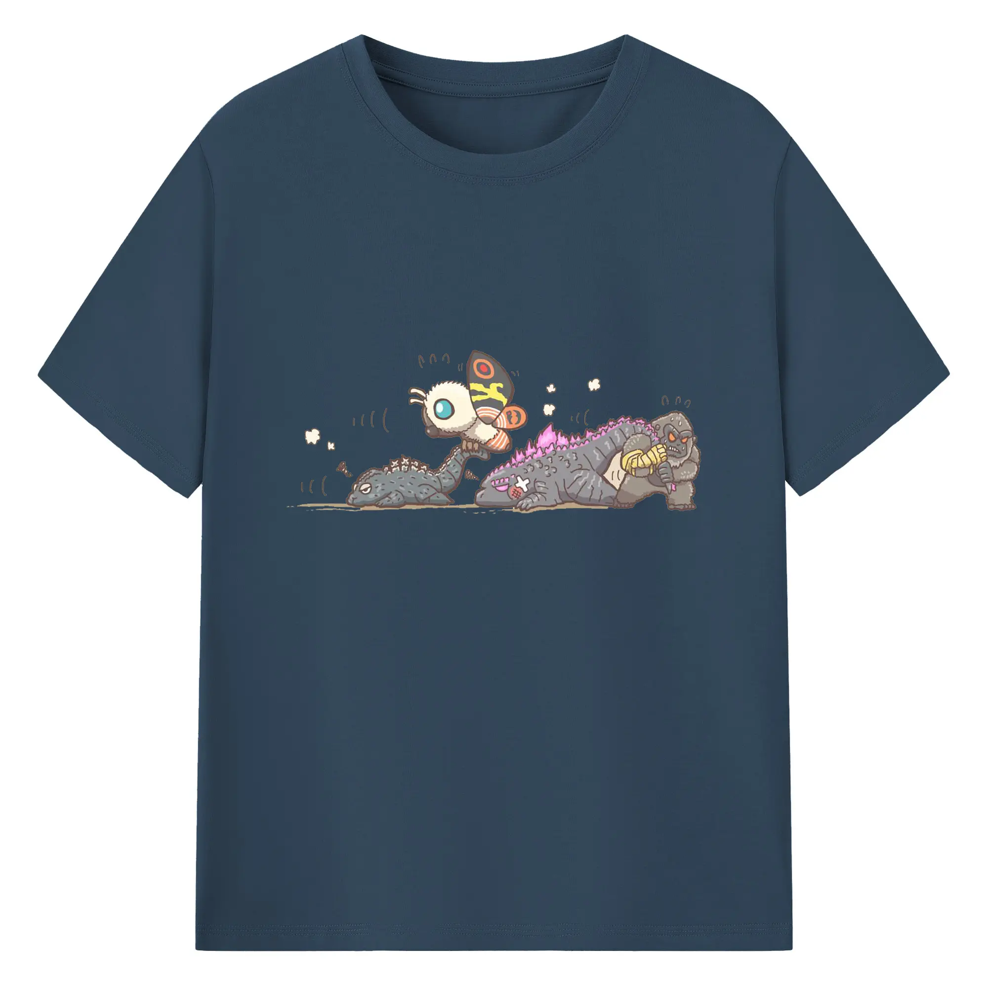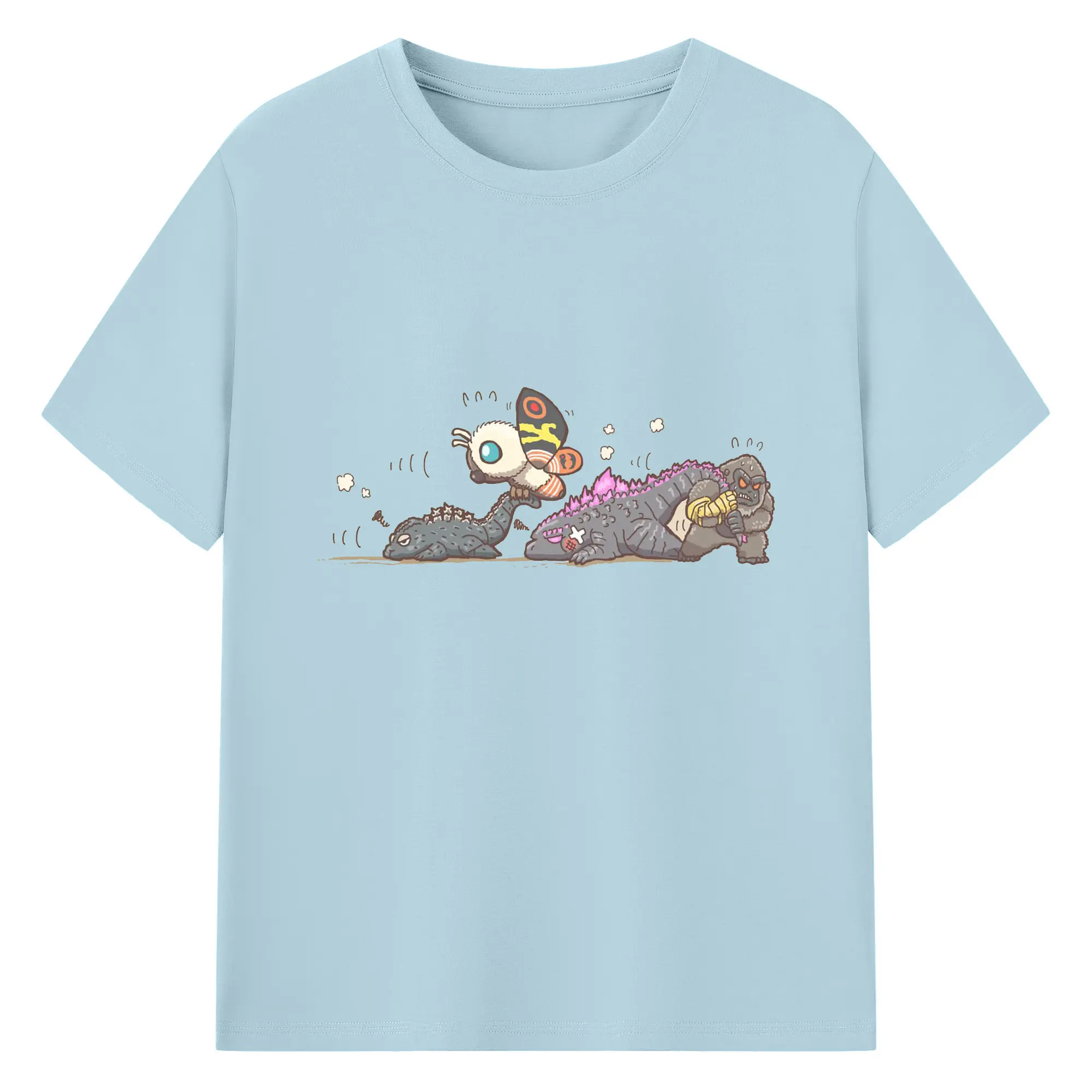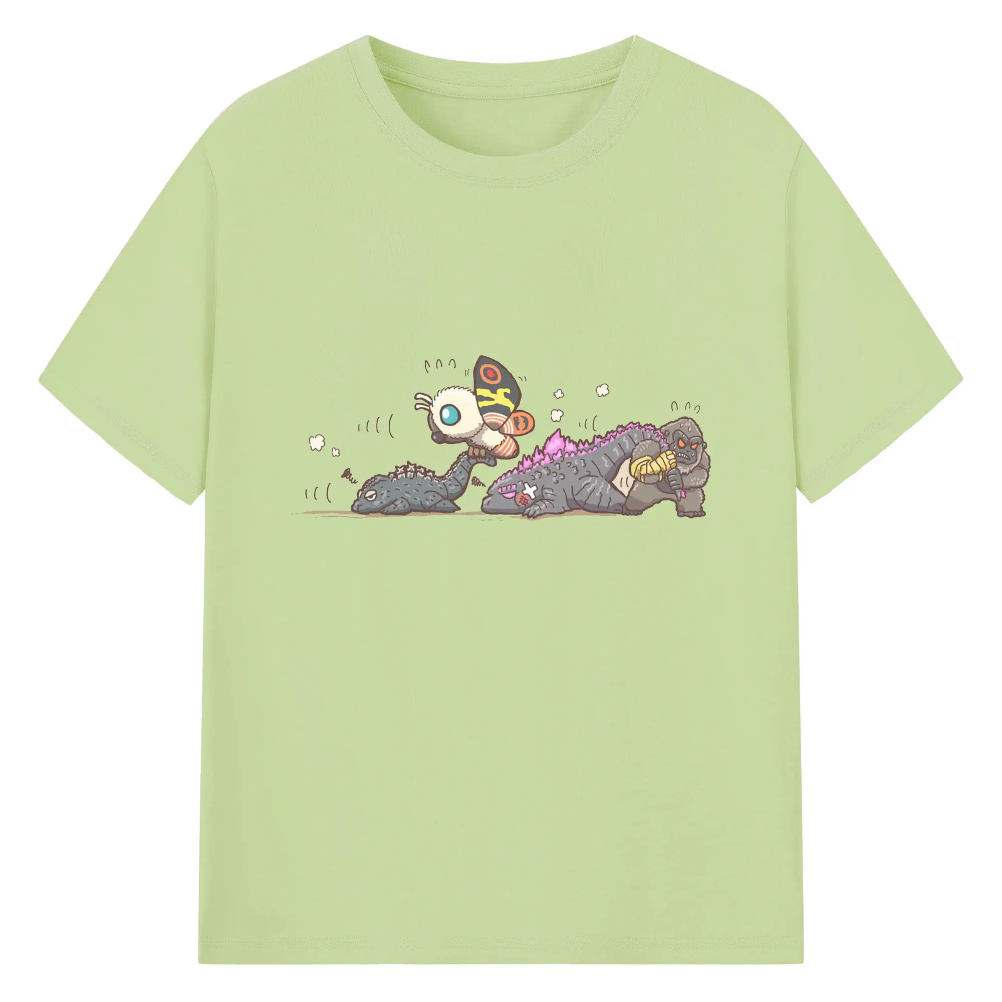 ゴジラの食事タイム - 綿100% 半袖Tシャツ ・ フロントプリント ・ 快適 通気性 ・ 日常使い 散歩 スポーツ用