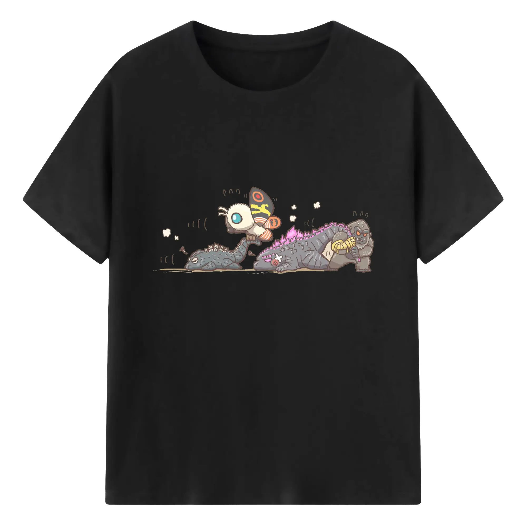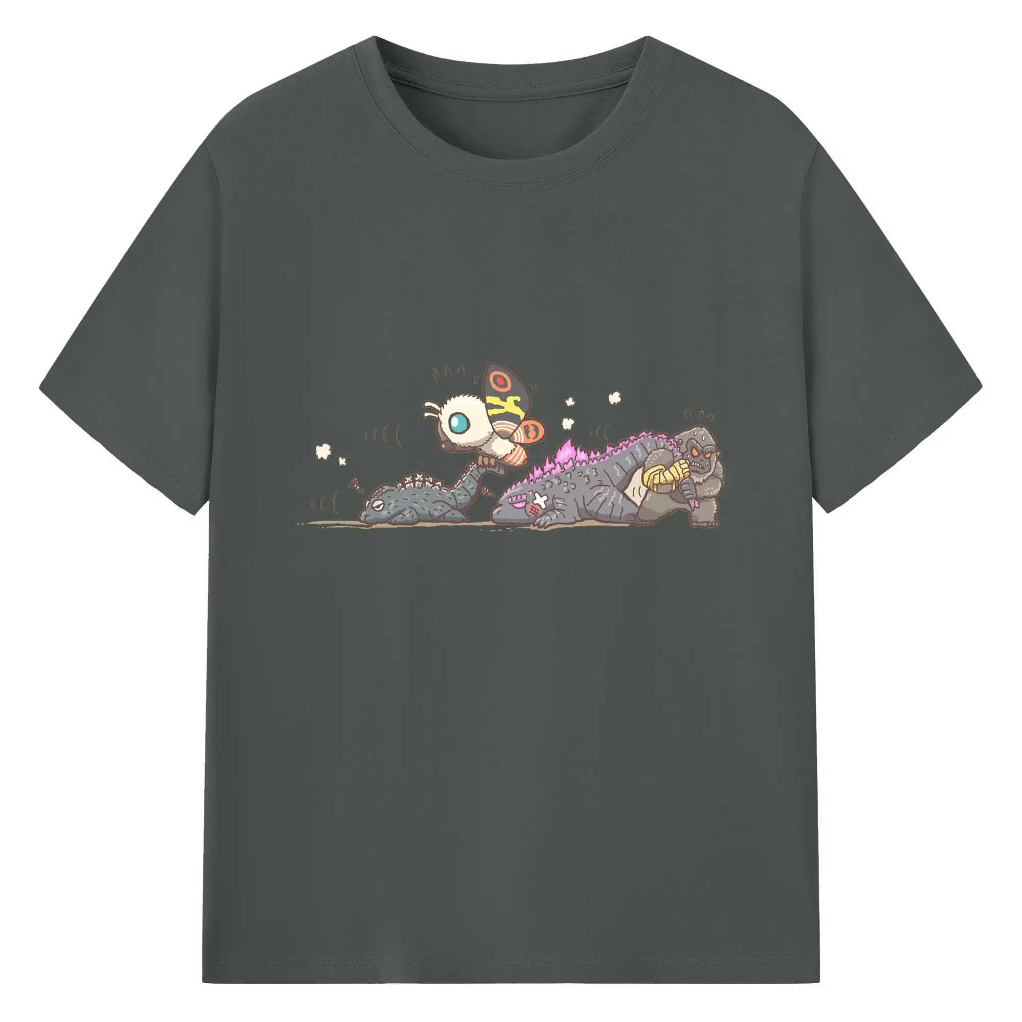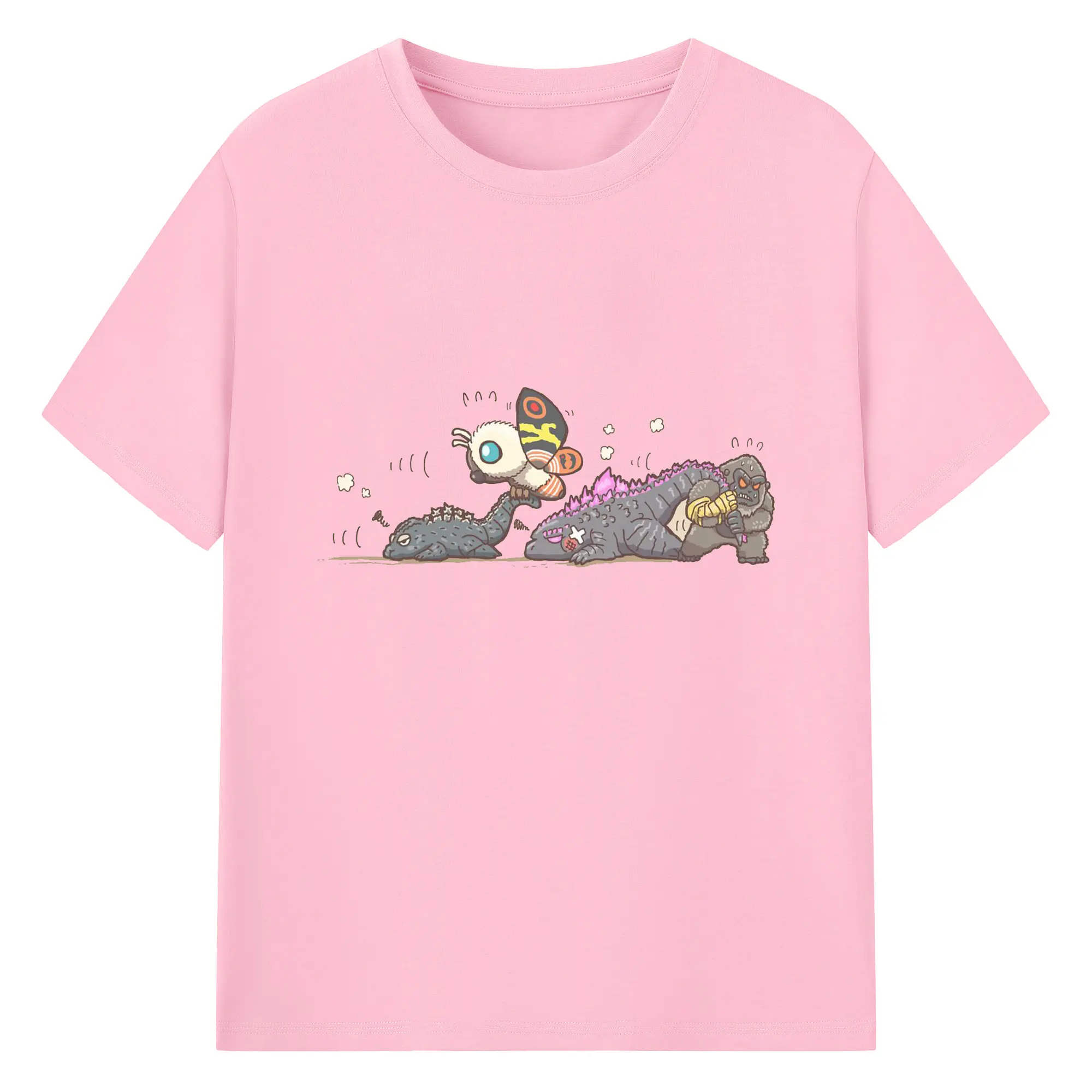 ゴジラの食事タイム - 綿100% 半袖Tシャツ ・ フロントプリント ・ 快適 通気性 ・ 日常使い 散歩 スポーツ用