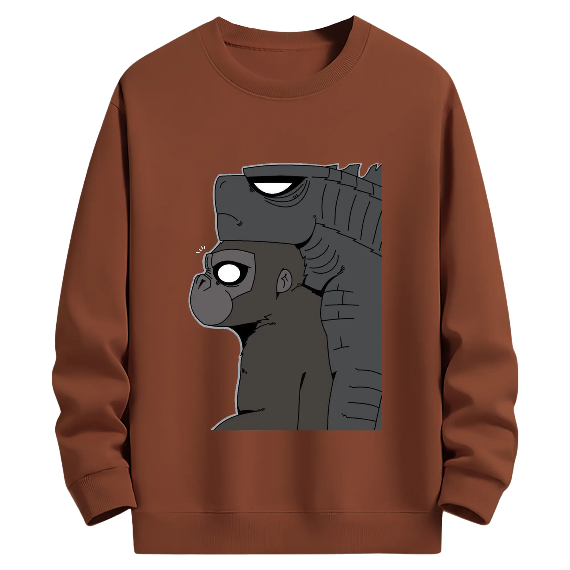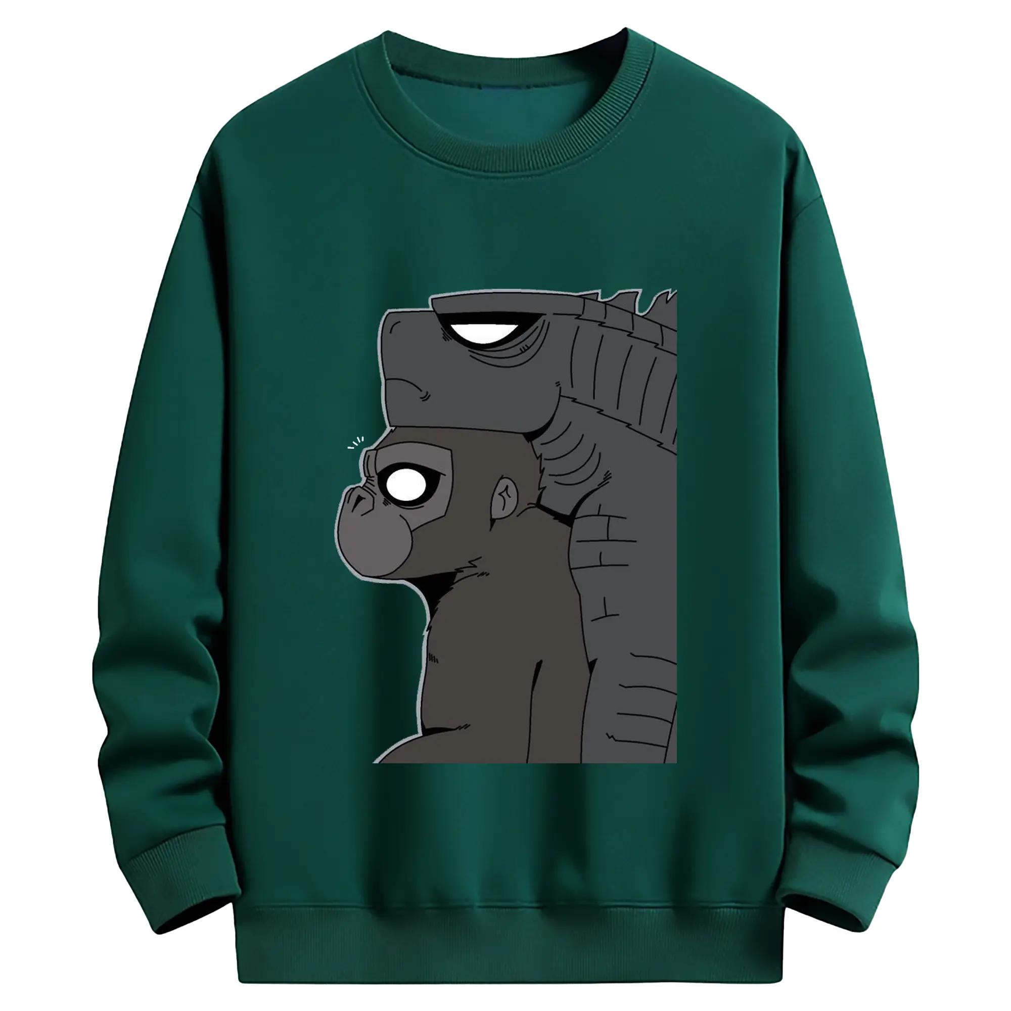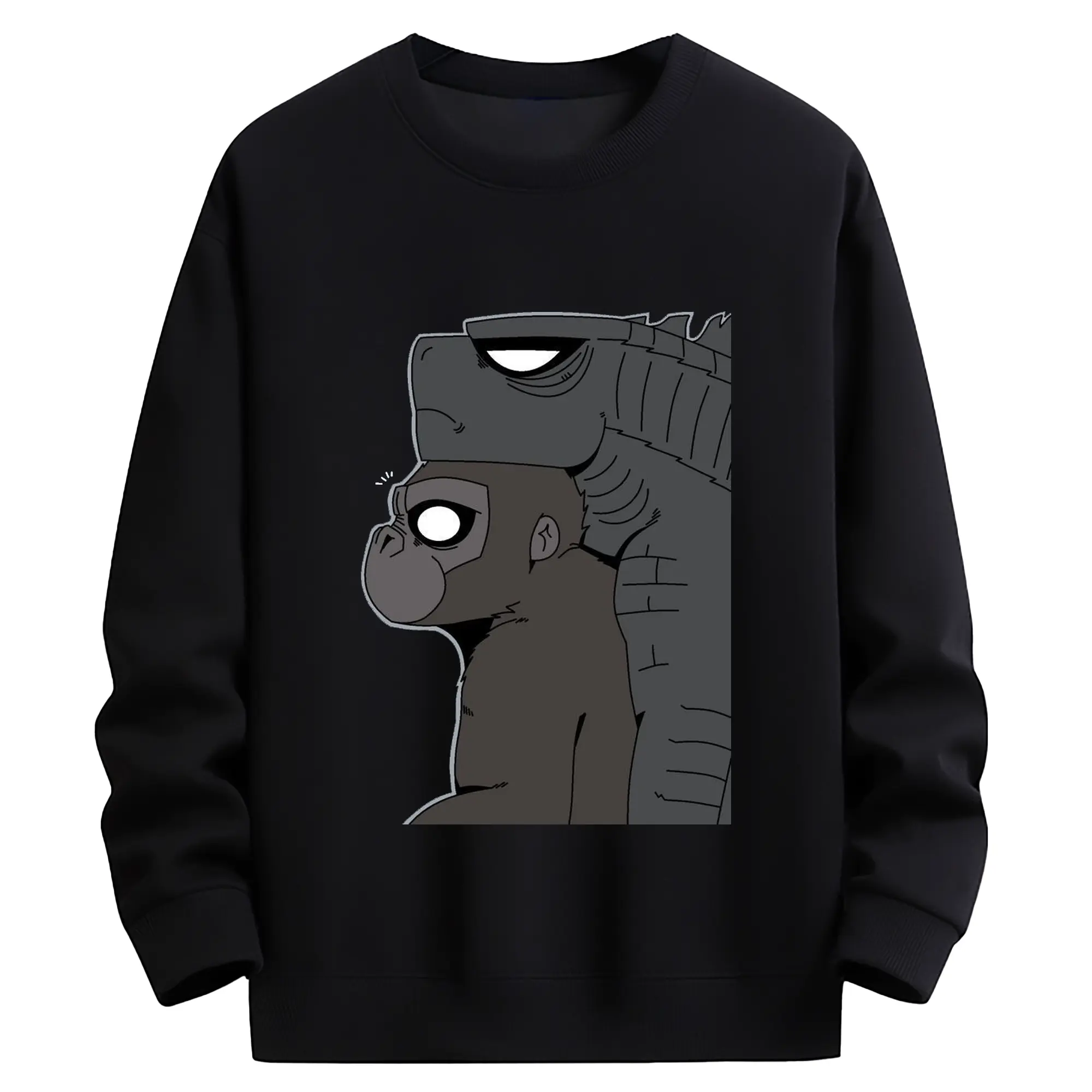 ゴジラ × コング - 高品質 クルーネック スウェット ・ コットン59% ポリエステル41% ・ ユニセックス 長袖 トレーナー ・ カジュアル デイリー スポーツ 散歩用
