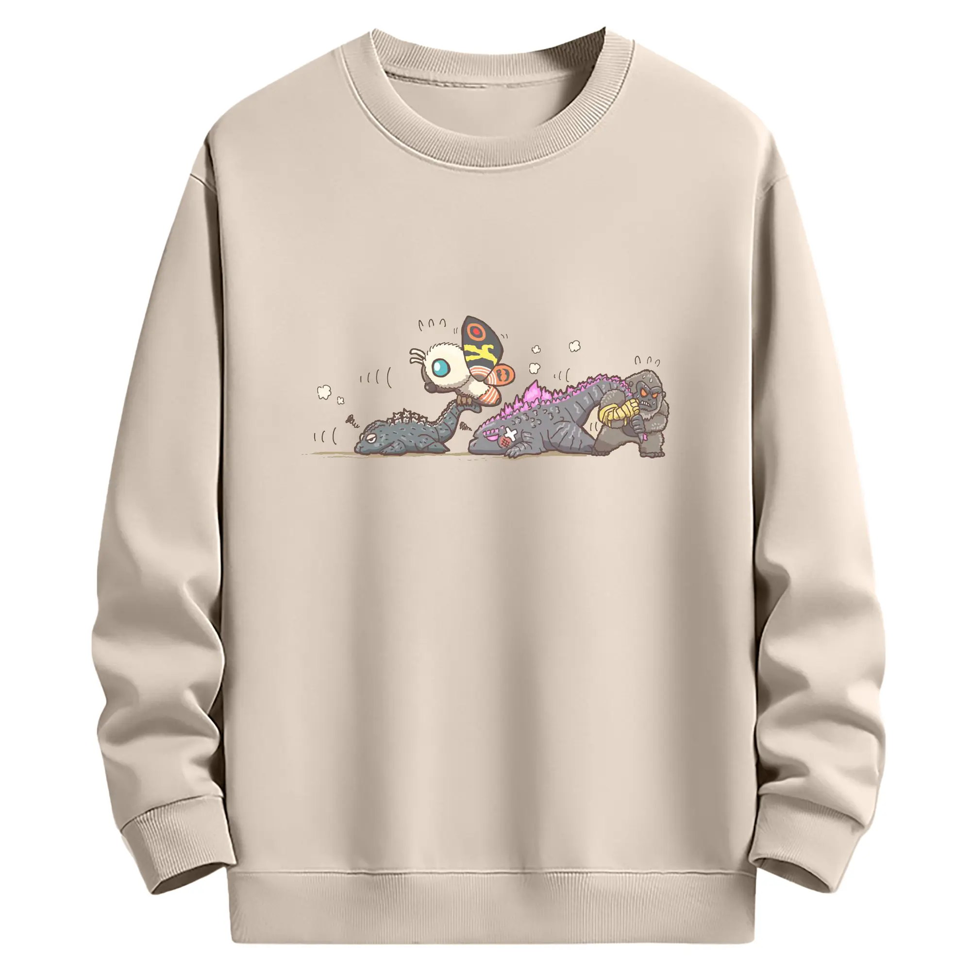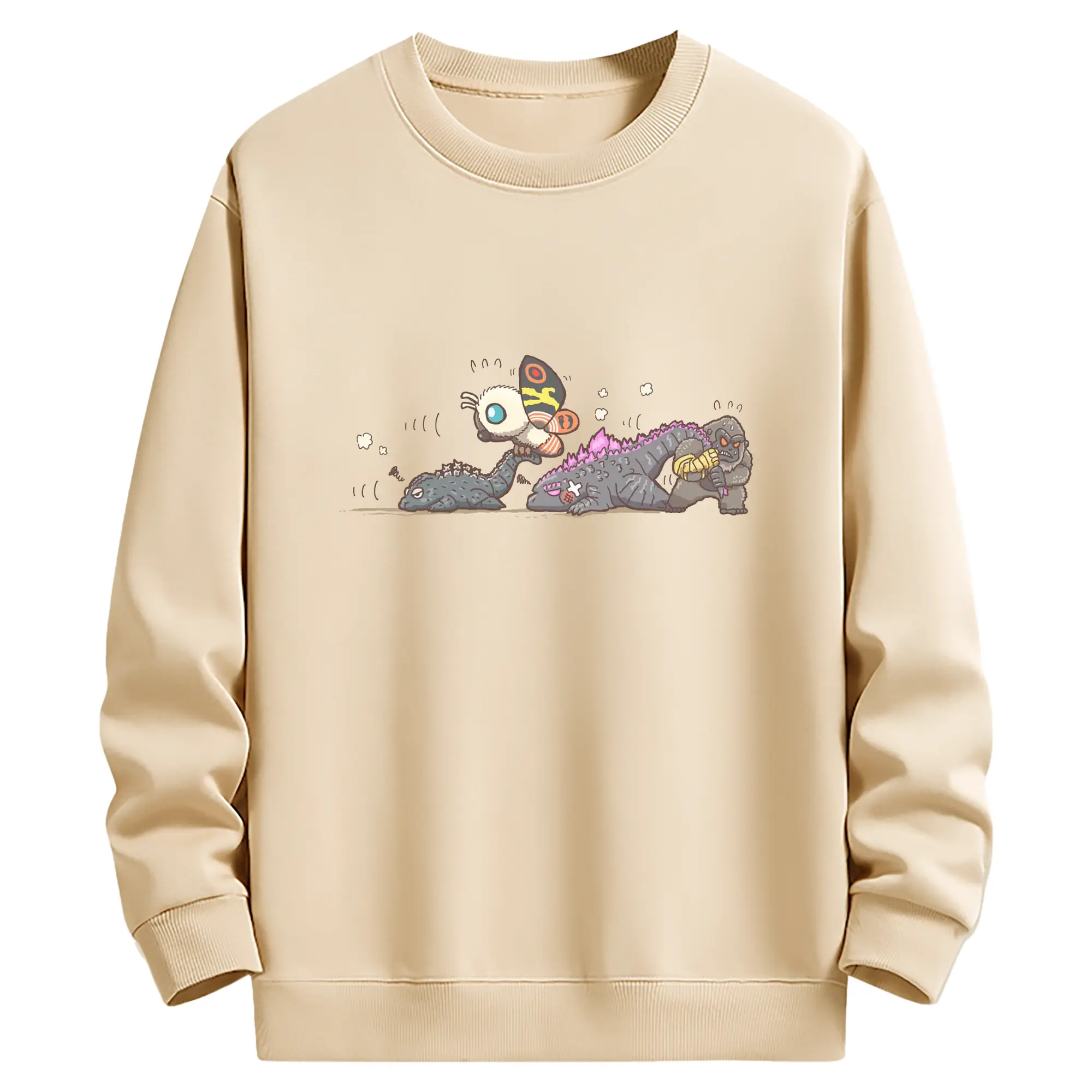 ゴジラ × コング モンスター - 高品質 クルーネック スウェット ・ コットン59% ポリエステル41% ・ ユニセックス 長袖 トレーナー ・ カジュアル デイリー スポーツ 散歩用