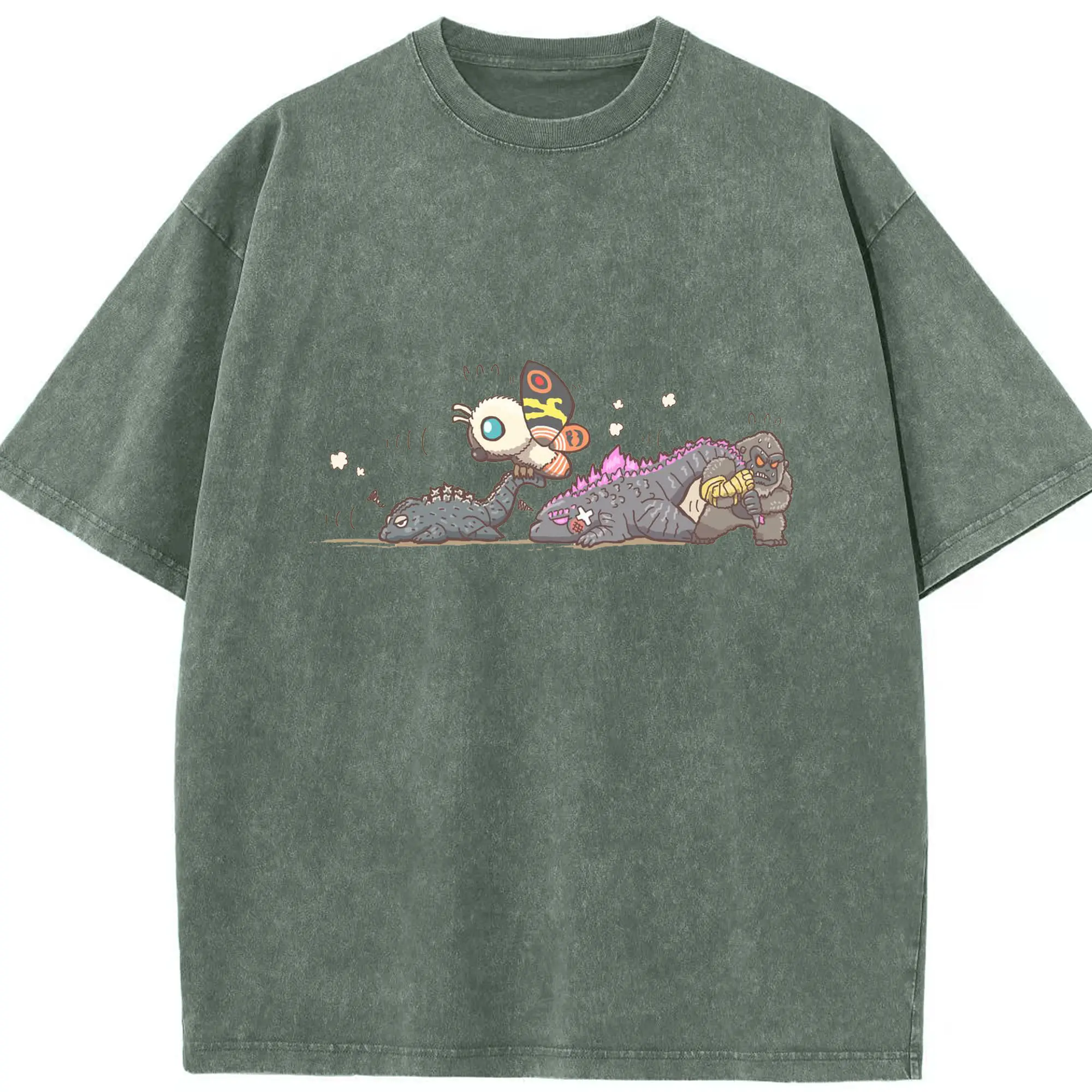 ゴジラ × コング - 綿100% ヴィンテージ風 半袖Tシャツ ・ フロントプリント ・ 柔らか肌触り ・ 通気性 快適 ・ スポーツ カジュアル 外出用
