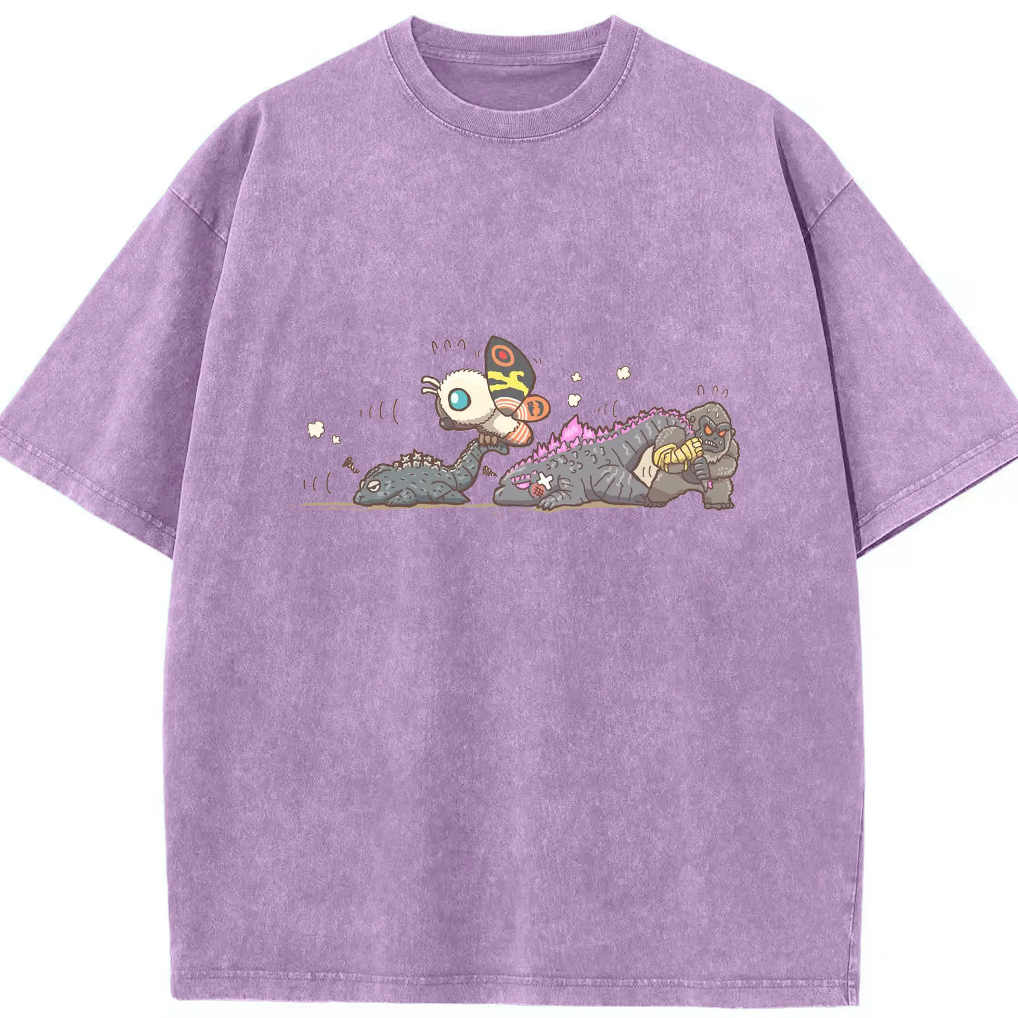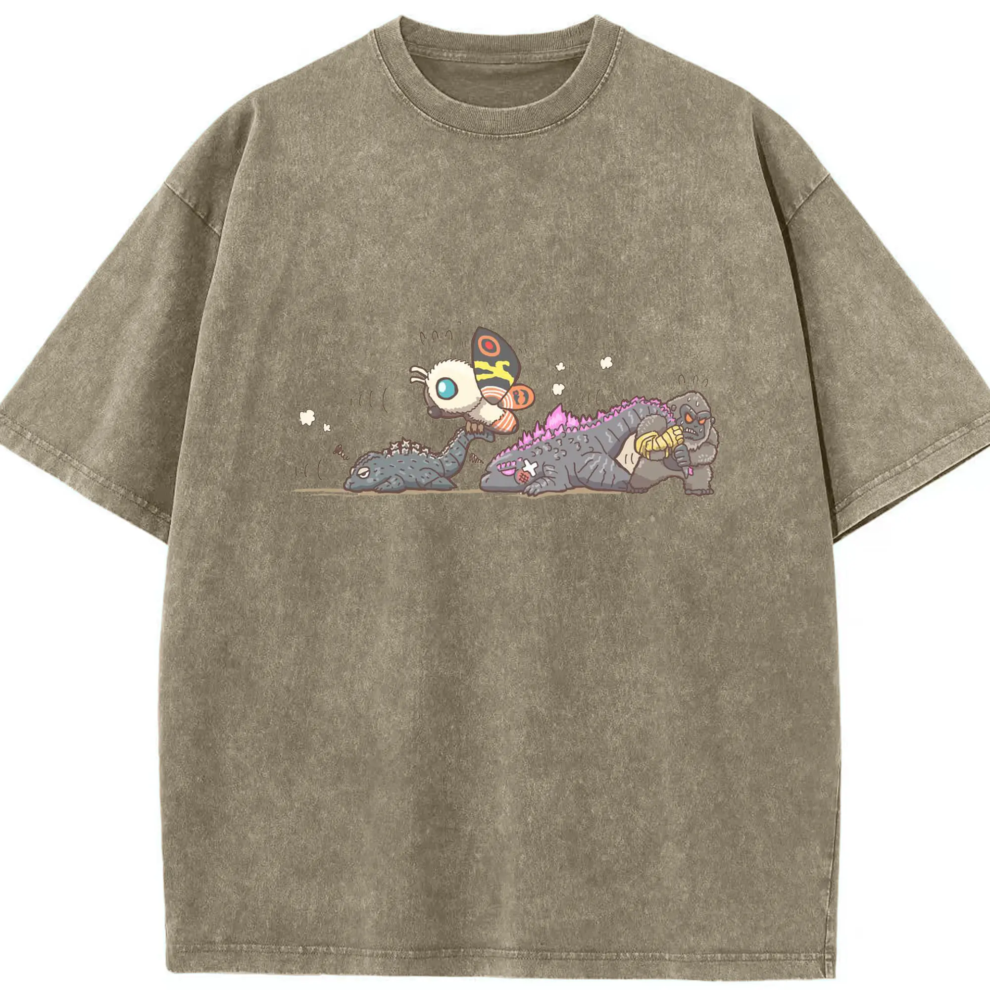 ゴジラ ゴジラ名シーン - 綿100% ヴィンテージ風 半袖Tシャツ ・ フロントプリント ・ 柔らか肌触り ・ 通気性 快適 ・ スポーツ カジュアル 外出用
