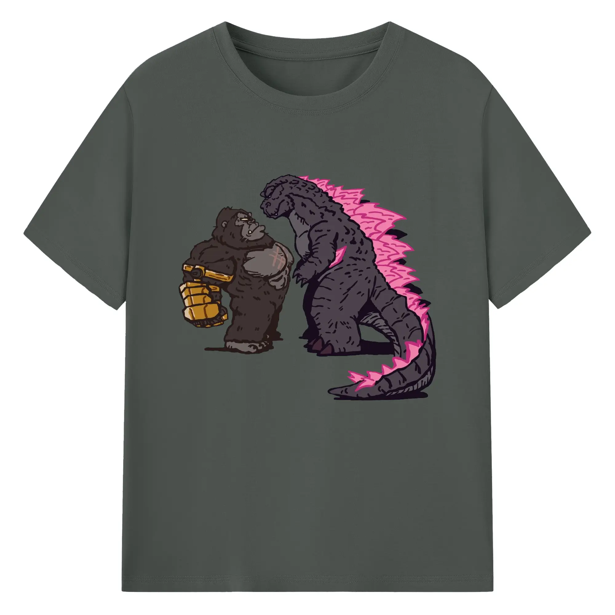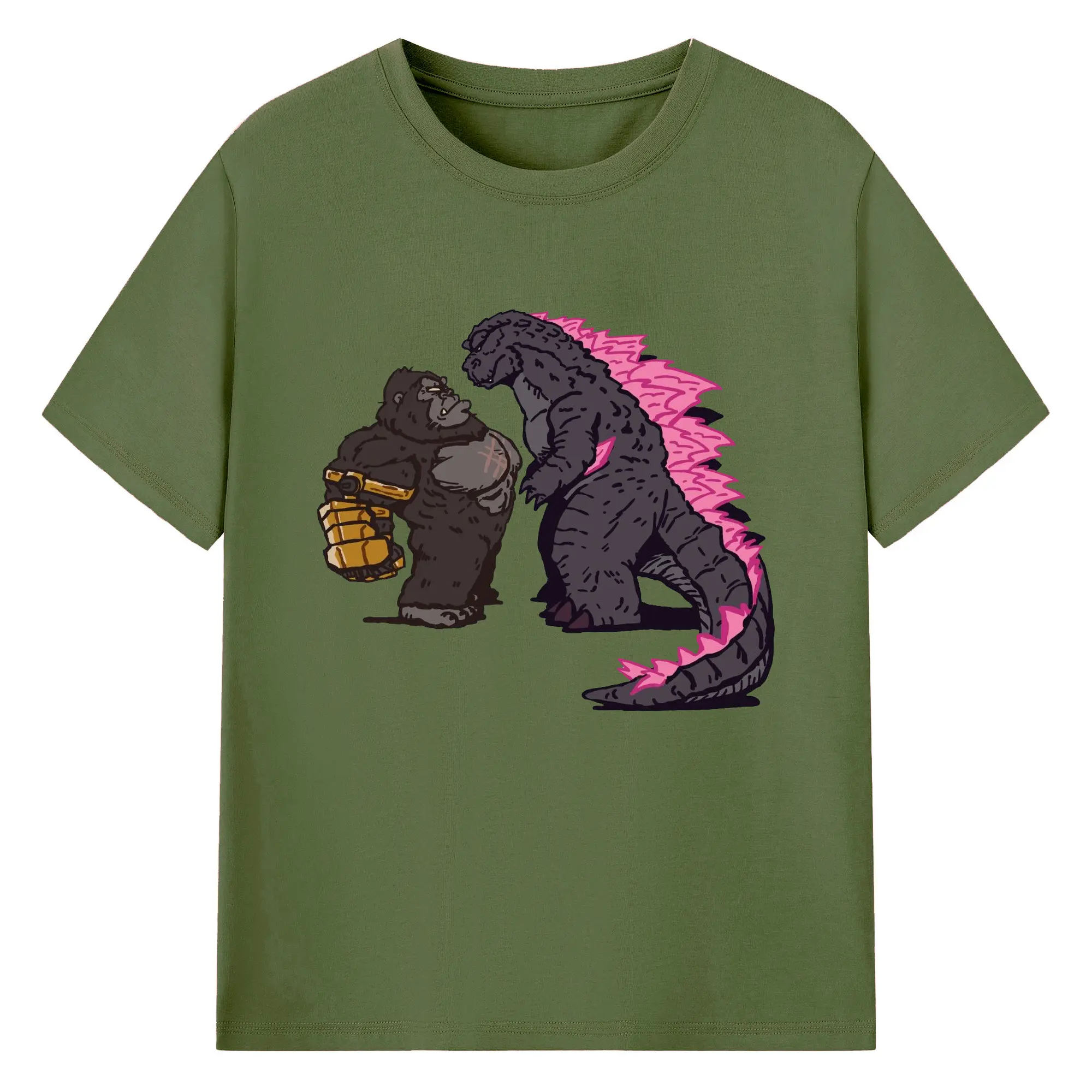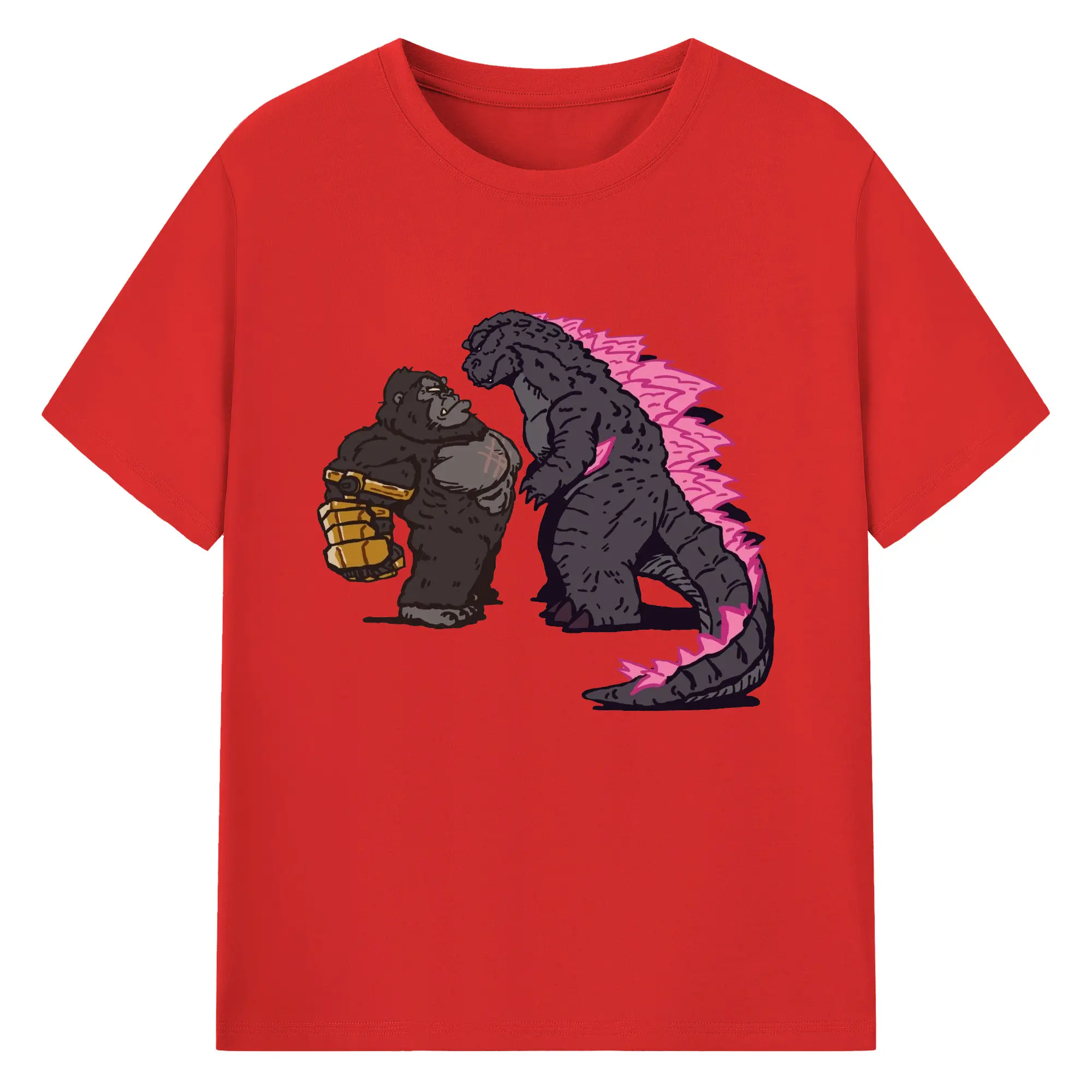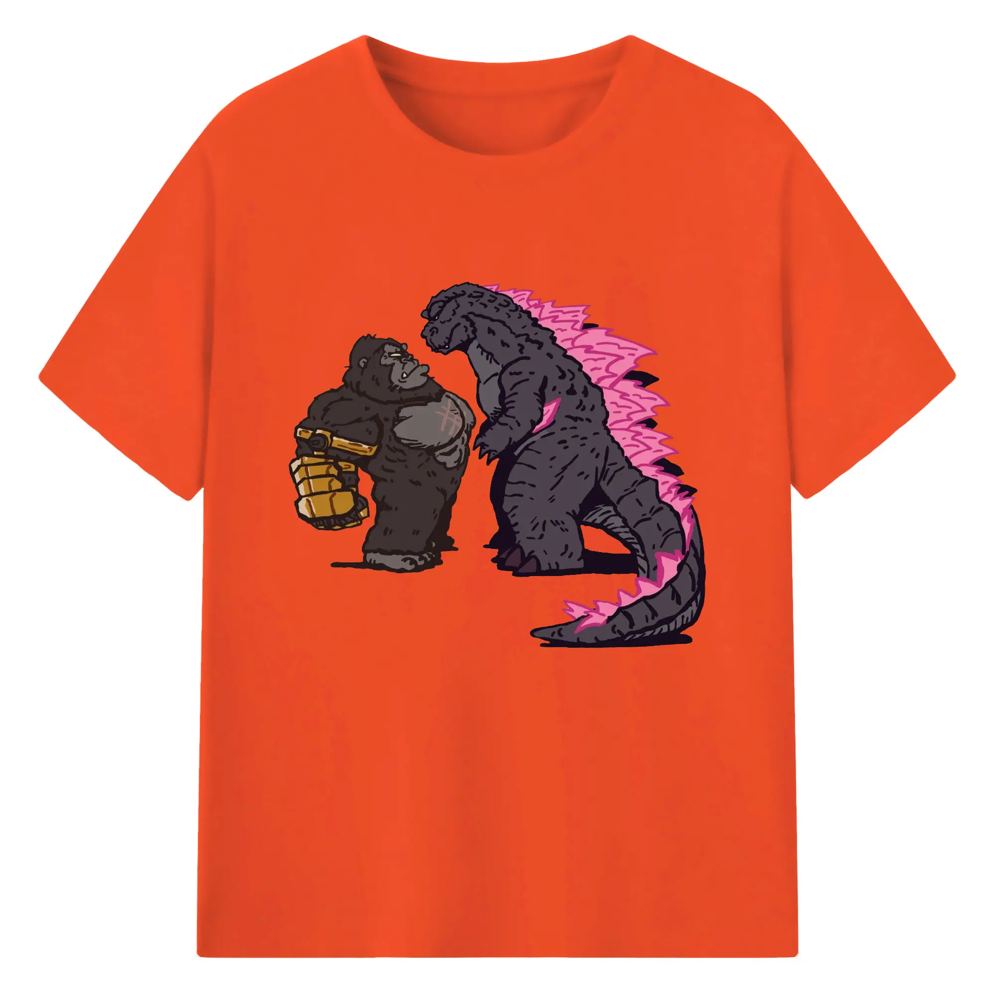 ゴジラ × コング - 綿100% 半袖Tシャツ ・ フロントプリント ・ 快適 通気性 ・ 日常使い 散歩 スポーツ用