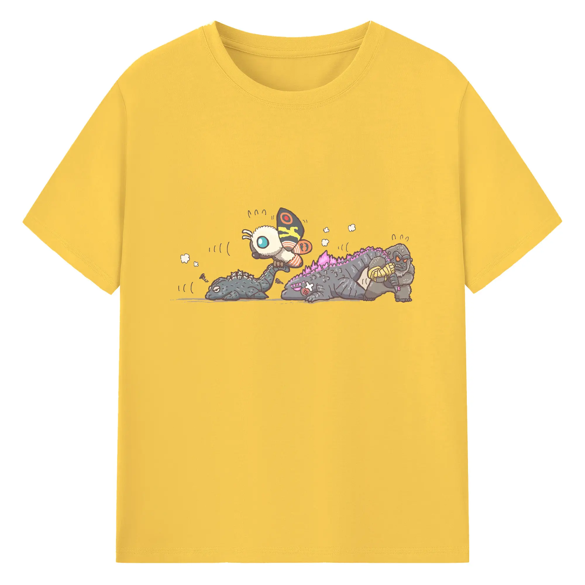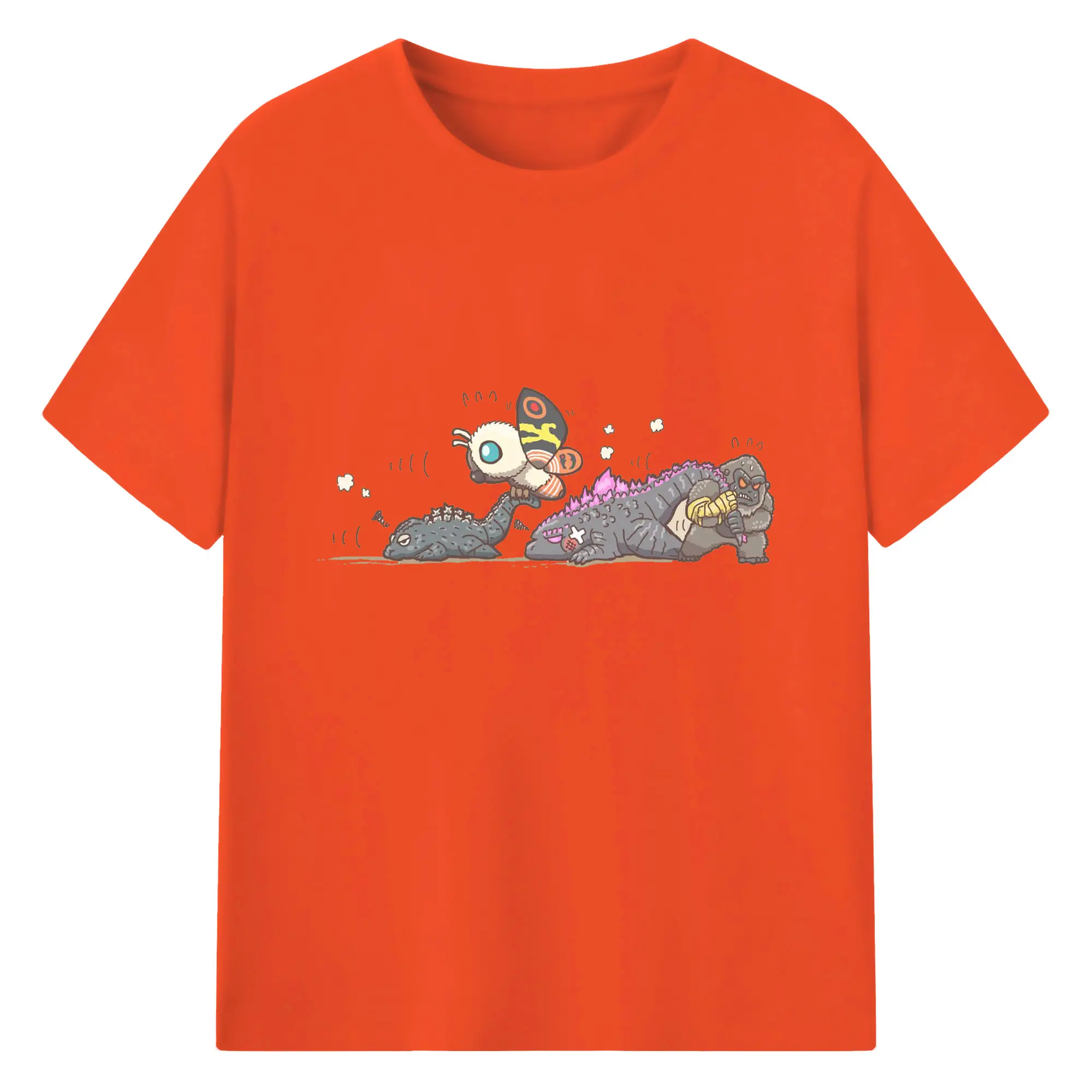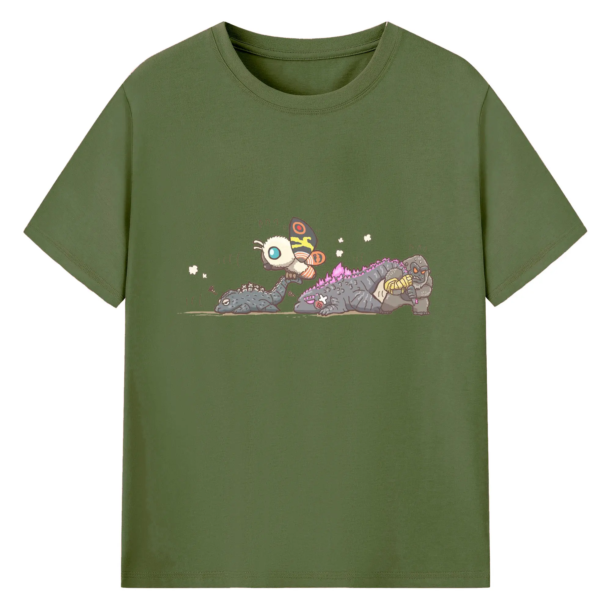 ゴジラとモスラ - 綿100% 半袖Tシャツ ・ フロントプリント ・ 快適 通気性 ・ 日常使い 散歩 スポーツ用
