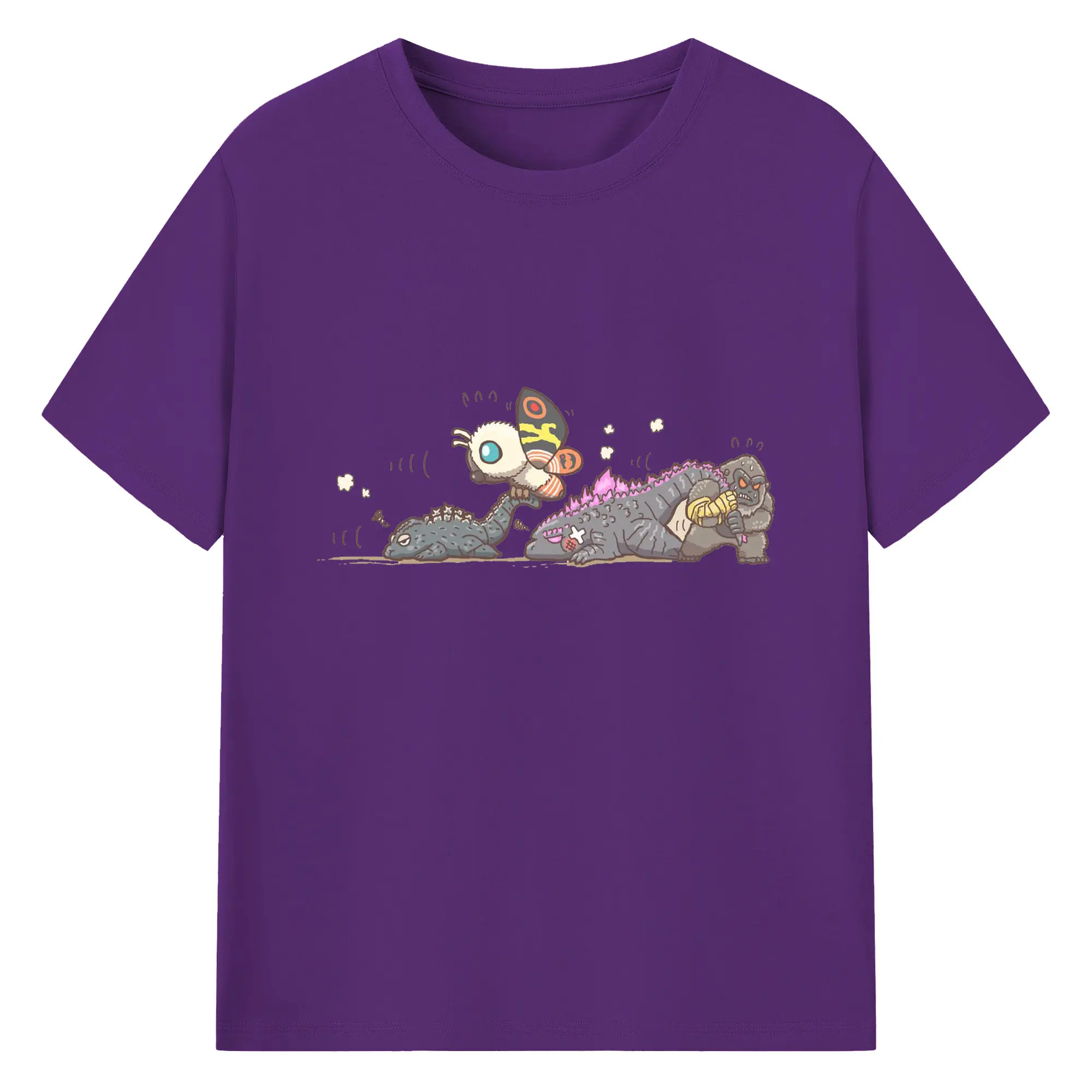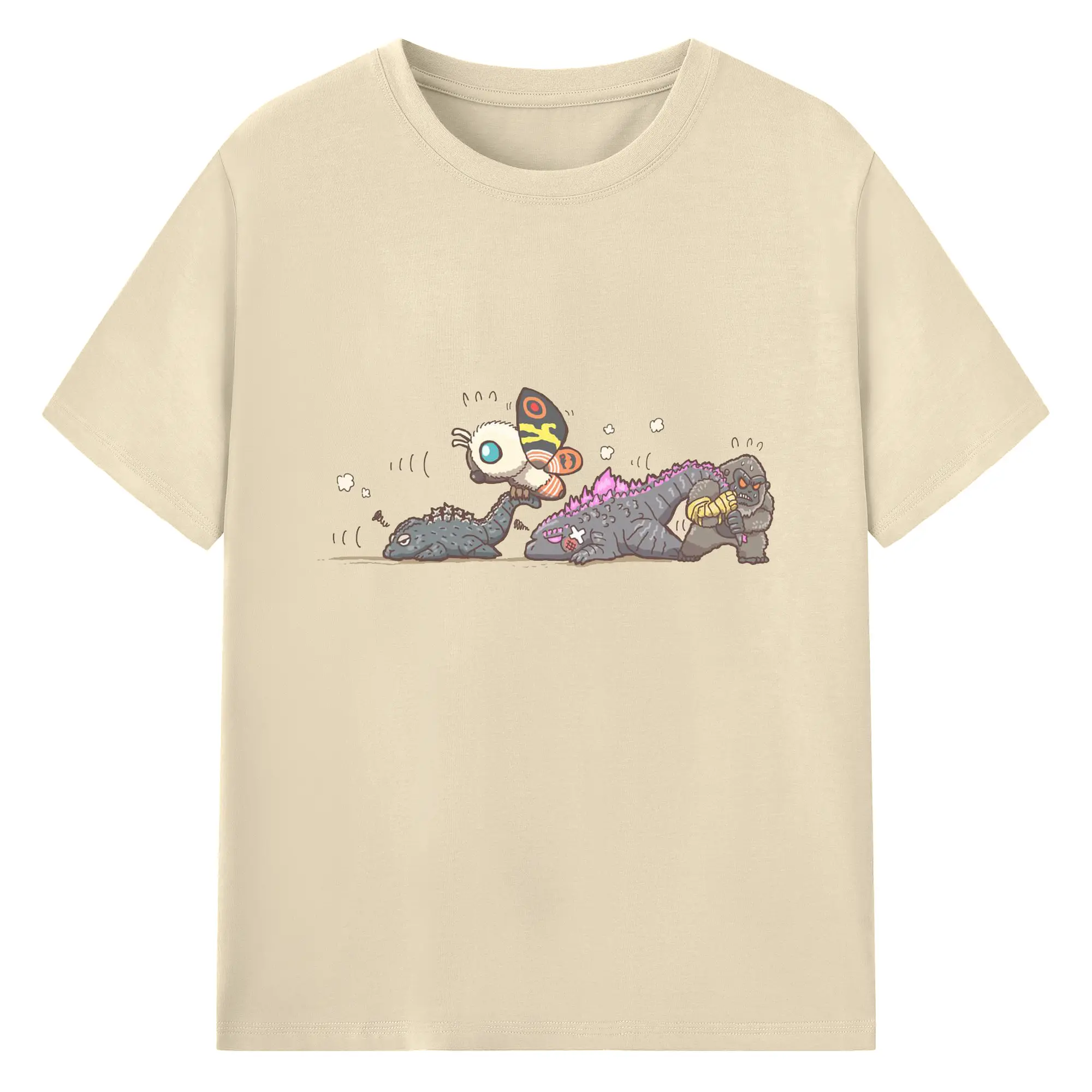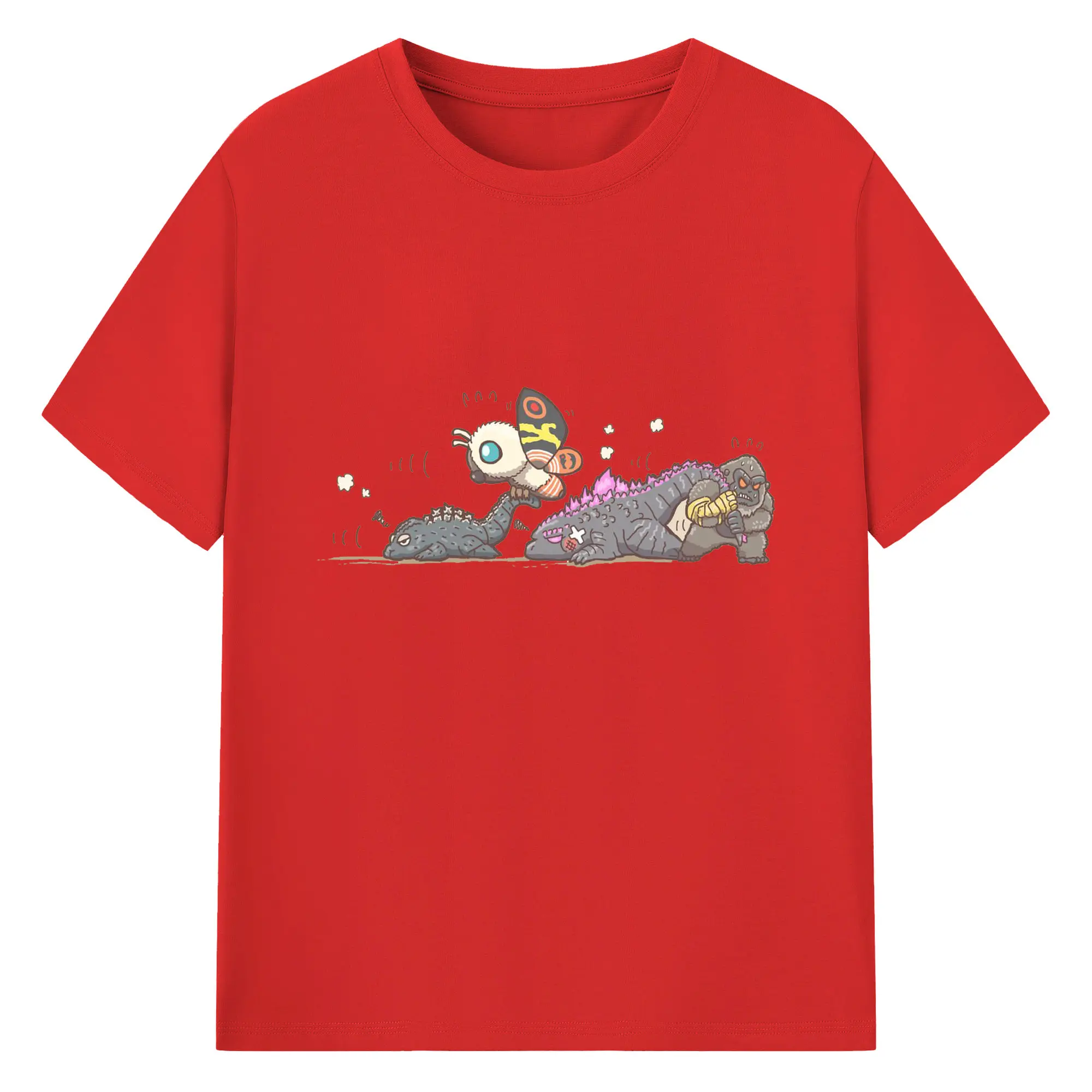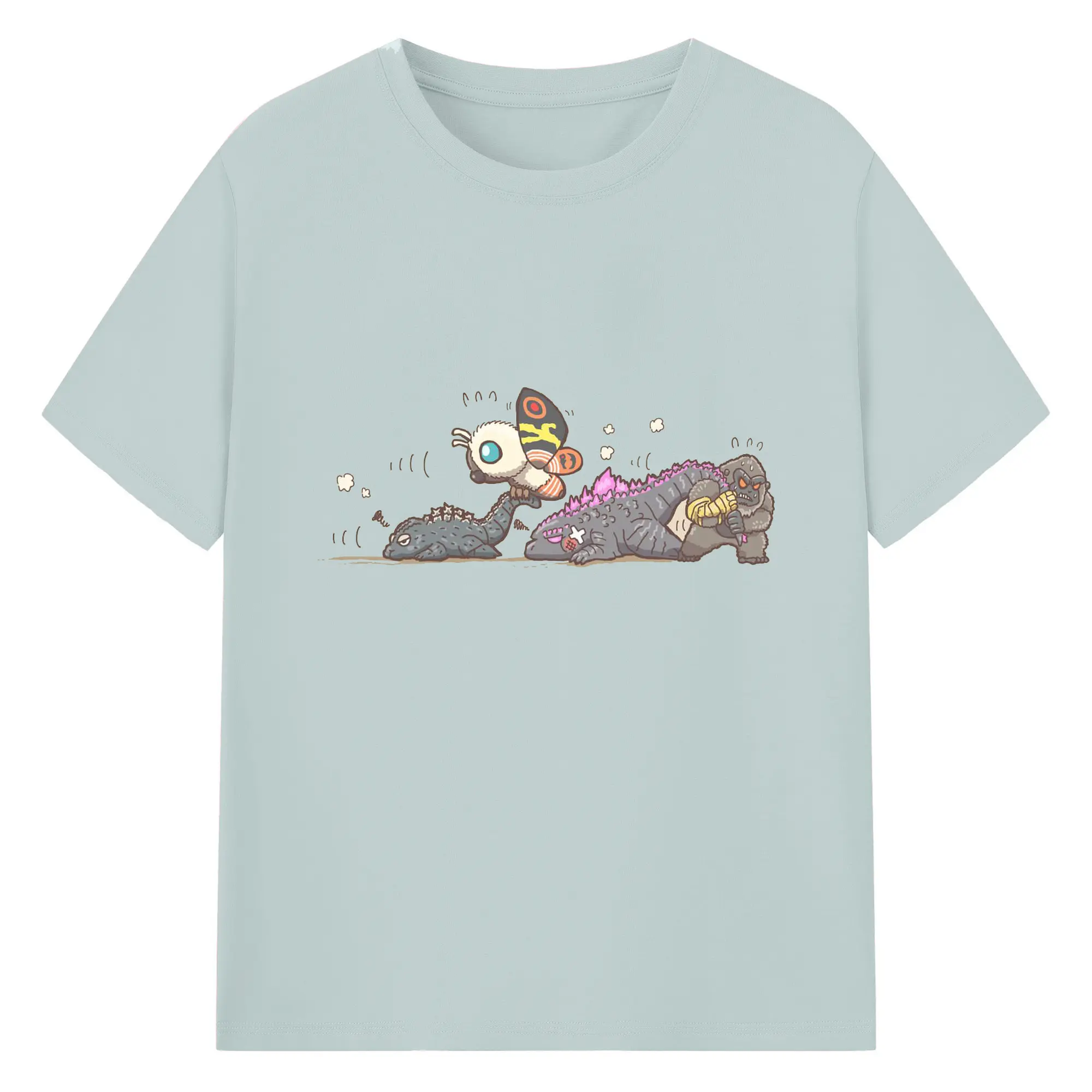 ゴジラとモスラ - 綿100% 半袖Tシャツ ・ フロントプリント ・ 快適 通気性 ・ 日常使い 散歩 スポーツ用