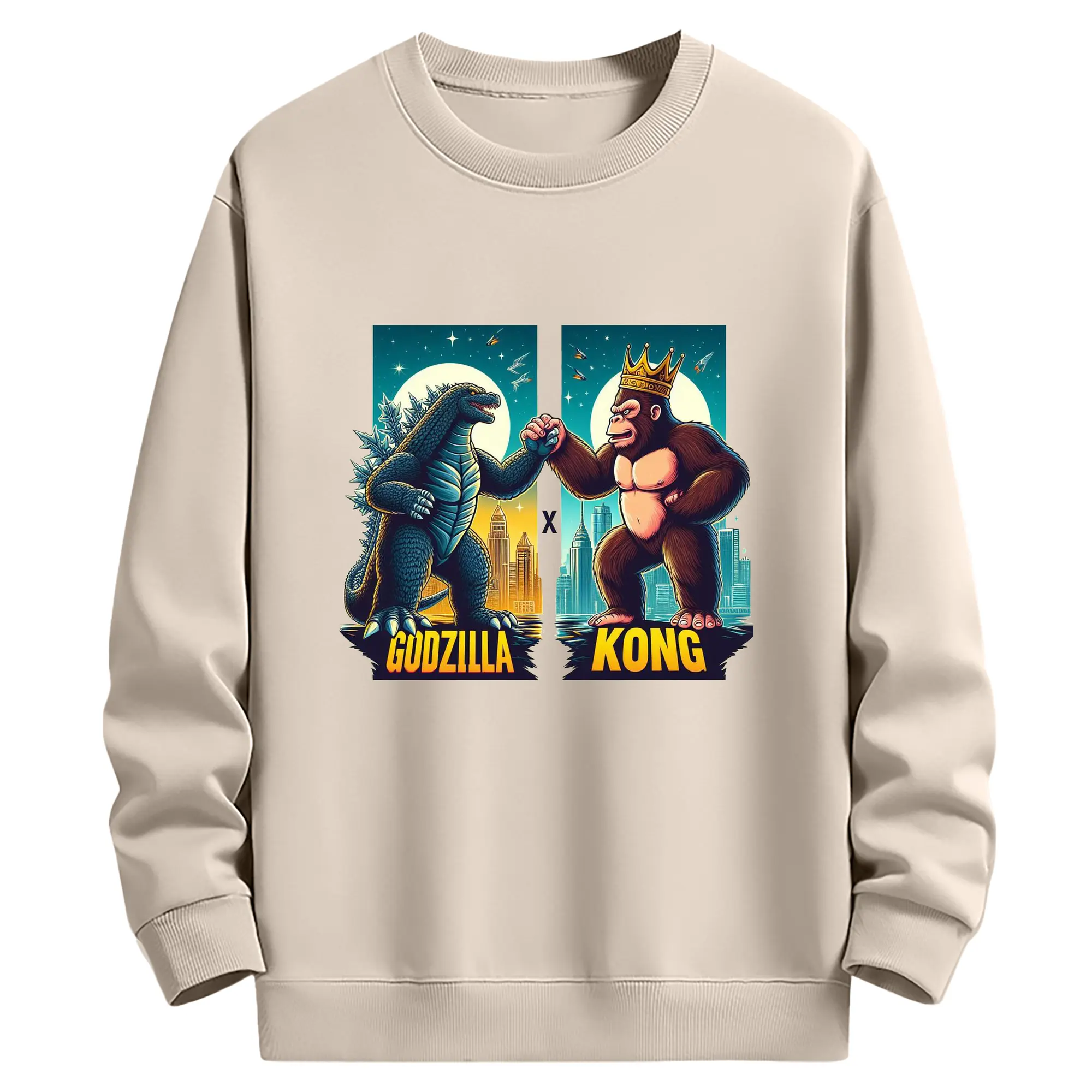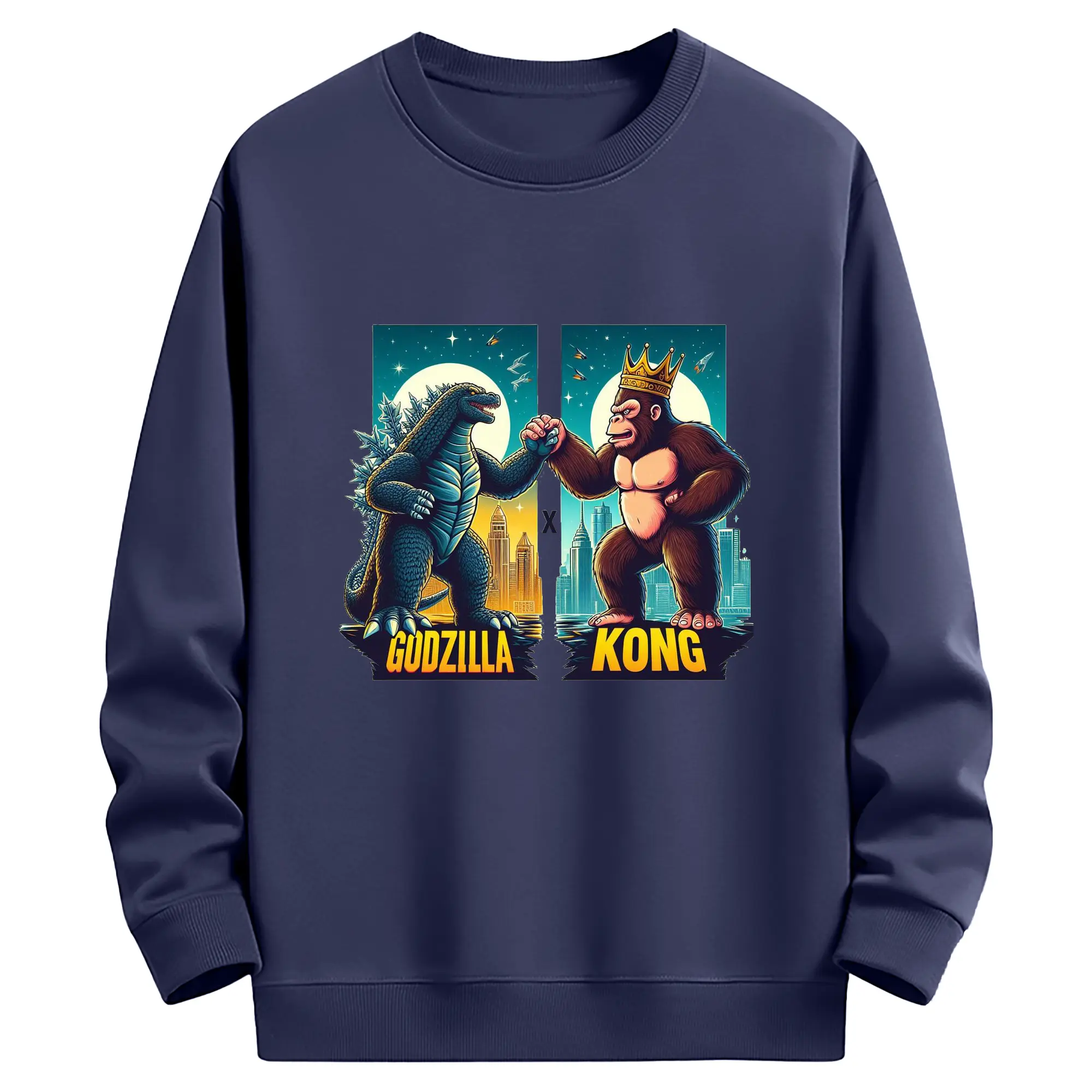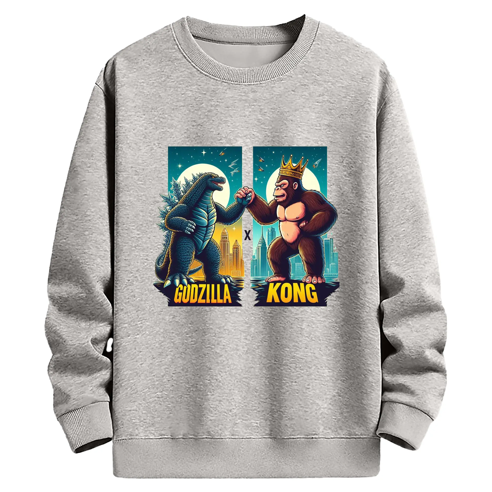 ゴジラ × コング - 高品質 クルーネック スウェット ・ コットン59% ポリエステル41% ・ ユニセックス 長袖 トレーナー ・ カジュアル デイリー スポーツ 散歩用