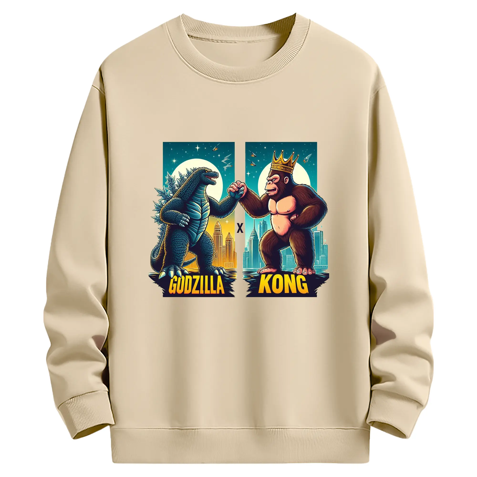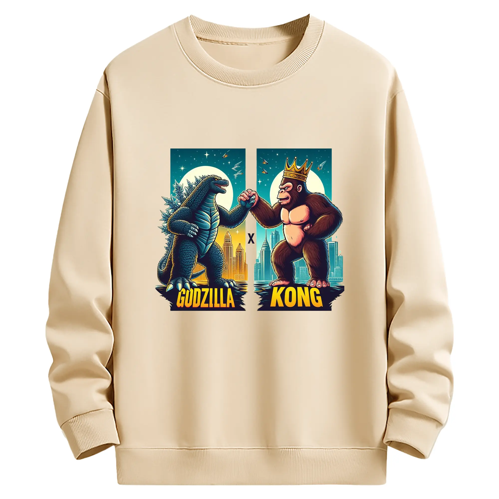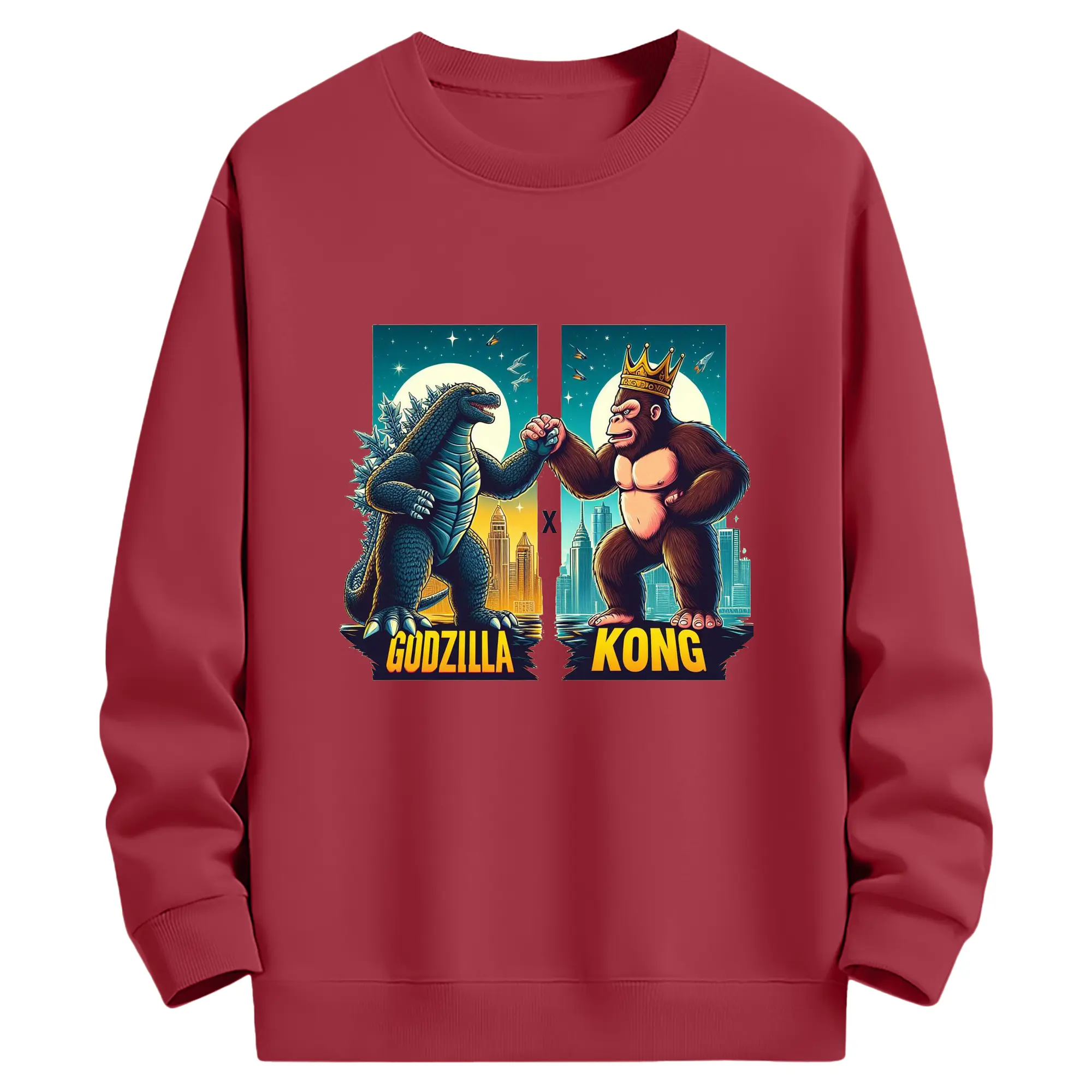 ゴジラ × コング - 高品質 クルーネック スウェット ・ コットン59% ポリエステル41% ・ ユニセックス 長袖 トレーナー ・ カジュアル デイリー スポーツ 散歩用