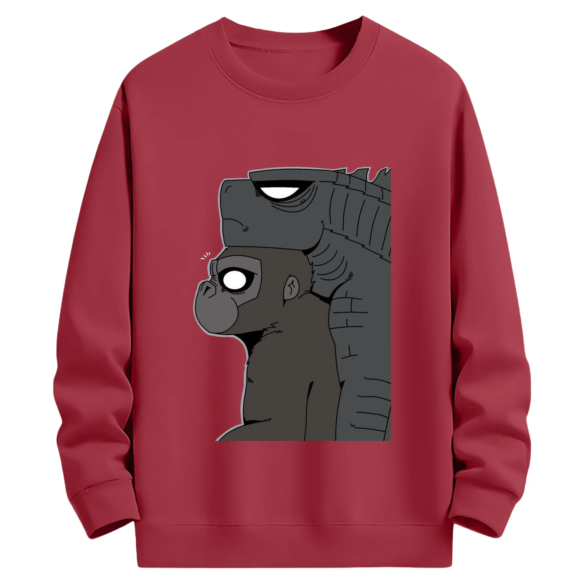 ゴジラ × コング - 高品質 クルーネック スウェット ・ コットン59% ポリエステル41% ・ ユニセックス 長袖 トレーナー ・ カジュアル デイリー スポーツ 散歩用