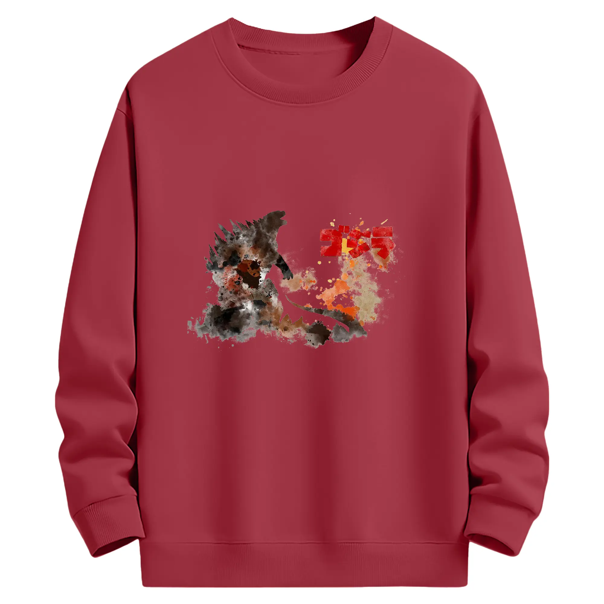 ゴジラ ゴジラ名シーン - 高品質 クルーネック スウェット ・ コットン59% ポリエステル41% ・ ユニセックス 長袖 トレーナー ・ カジュアル デイリー スポーツ 散歩用