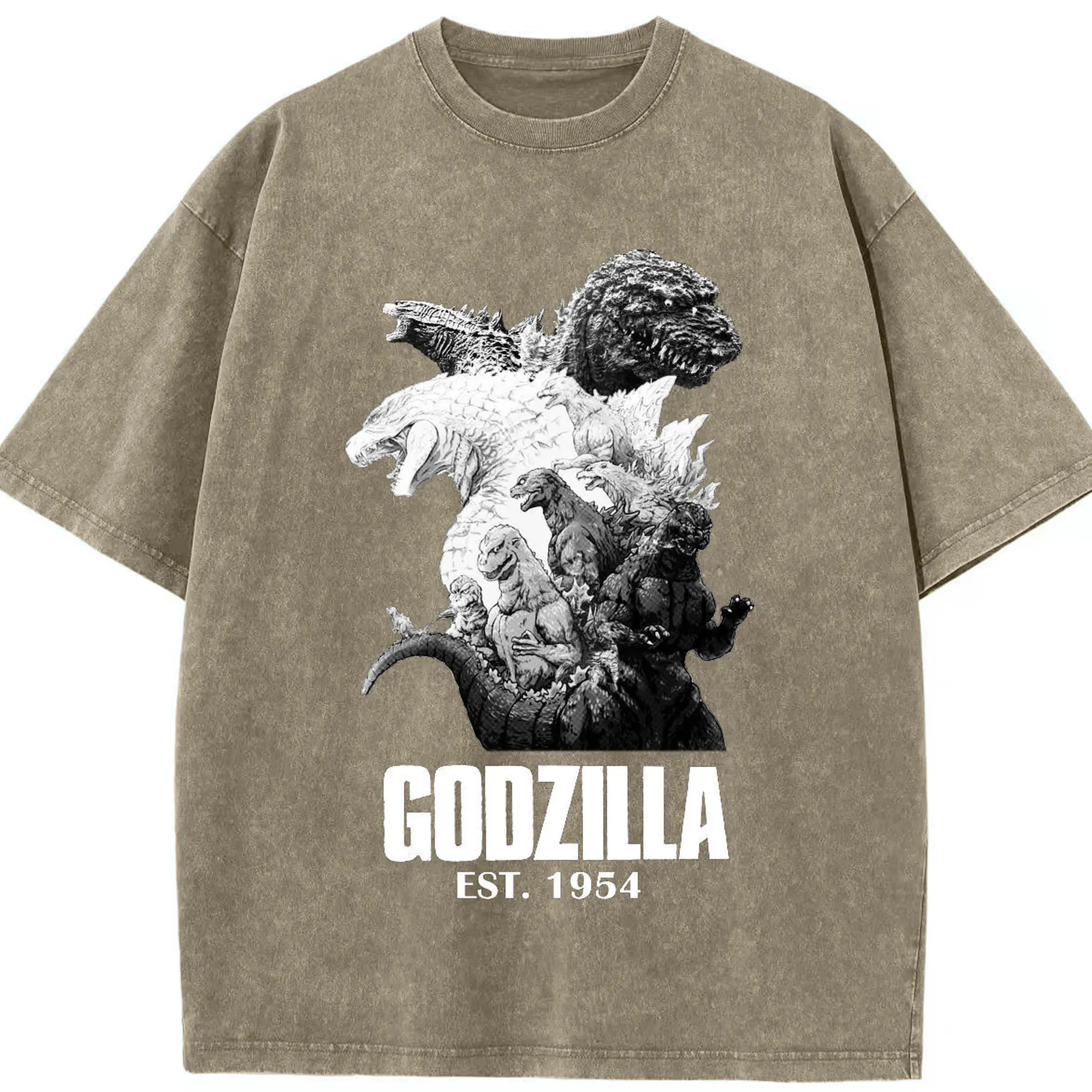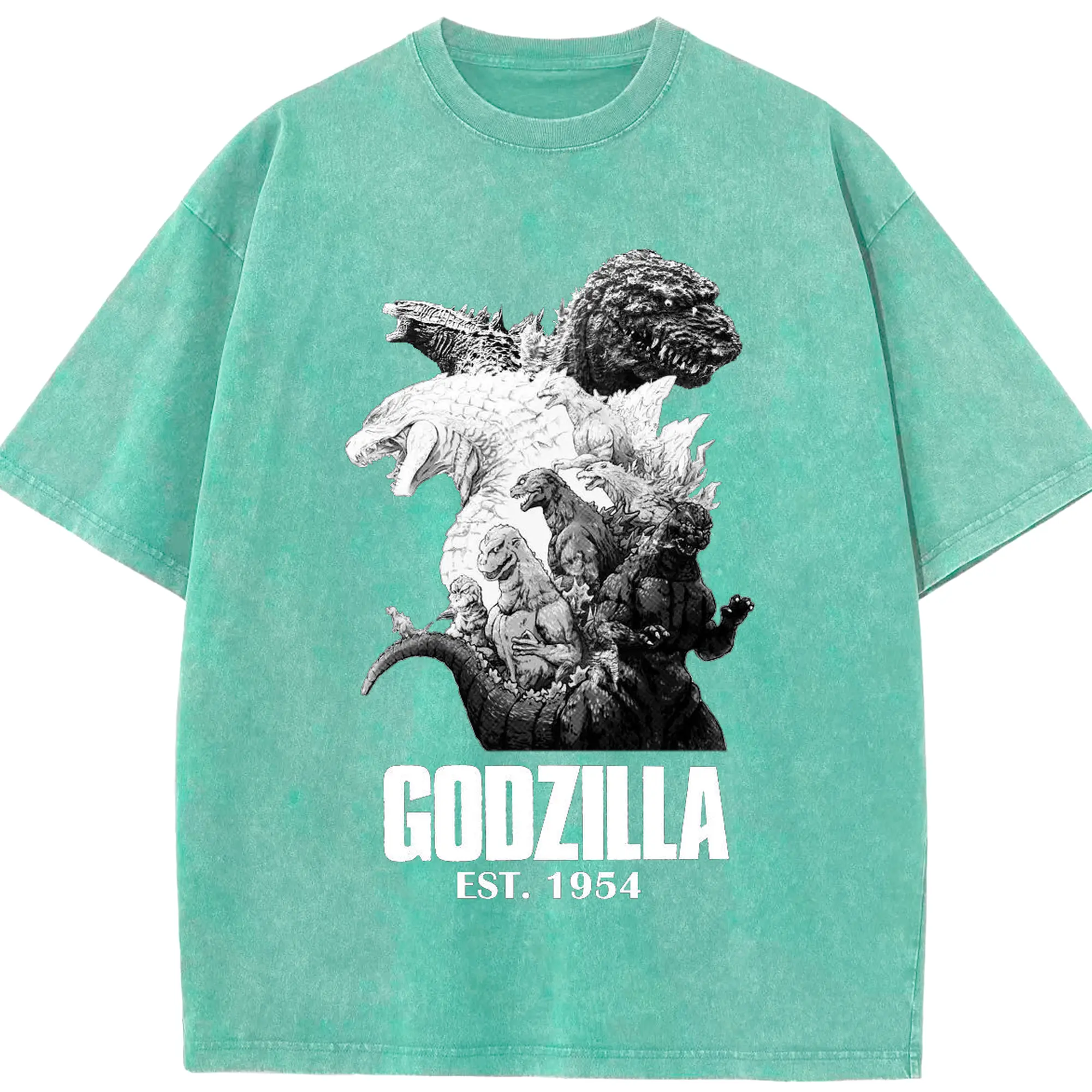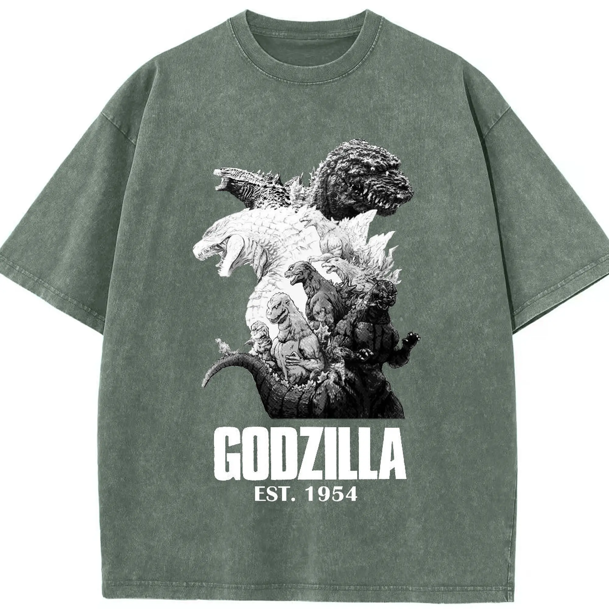 ゴジラ キャットジラ CATZILLA - 綿100% ヴィンテージ風 半袖Tシャツ ・ フロントプリント ・ 柔らか肌触り ・ 通気性 快適 ・ スポーツ カジュアル 外出用