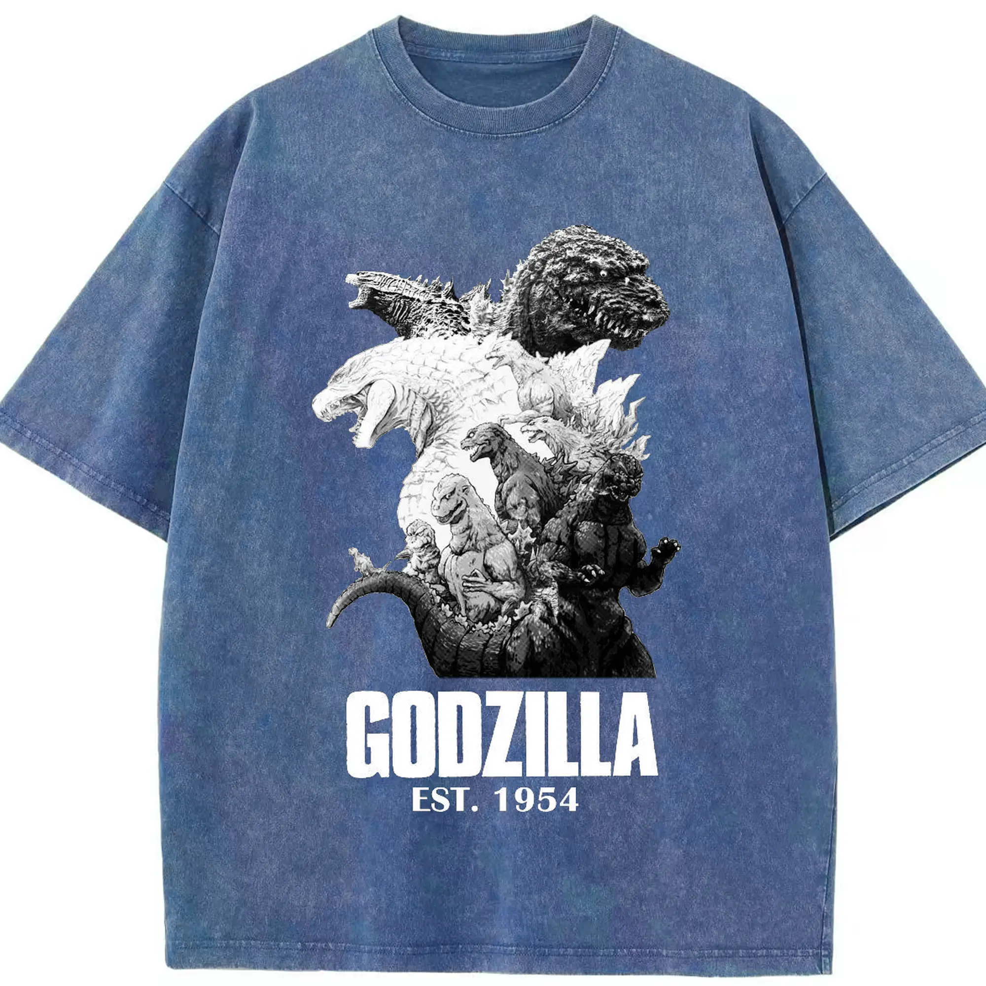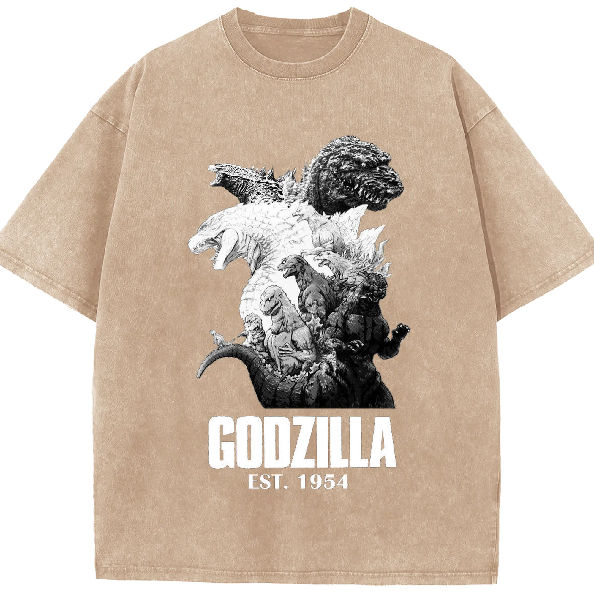 ゴジラ ゴジラ名シーン - 綿100% ヴィンテージ風 半袖Tシャツ ・ フロントプリント ・ 柔らか肌触り ・ 通気性 快適 ・ スポーツ カジュアル 外出用
