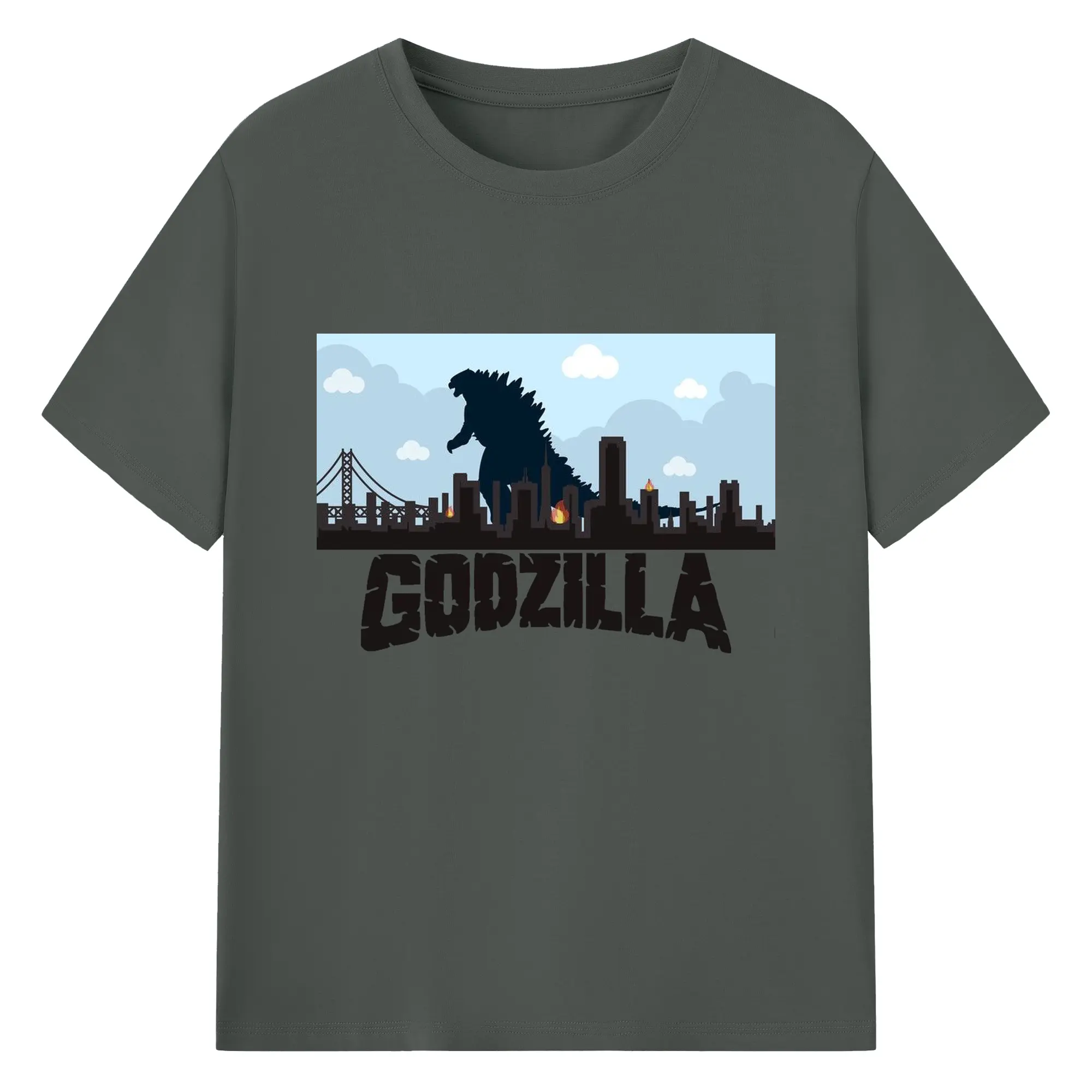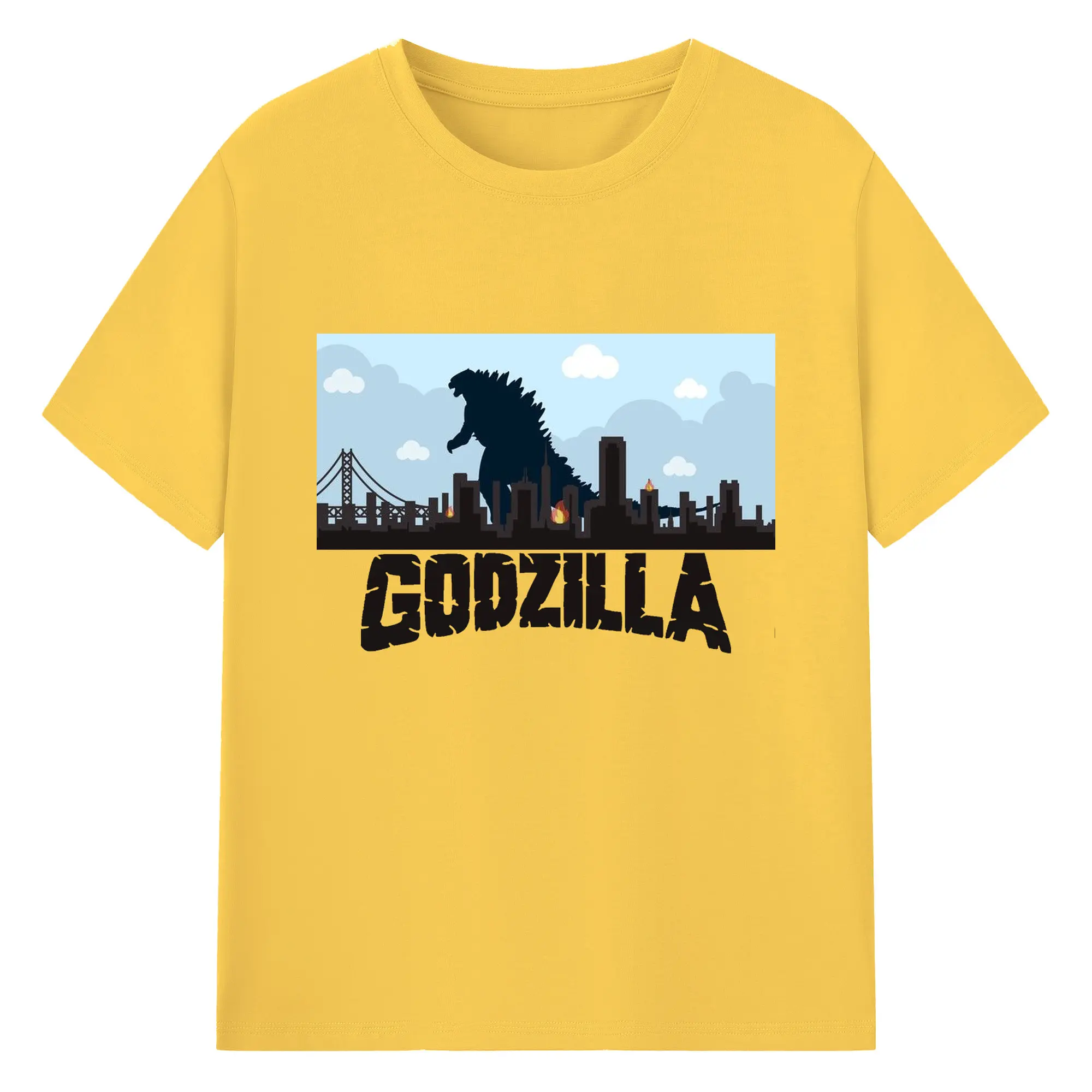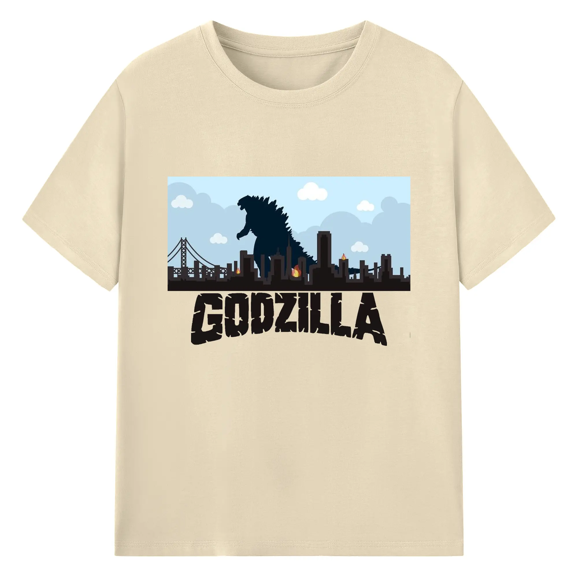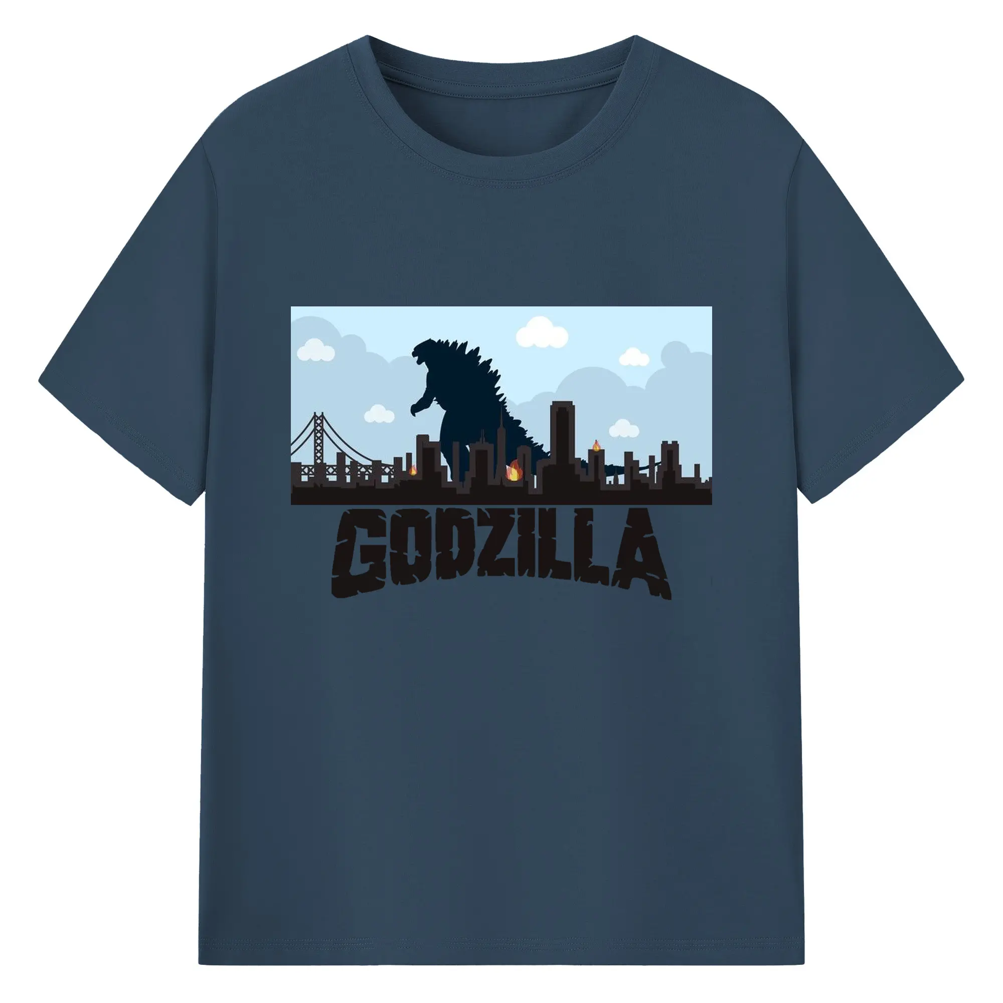 ゴジラ ゴジラ名シーン - 綿100% ヴィンテージ風 半袖Tシャツ ・ フロントプリント ・ 柔らか肌触り ・ 通気性 快適 ・ スポーツ カジュアル 外出用