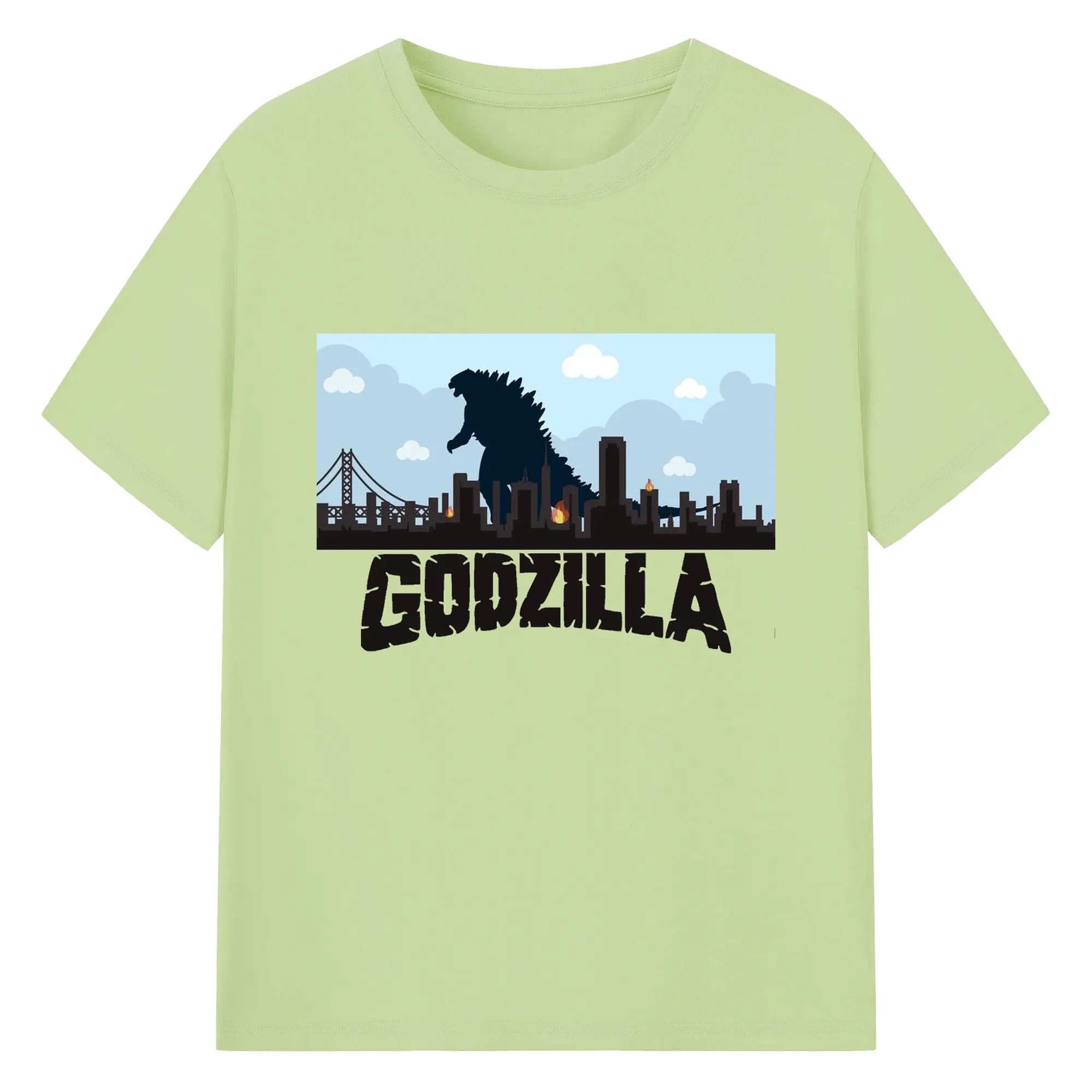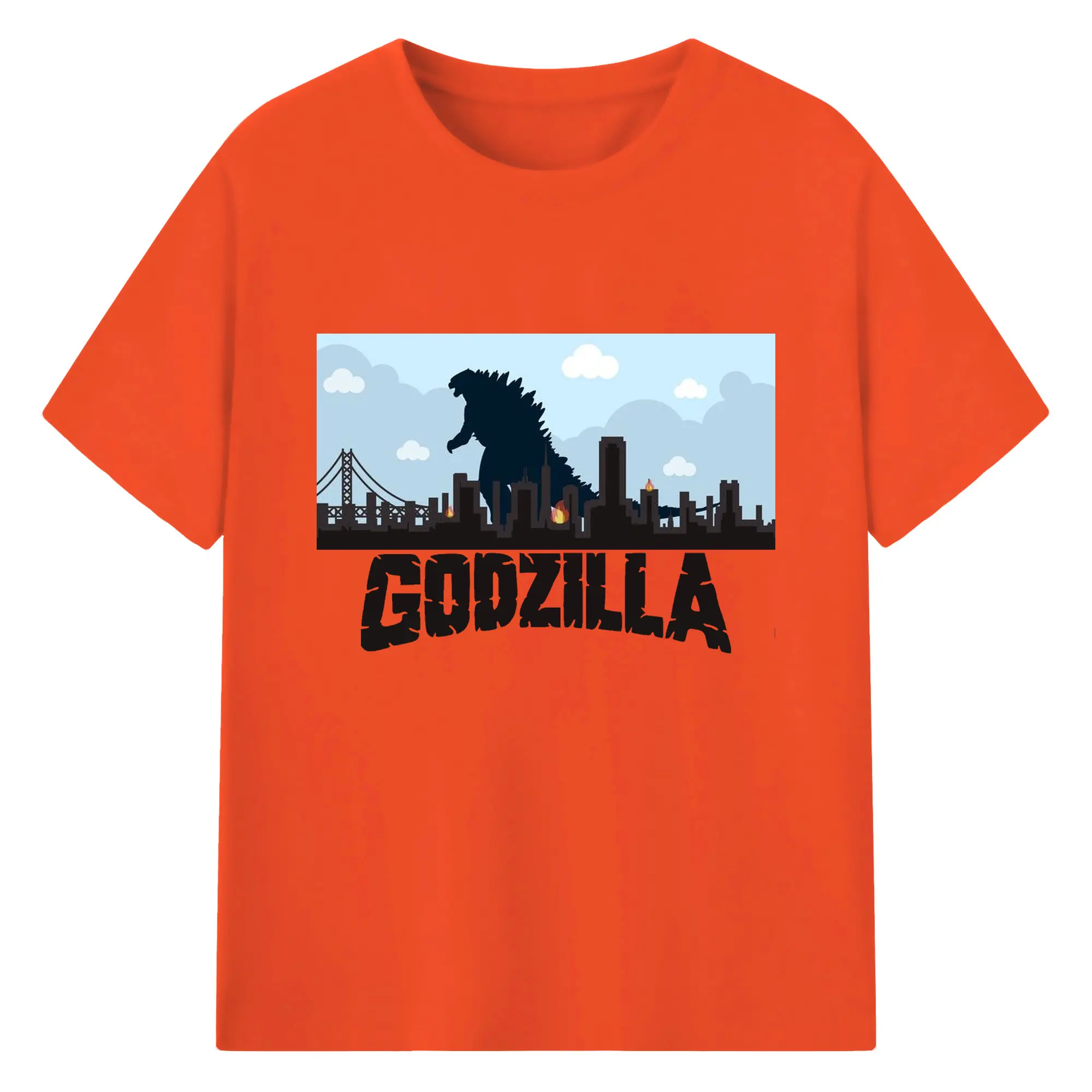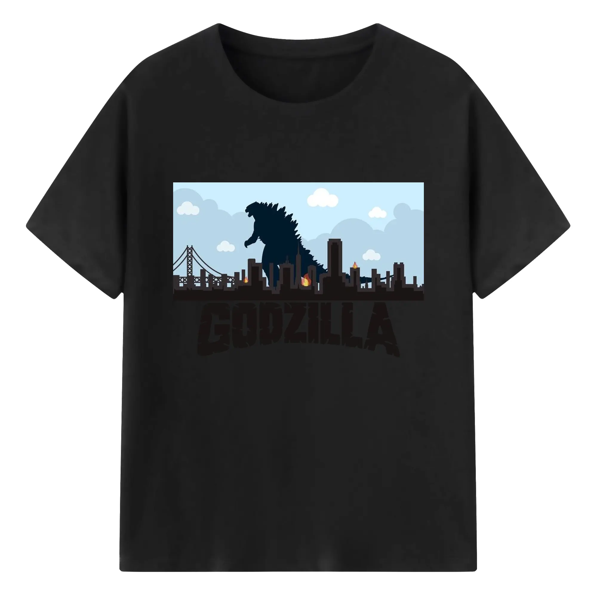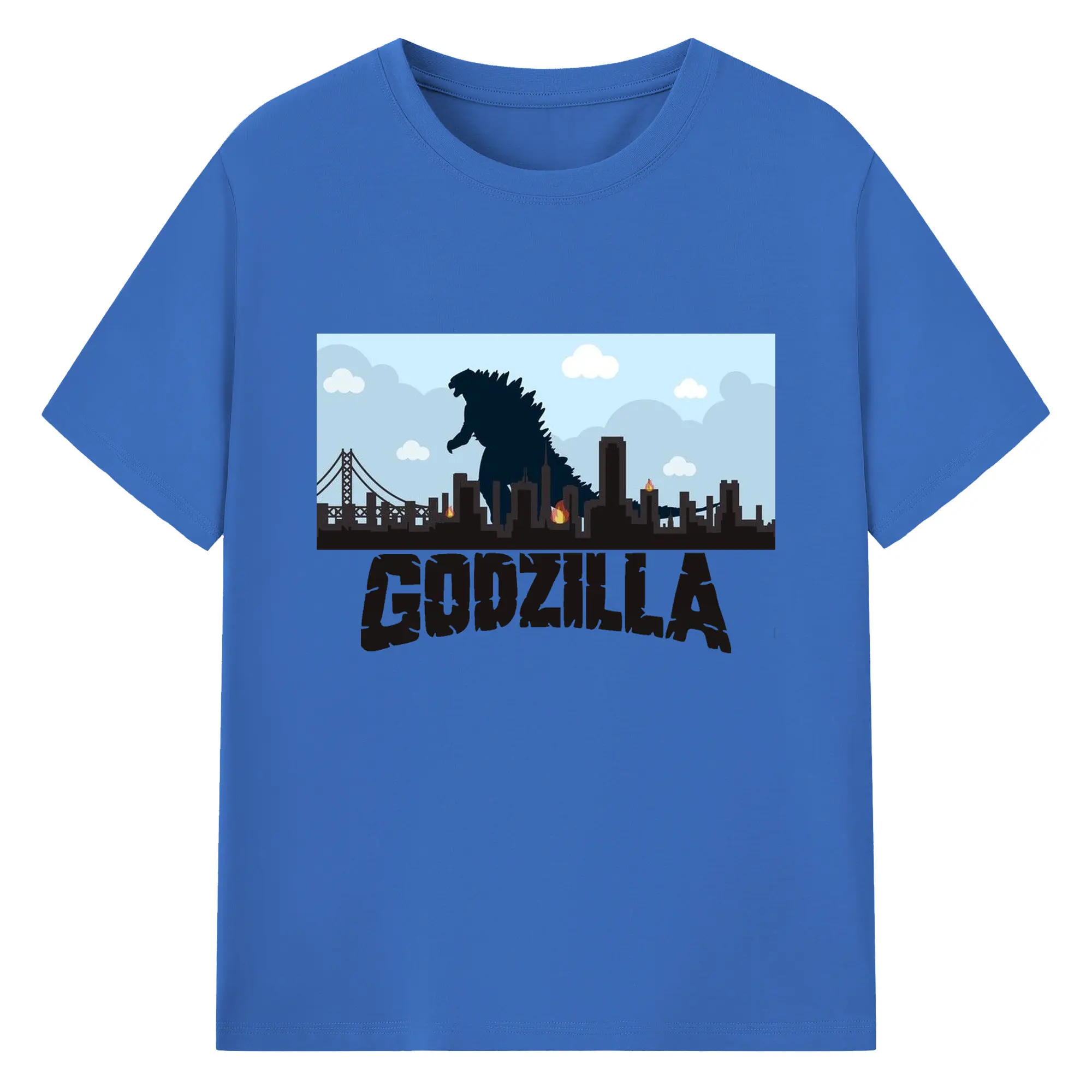 ゴジラ ゴジラ名シーン - 綿100% ヴィンテージ風 半袖Tシャツ ・ フロントプリント ・ 柔らか肌触り ・ 通気性 快適 ・ スポーツ カジュアル 外出用