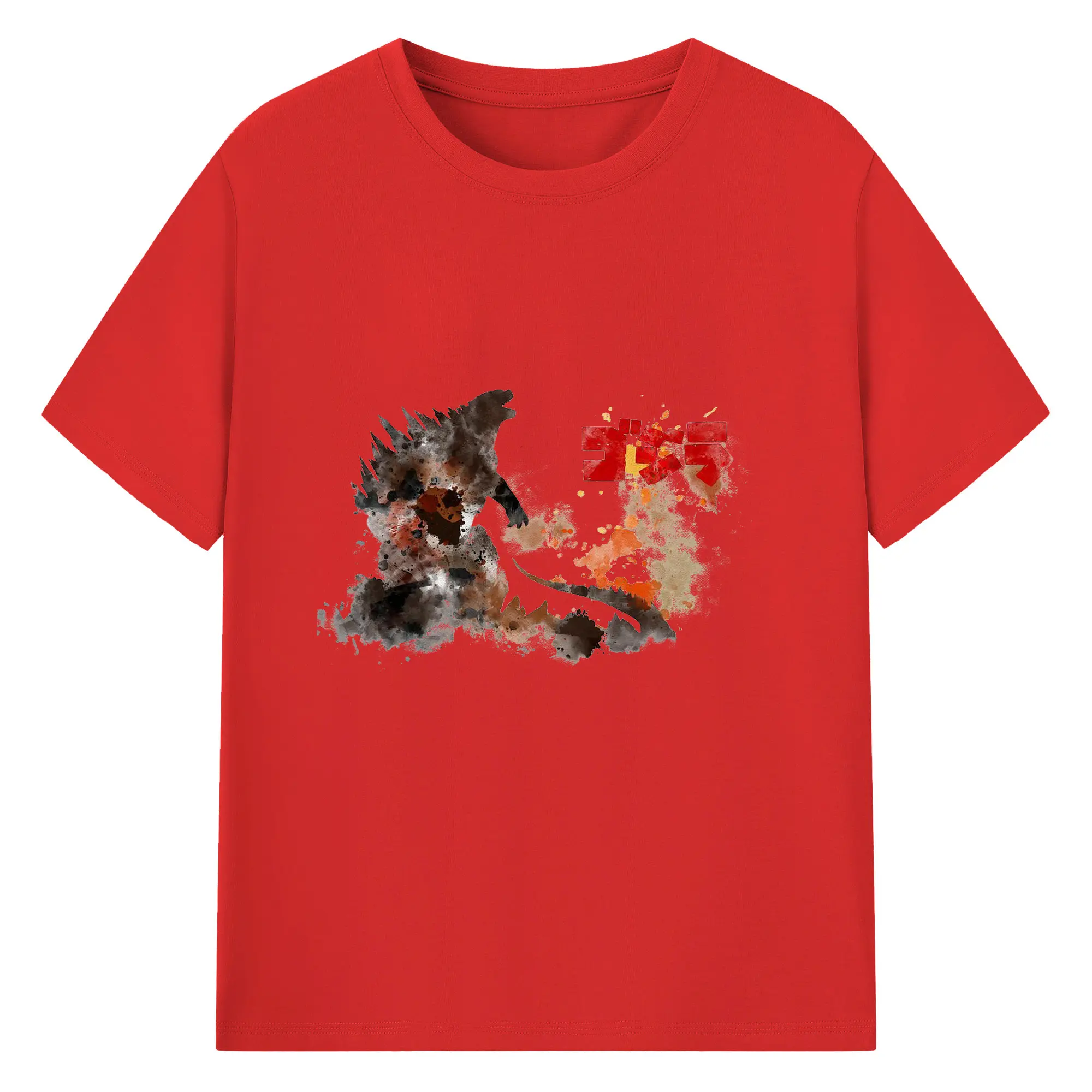 ゴジラ ゴジラ名シーン - 綿100% 半袖Tシャツ ・ フロントプリント ・ 快適 通気性 ・ 日常使い 散歩 スポーツ用