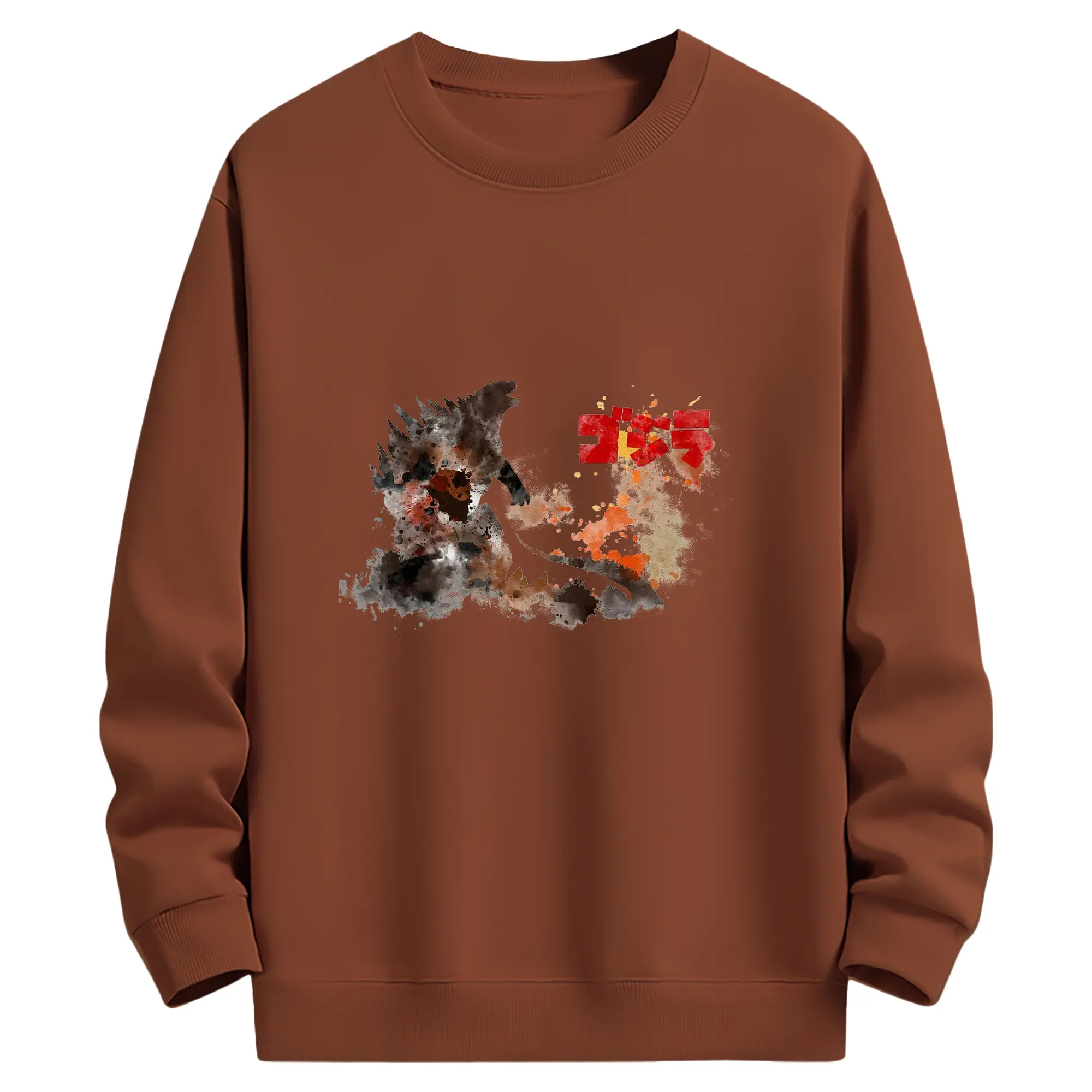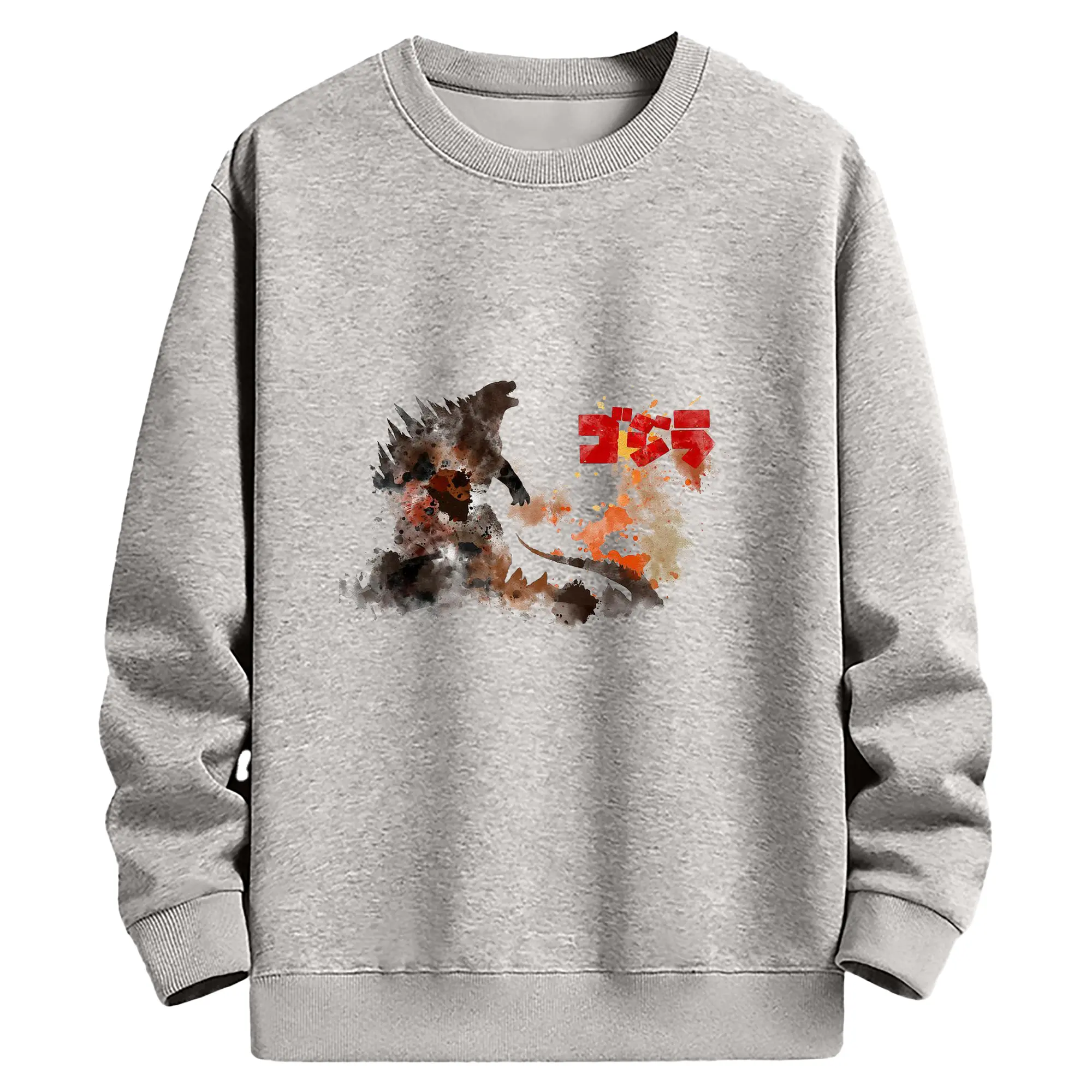 ゴジラ ゴジラ名シーン - 高品質 クルーネック スウェット ・ コットン59% ポリエステル41% ・ ユニセックス 長袖 トレーナー ・ カジュアル デイリー スポーツ 散歩用