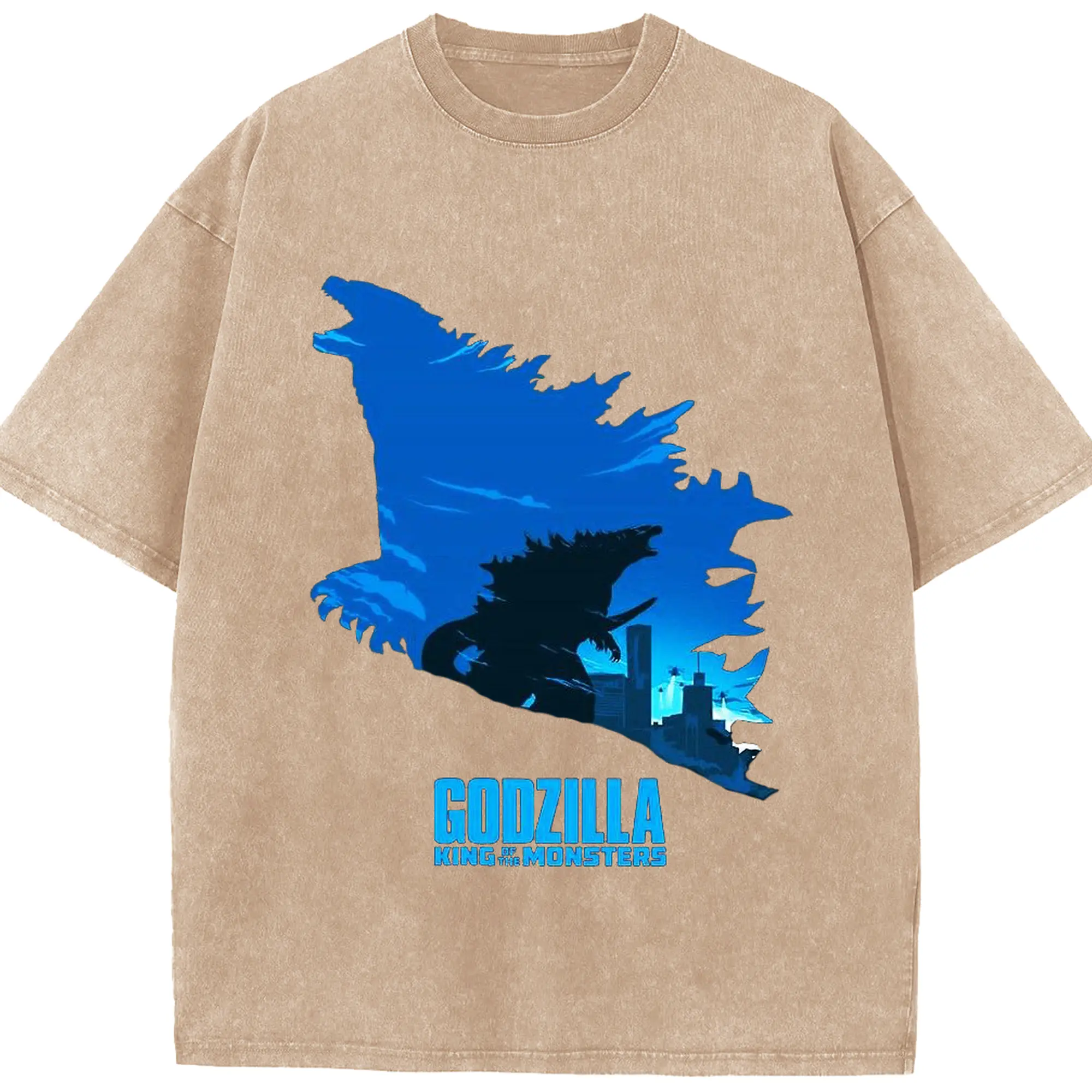 ゴジラ トトロ相撲コラボ - 綿100% ヴィンテージ風 半袖Tシャツ ・ フロントプリント ・ 柔らか肌触り ・ 通気性 快適 ・ スポーツ カジュアル 外出用