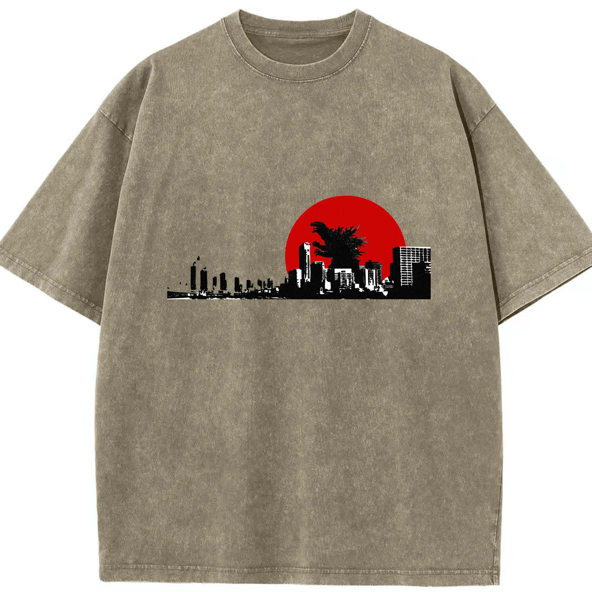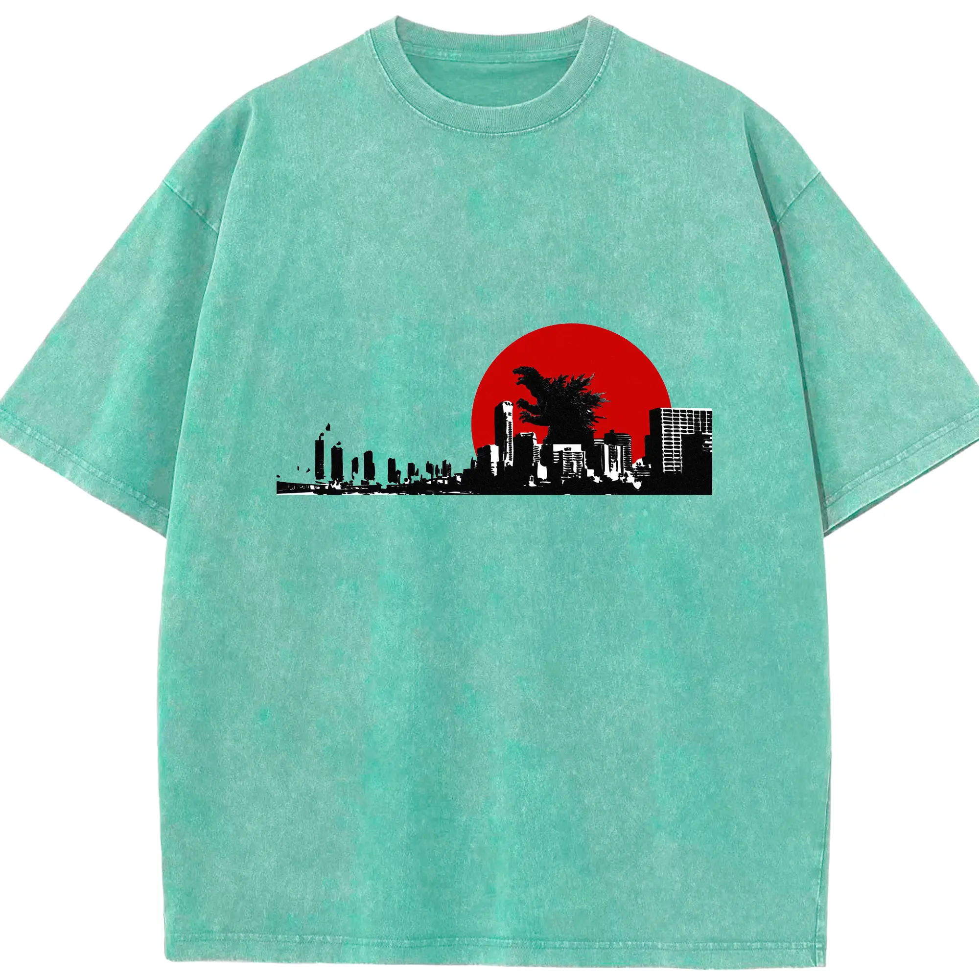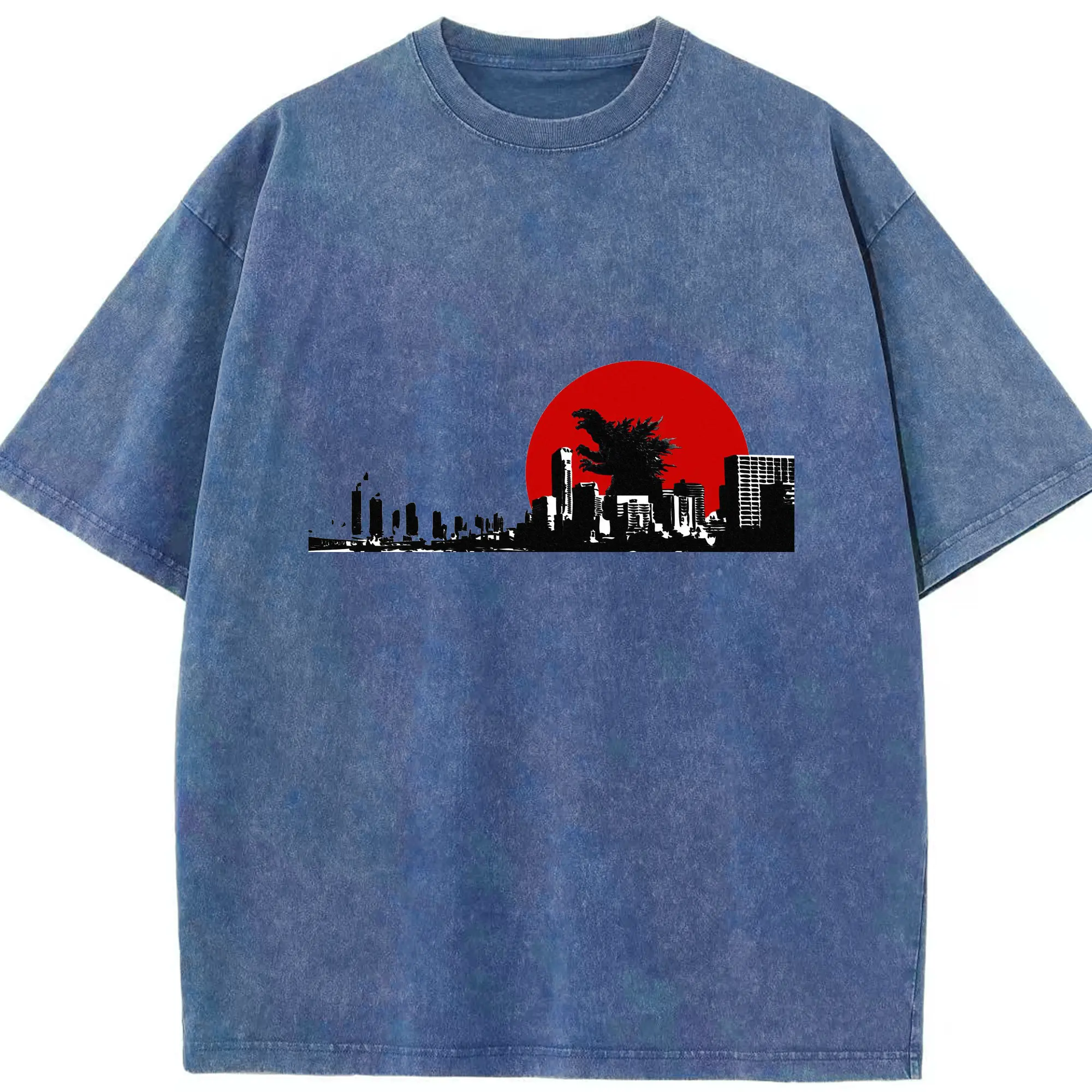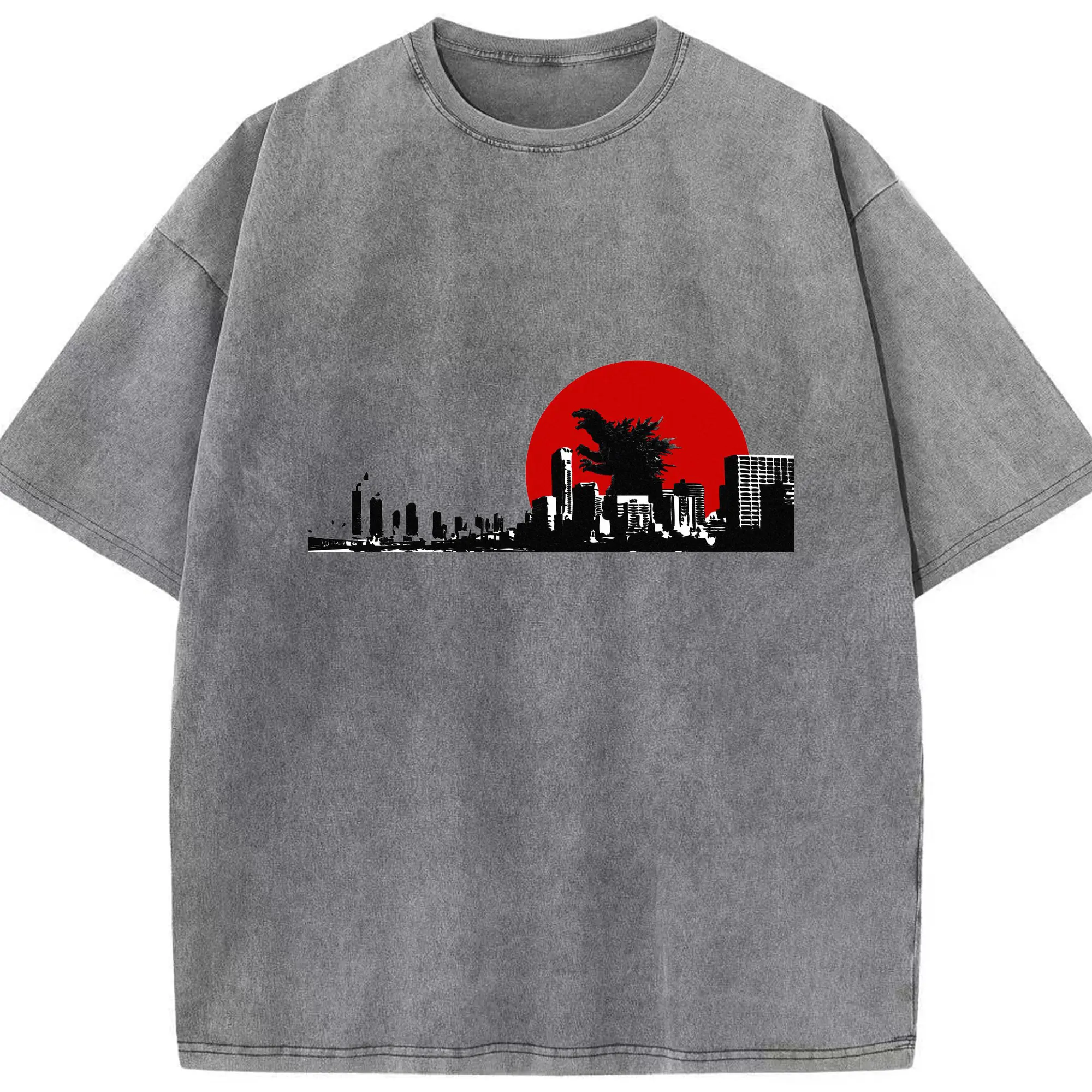 ゴジラ ゴジラ名シーン - 綿100% ヴィンテージ風 半袖Tシャツ ・ フロントプリント ・ 柔らか肌触り ・ 通気性 快適 ・ スポーツ カジュアル 外出用