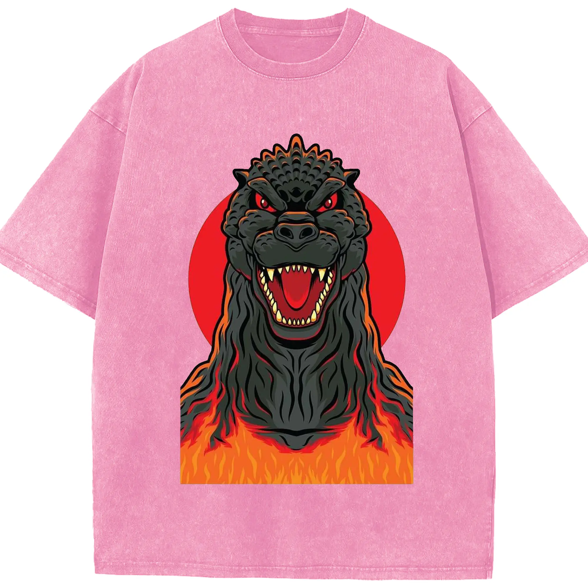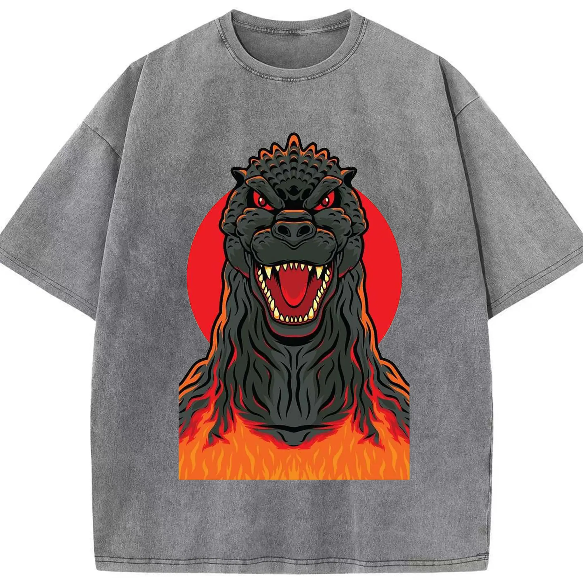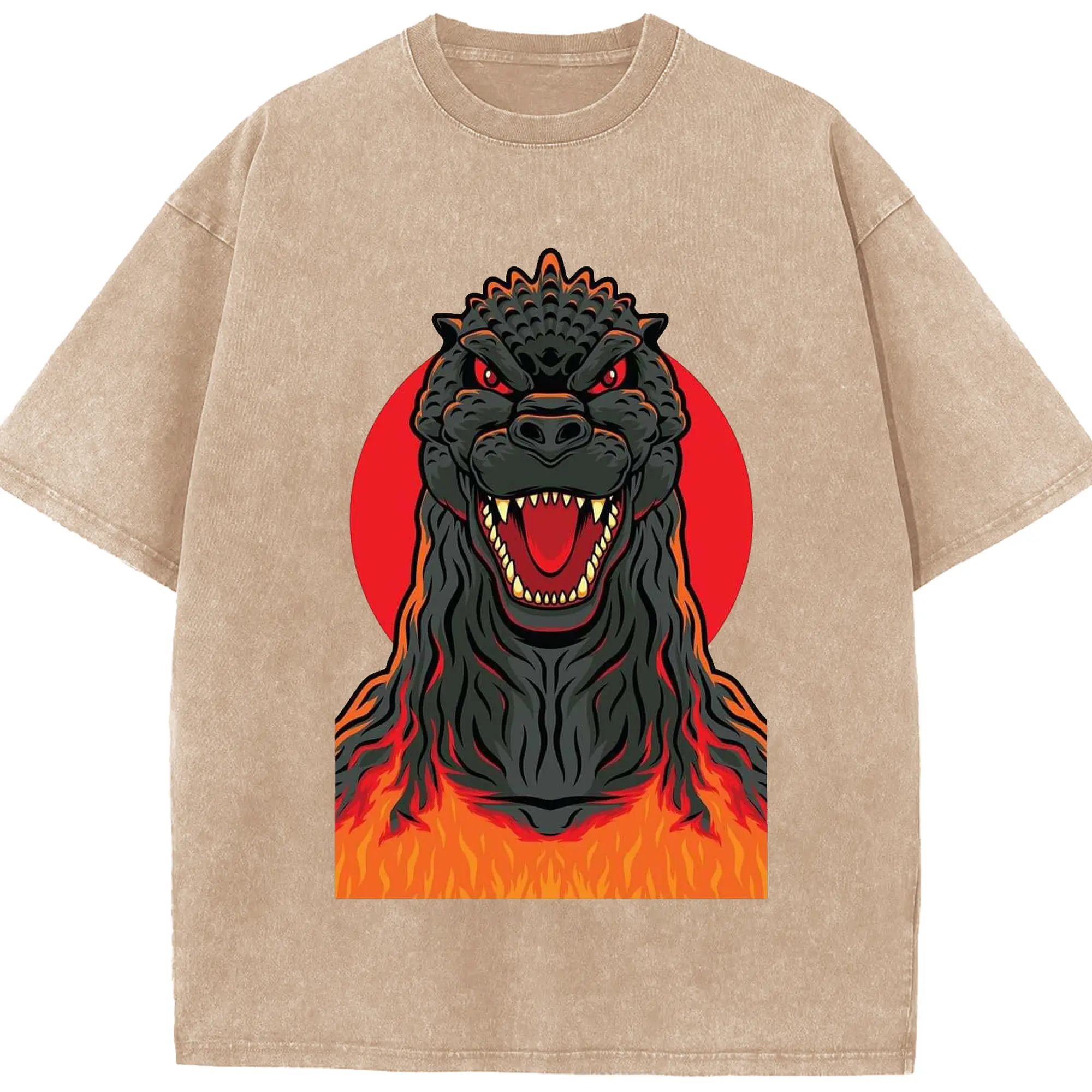 ゴジラ - 綿100% ヴィンテージ風 半袖Tシャツ ・ フロントプリント ・ 柔らか肌触り ・ 通気性 快適 ・ スポーツ カジュアル 外出用