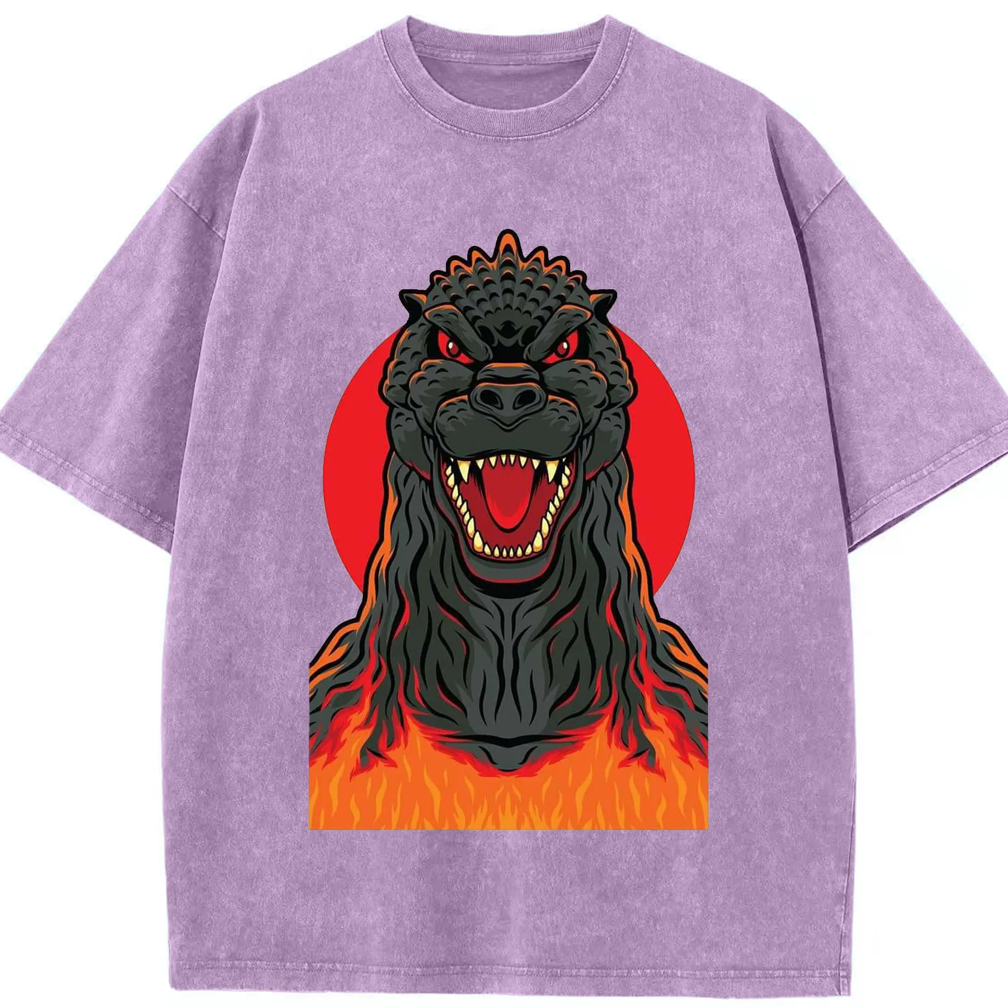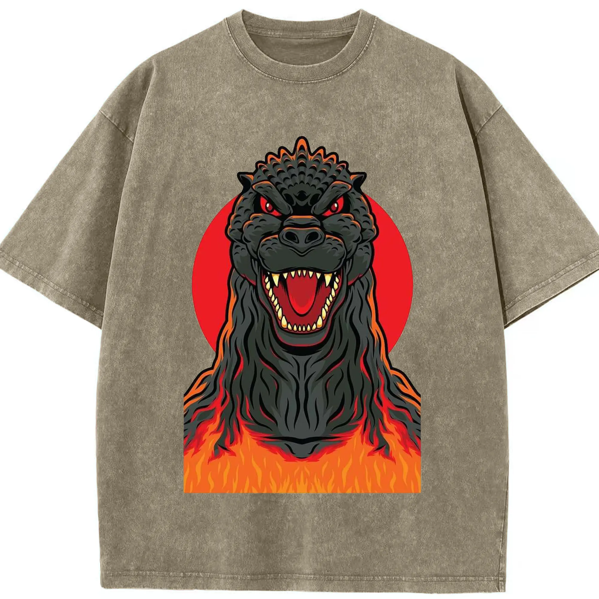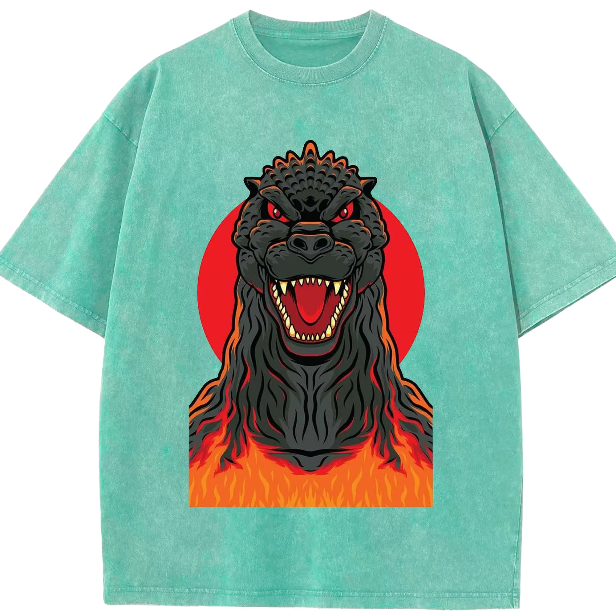 ゴジラの食事タイム - 綿100% ヴィンテージ風 半袖Tシャツ ・ フロントプリント ・ 柔らか肌触り ・ 通気性 快適 ・ スポーツ カジュアル 外出用
