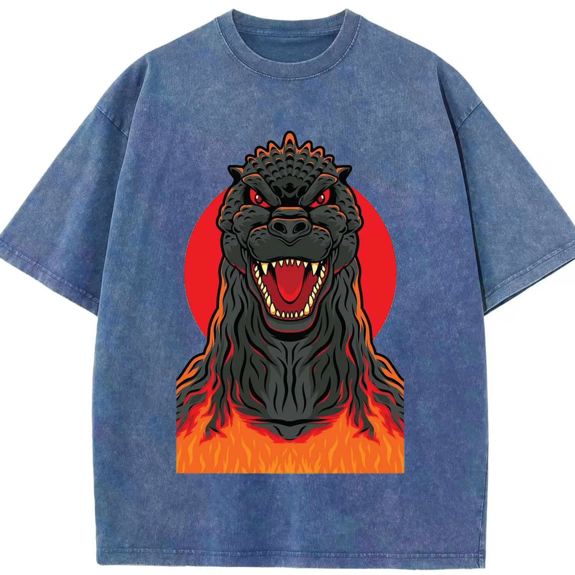 ゴジラ シンプルロゴ - 綿100% ヴィンテージ風 半袖Tシャツ ・ フロントプリント ・ 柔らか肌触り ・ 通気性 快適 ・ スポーツ カジュアル 外出用