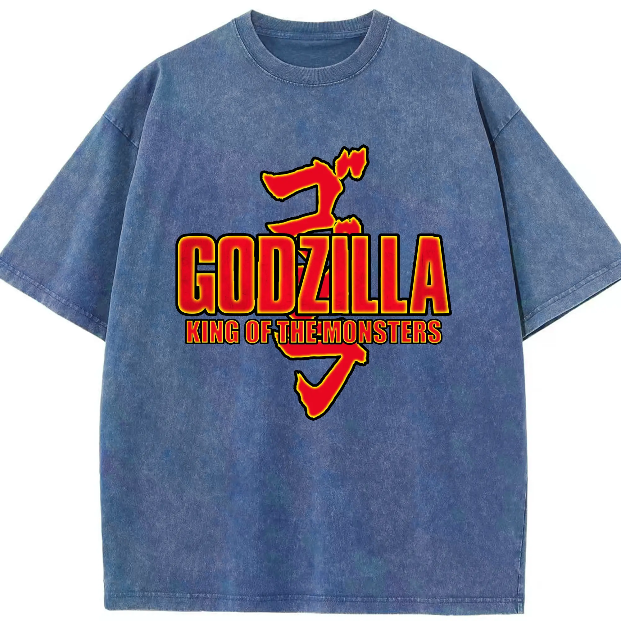 ゴジラ シンプルロゴ - 綿100% ヴィンテージ風 半袖Tシャツ ・ フロントプリント ・ 柔らか肌触り ・ 通気性 快適 ・ スポーツ カジュアル 外出用