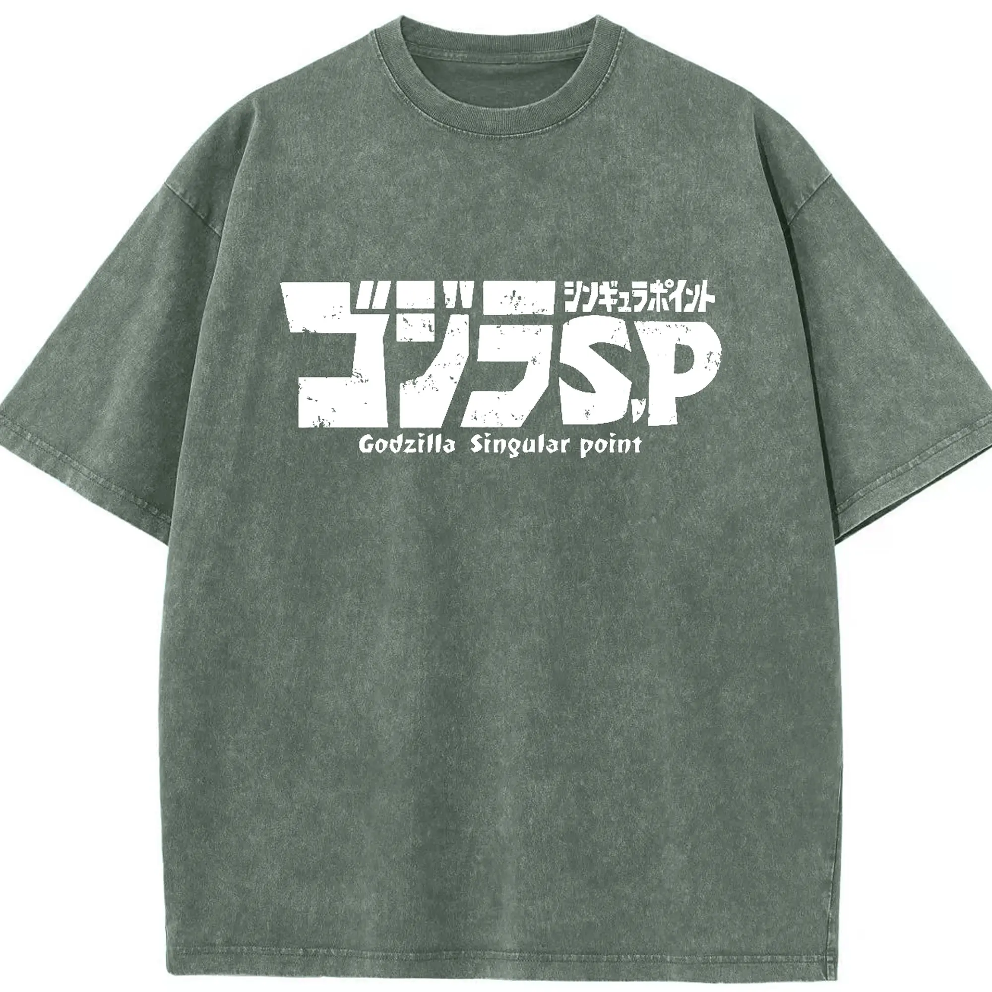 ゴジラ シンプルロゴ - 綿100% ヴィンテージ風 半袖Tシャツ ・ フロントプリント ・ 柔らか肌触り ・ 通気性 快適 ・ スポーツ カジュアル 外出用
